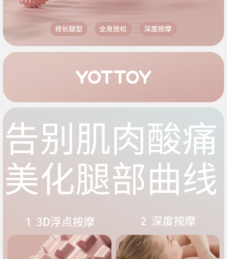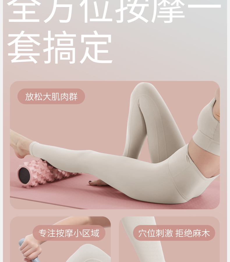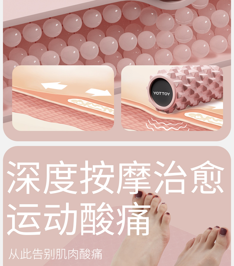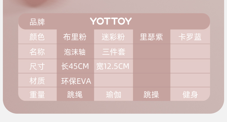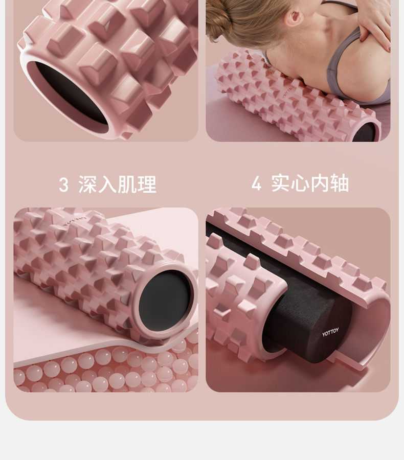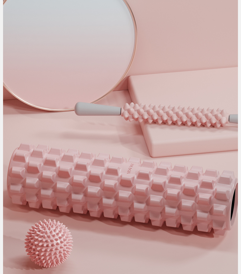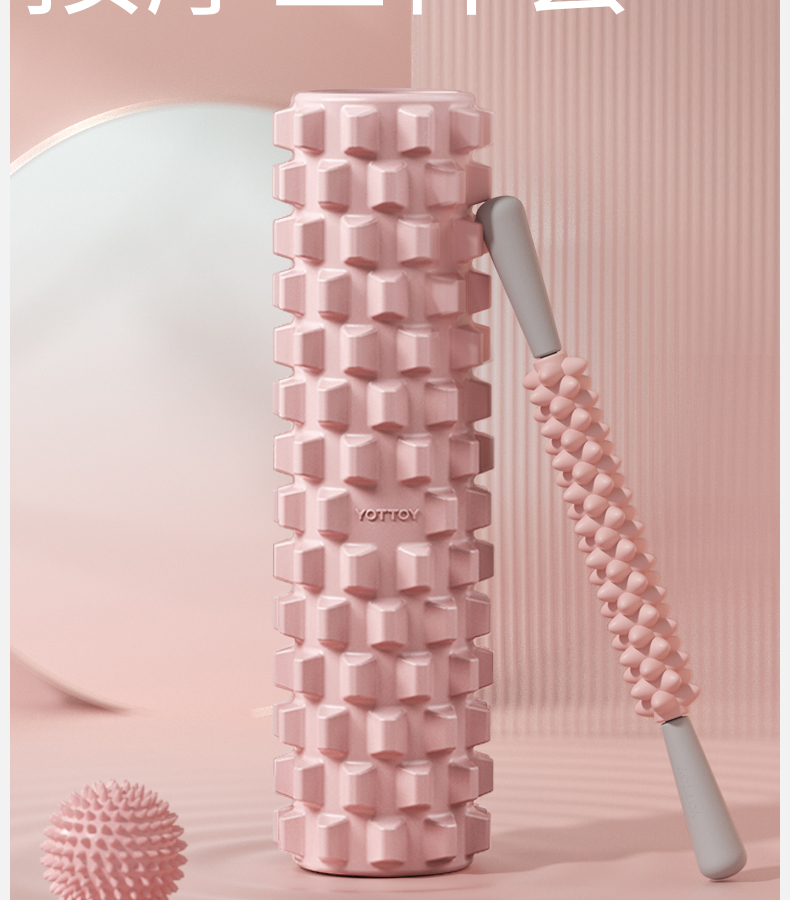 YOTTOY 狼牙棒实心健身器材泡沫轴肌肉放松按摩滚轴轮琅琊瑜伽柱三件套 紫色