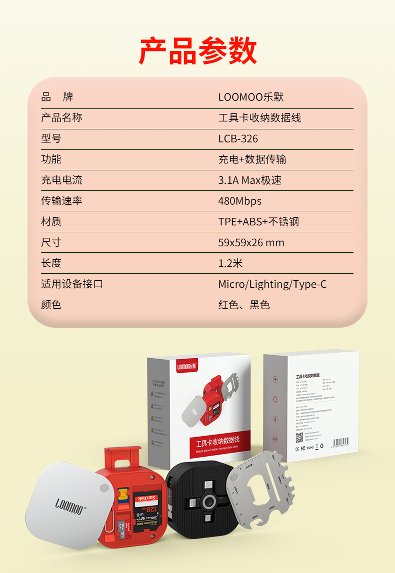 乐默LCB-326工具卡收纳数据线红色(单位:条)红色 红色