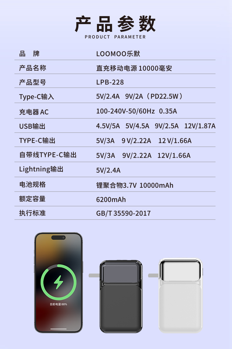 乐默LPB-228直充移动电源10000毫安白色(单位:个)白色 白色