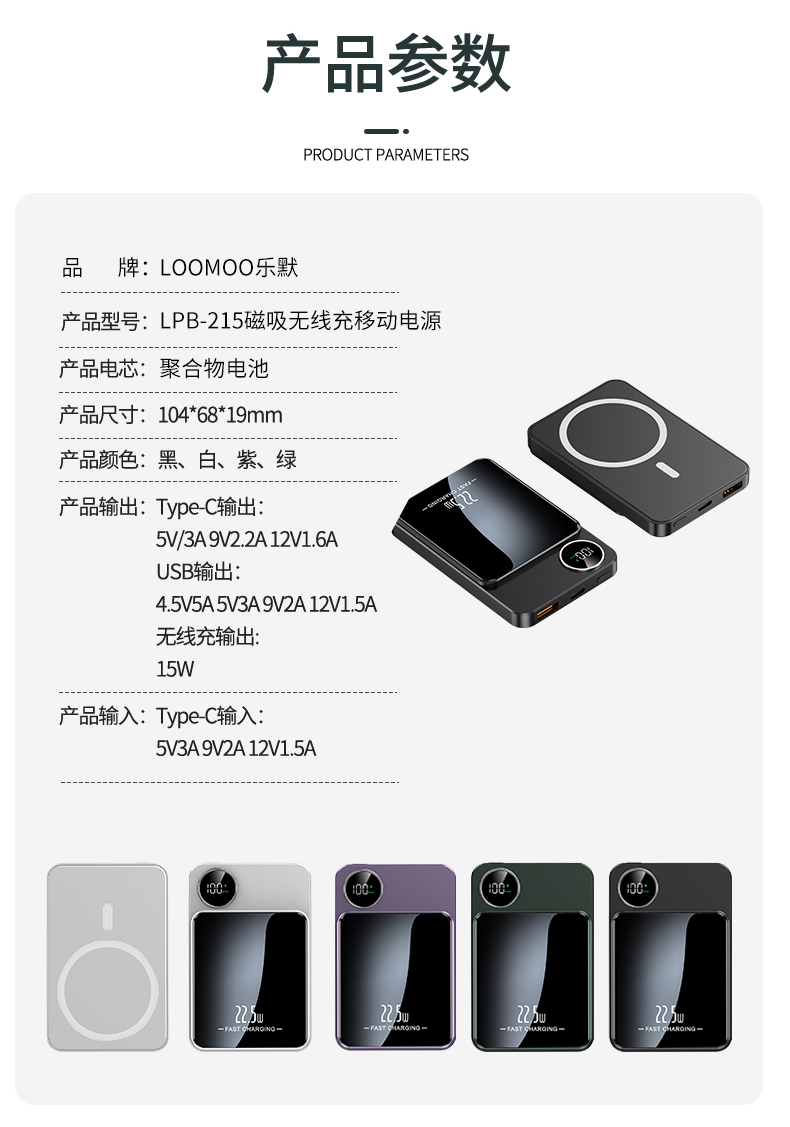 乐默LPB-215磁吸无线充移动电源黑色(单位:个)黑色 黑色