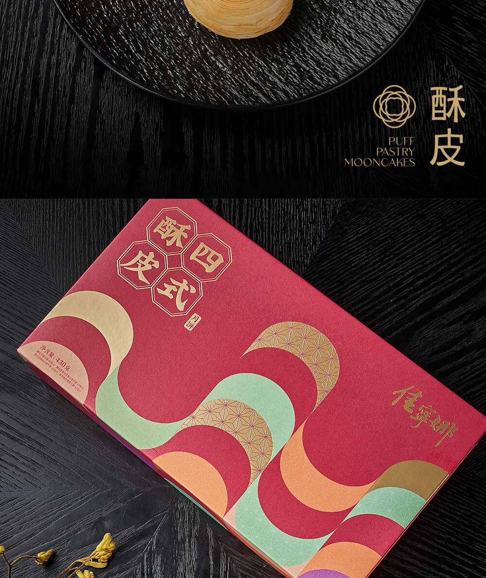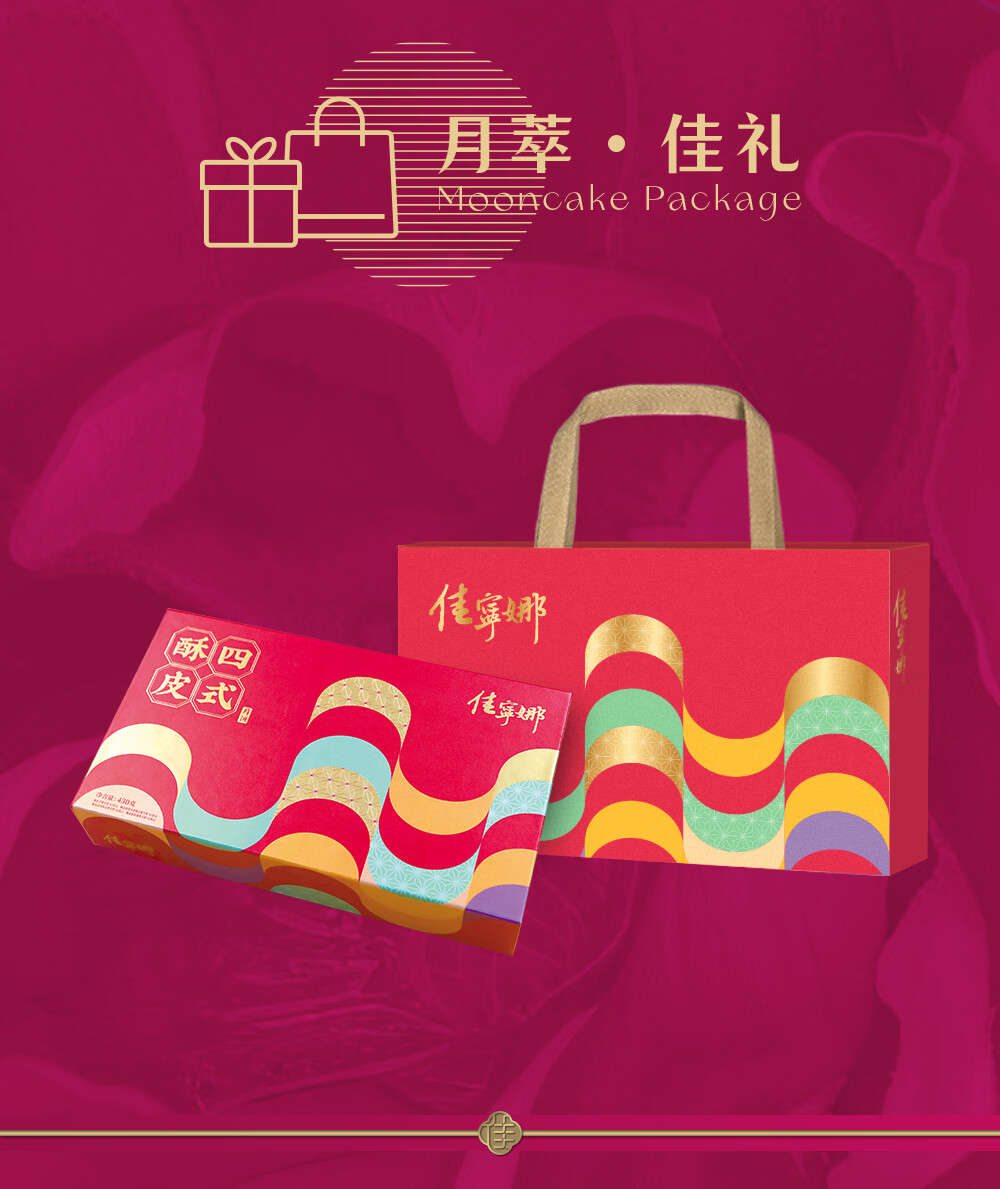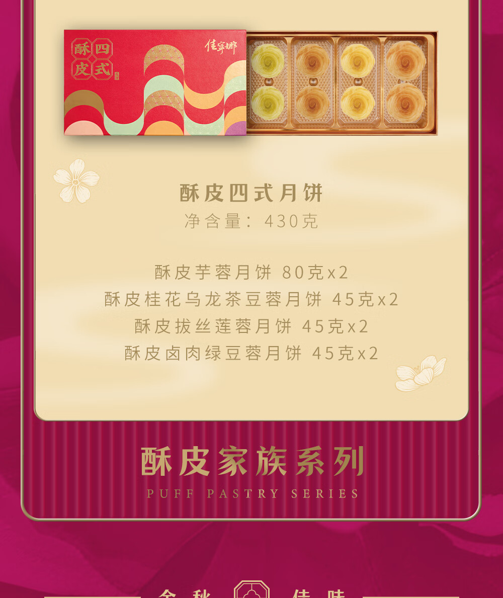 佳宁娜 酥皮四式月饼礼盒 8枚四口味 430g 丝带红色(单位:盒)