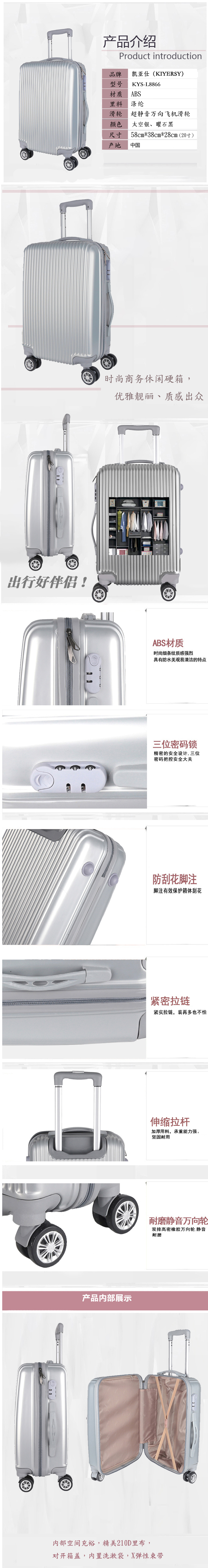 凯亚仕(KIYERSY)极简都市系列拉杆箱20寸KYS-L8866(单位:个) 银色 20寸