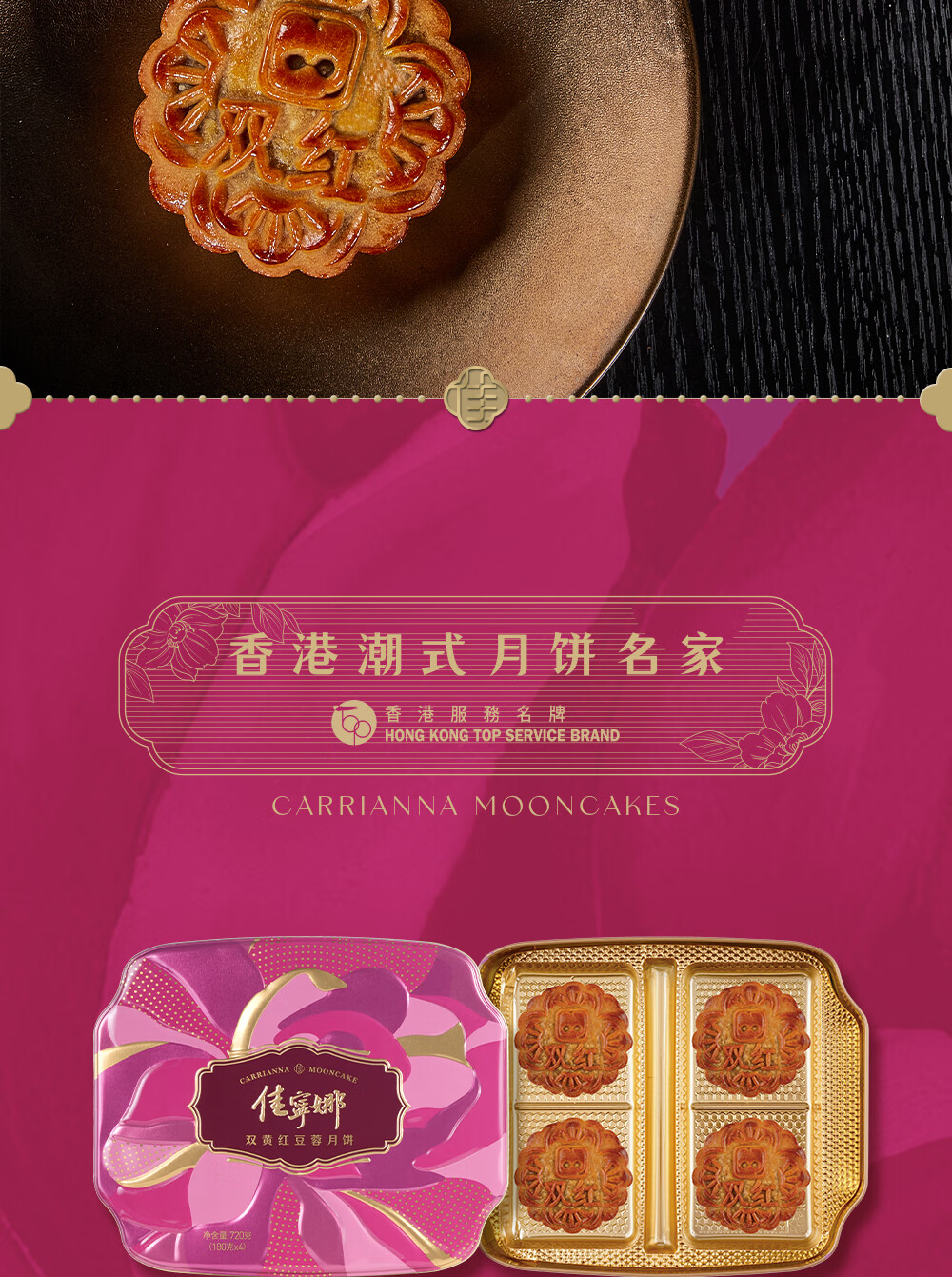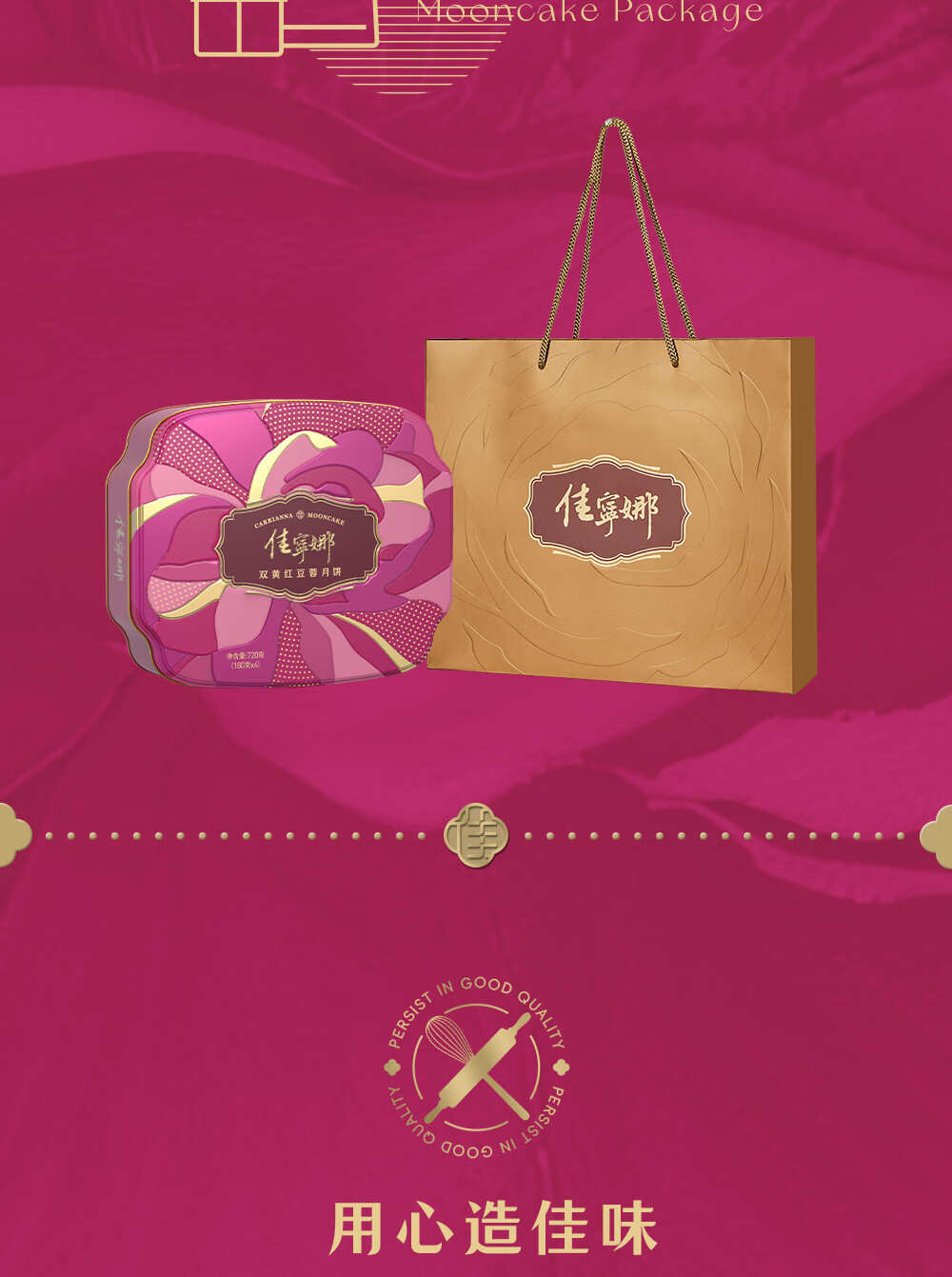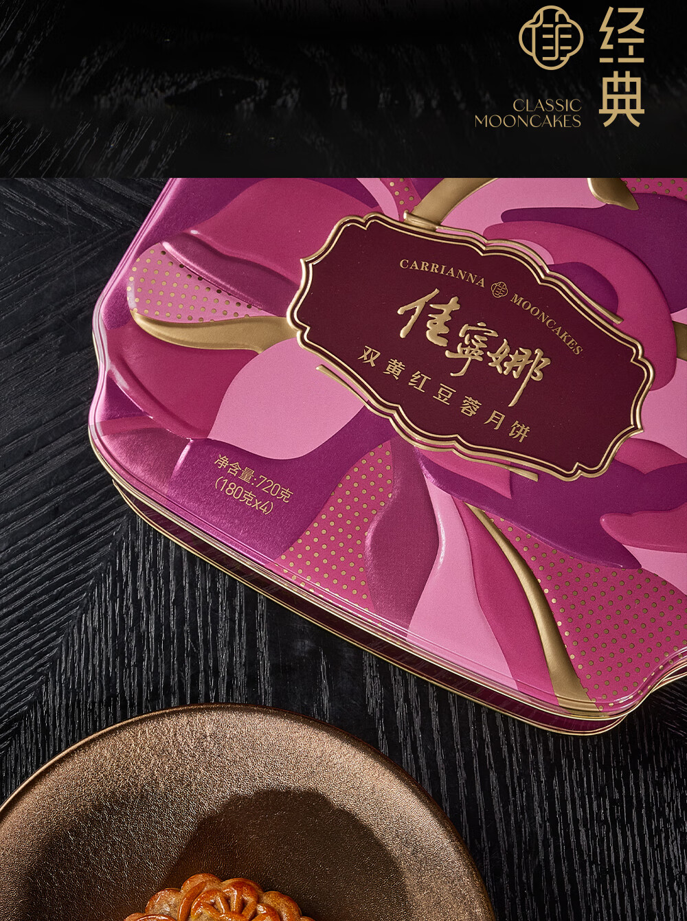 佳宁娜 双黄红豆蓉月饼礼盒 配礼袋 720g 薰衣草粉色(单位:盒)