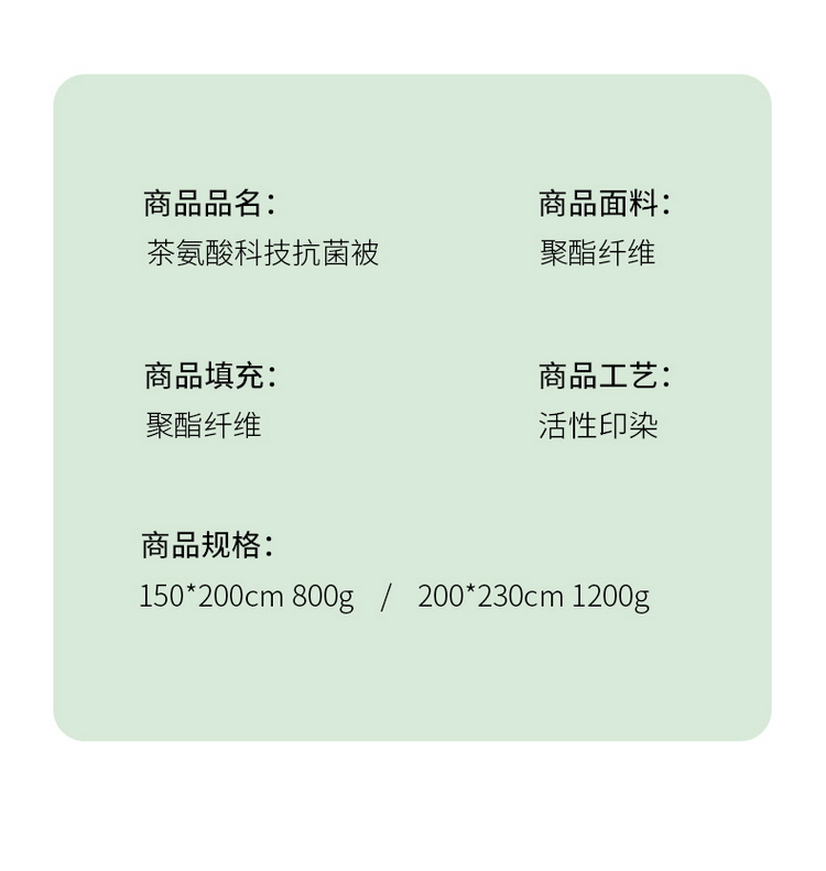 多奇曼茶氨酸科技抗菌被 花色:茶之花语PH-B2412(单位:床) 茶之花语