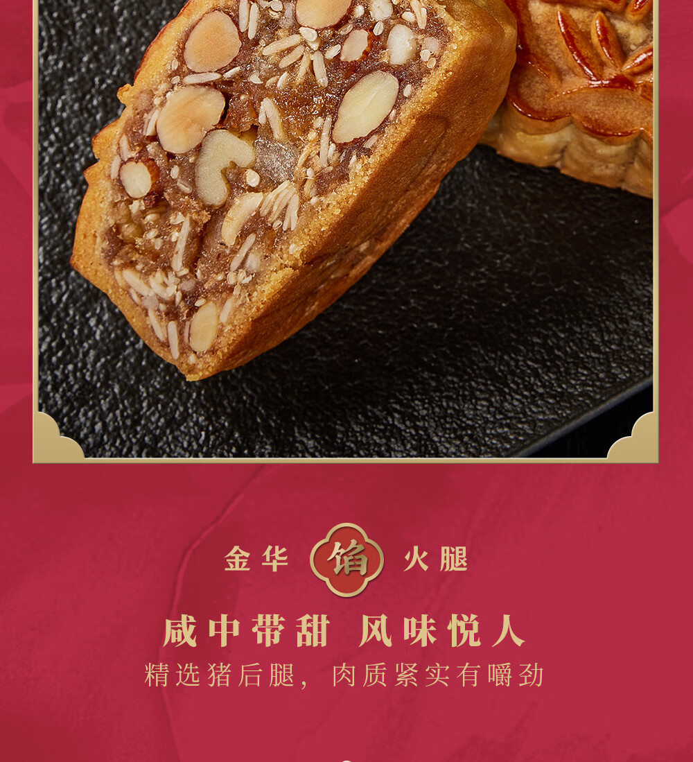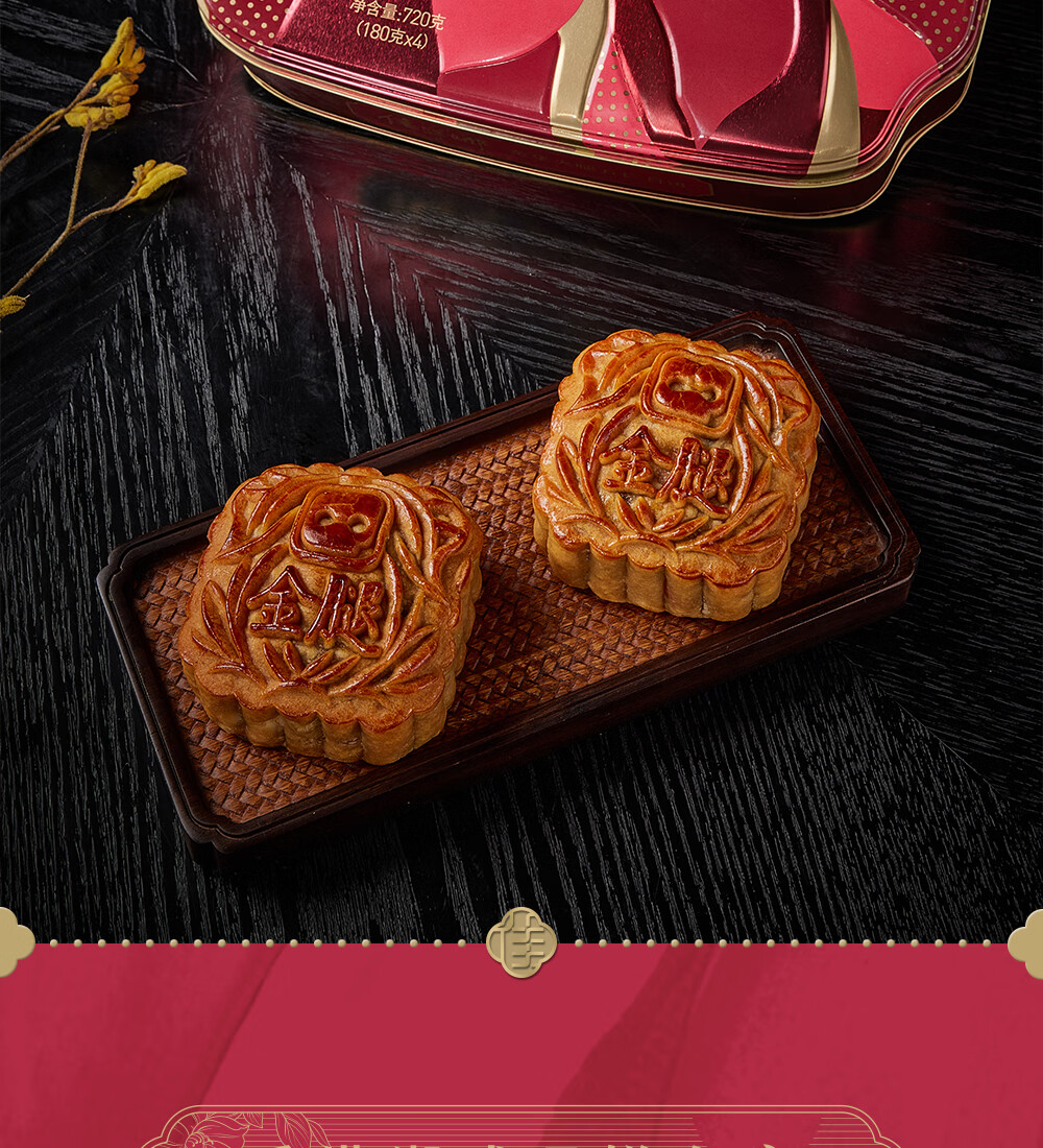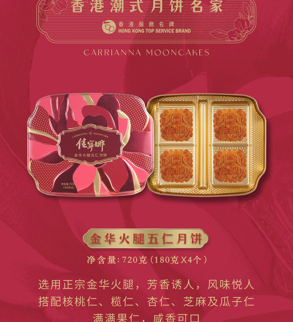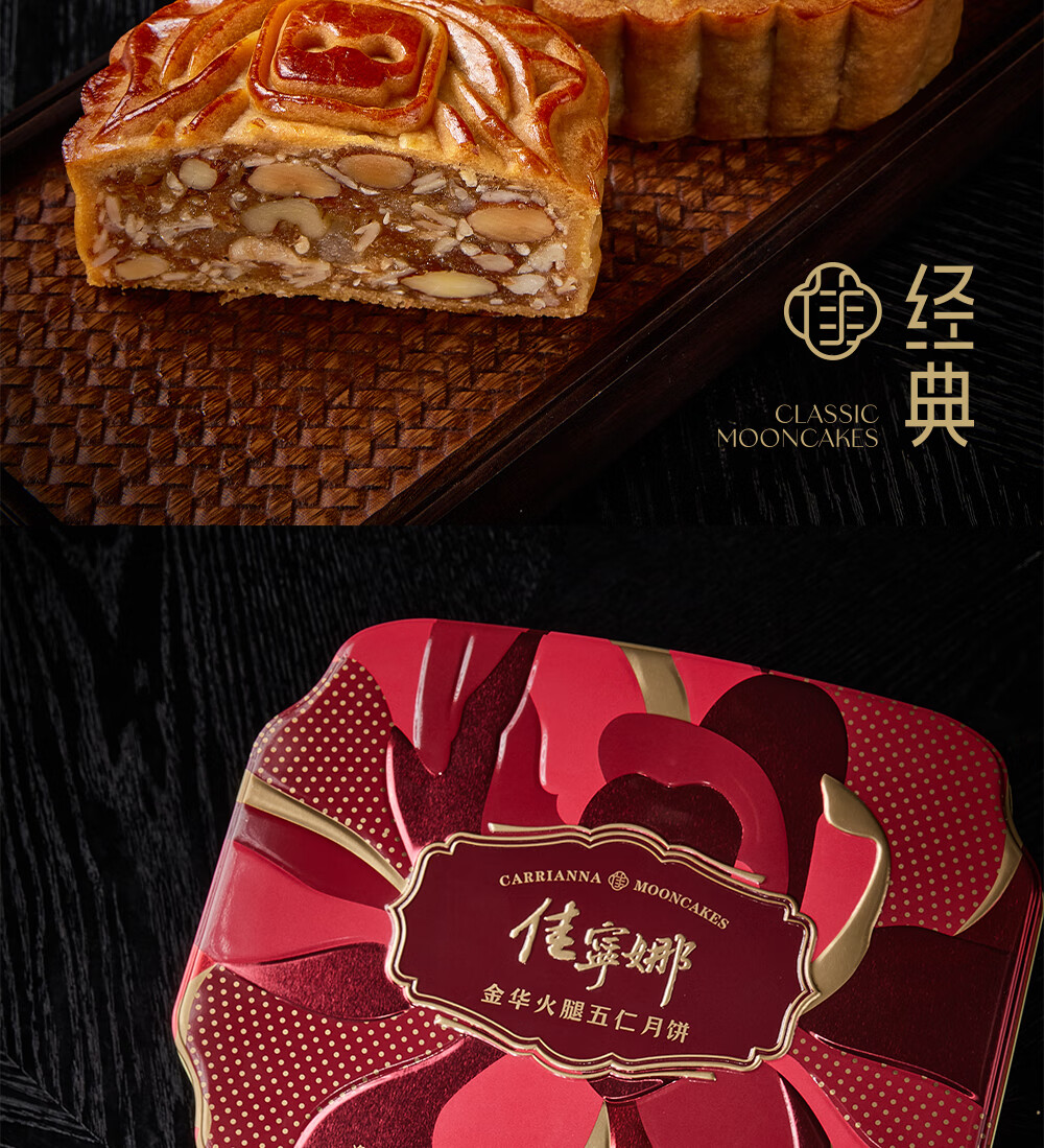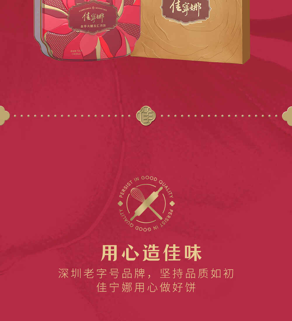 佳宁娜 金华火腿五仁月饼 礼盒装配礼袋 720g 宝石红(单位:盒)