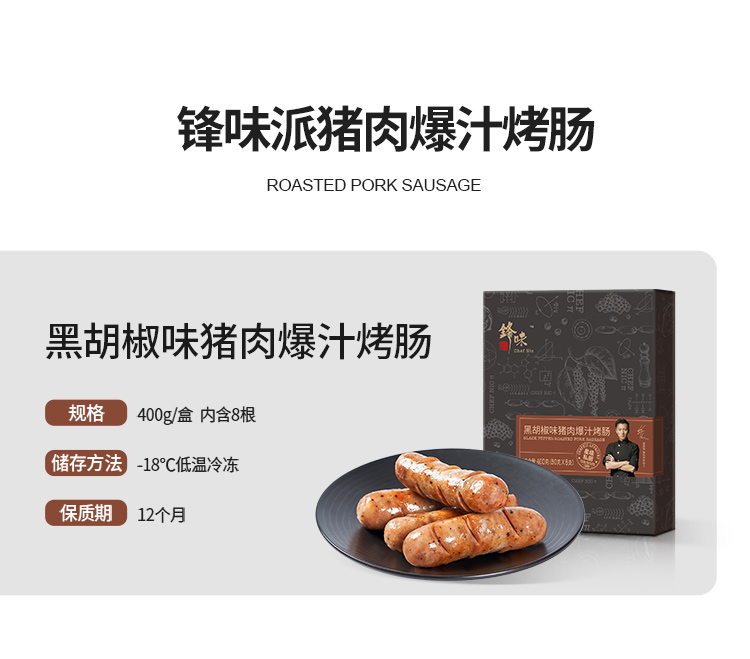 锋味派 爆汁烤肠 400g*3盒 黑胡椒味 拿铁色(单位:盒)