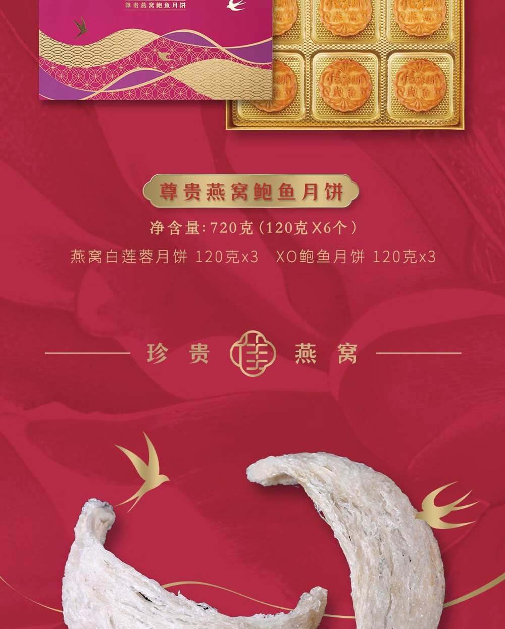 佳宁娜 燕窝鲍鱼月饼 尊贵高端礼盒 720g 桑葚红(单位:盒)