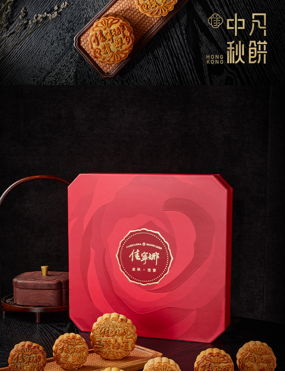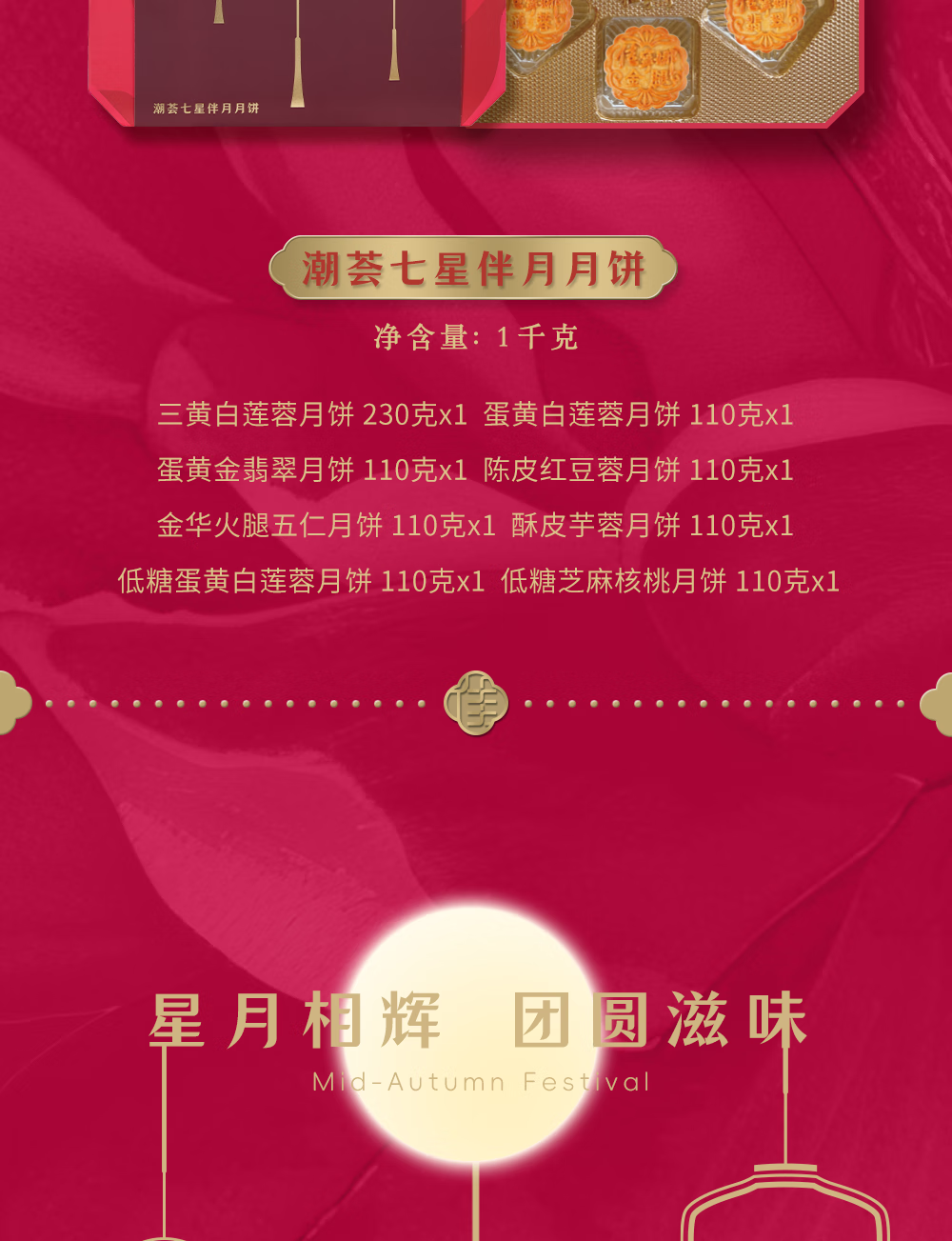 佳宁娜 中秋月饼礼盒 潮荟七星伴月月饼 1000g 珊瑚红(单位:盒)