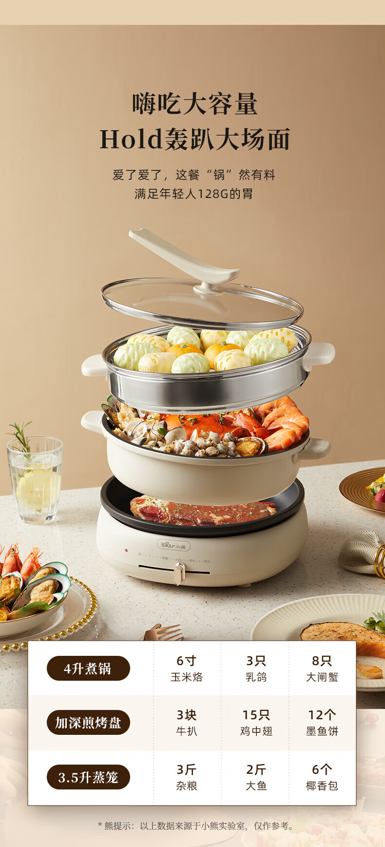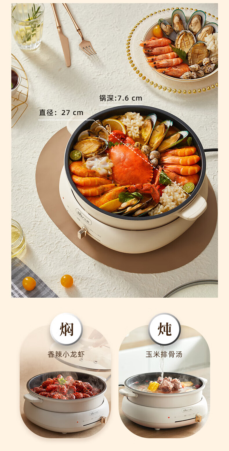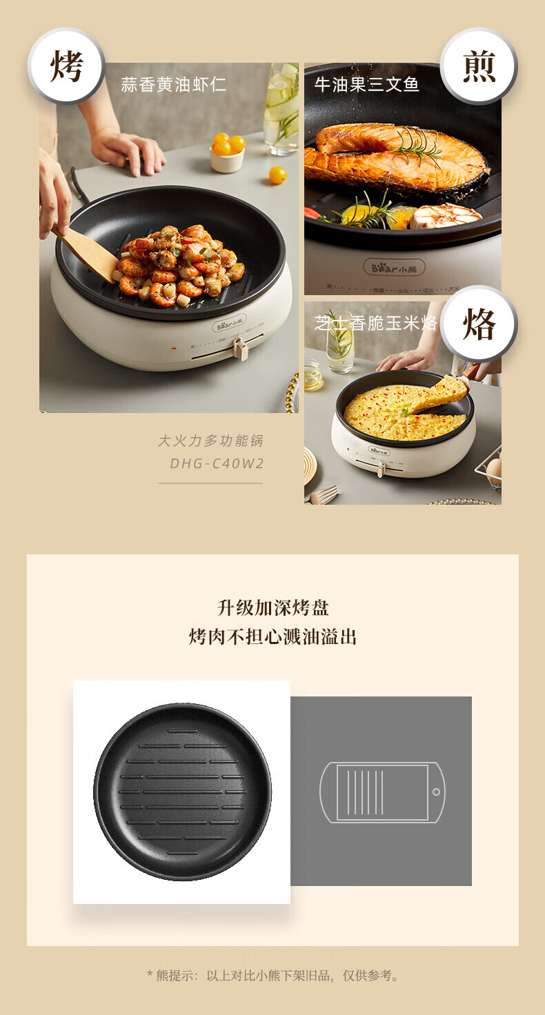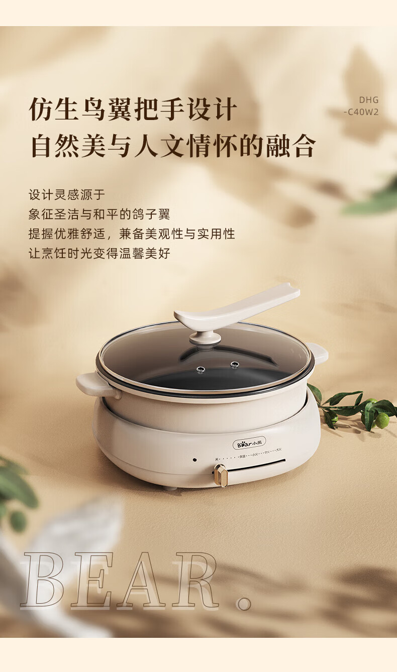 小熊(Bear) 电火锅4L 电蒸锅多功能锅DHG-C40W2/台 奶茶色