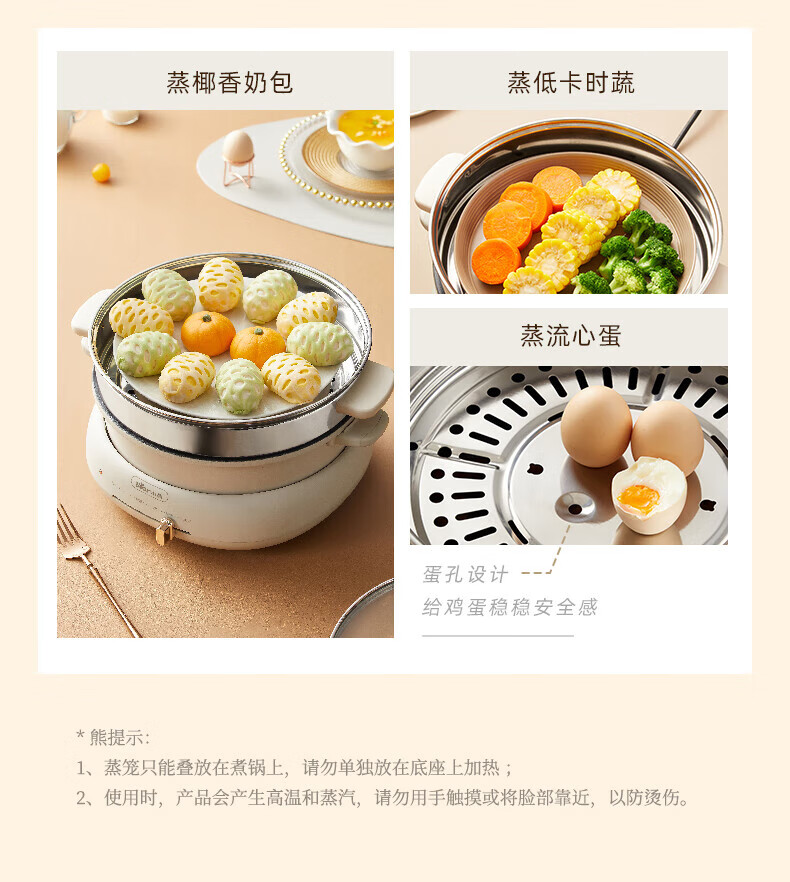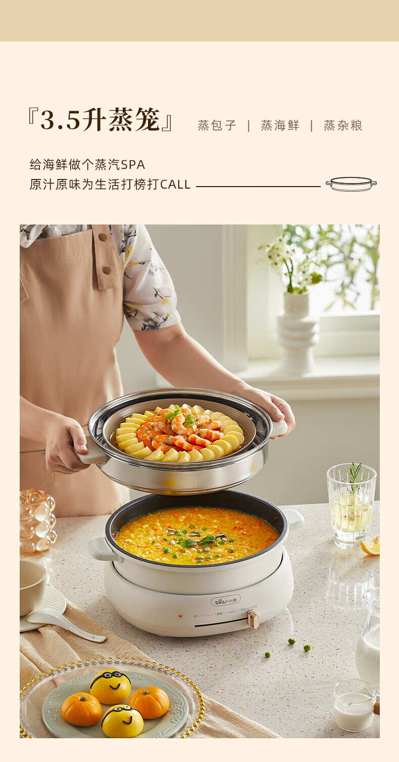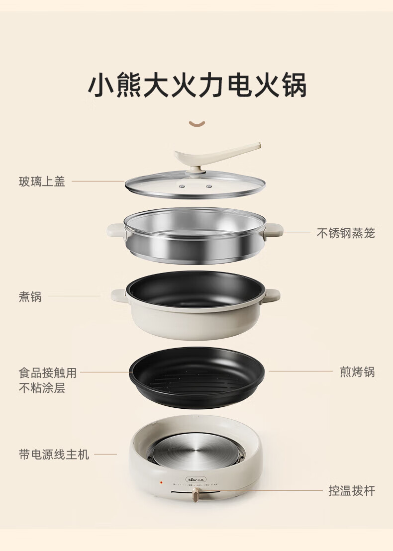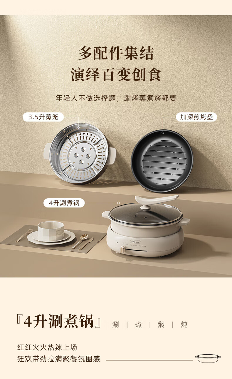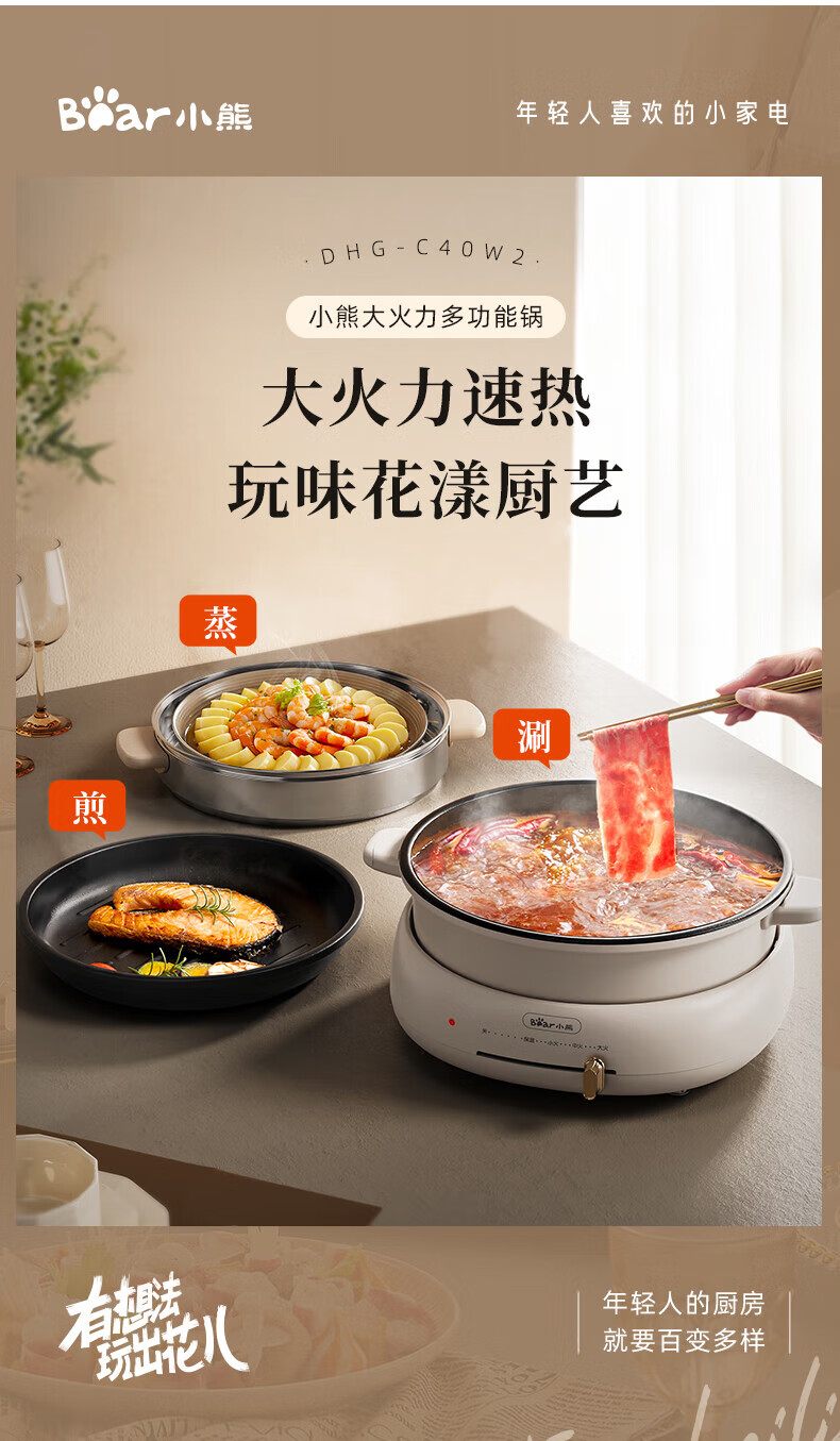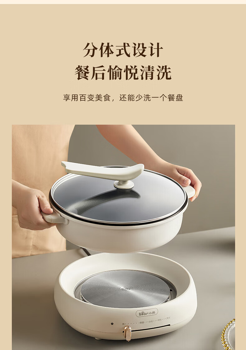 小熊(Bear) 电火锅4L 电蒸锅多功能锅DHG-C40W2/台 奶茶色