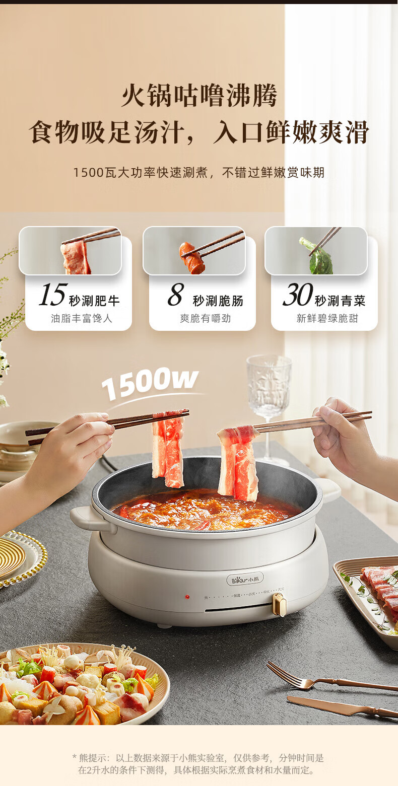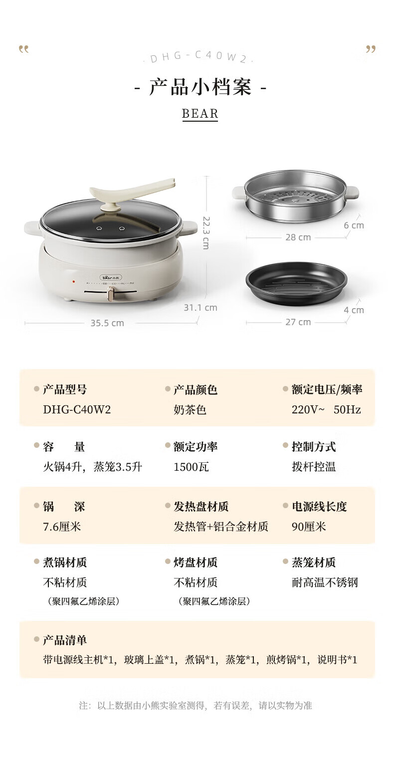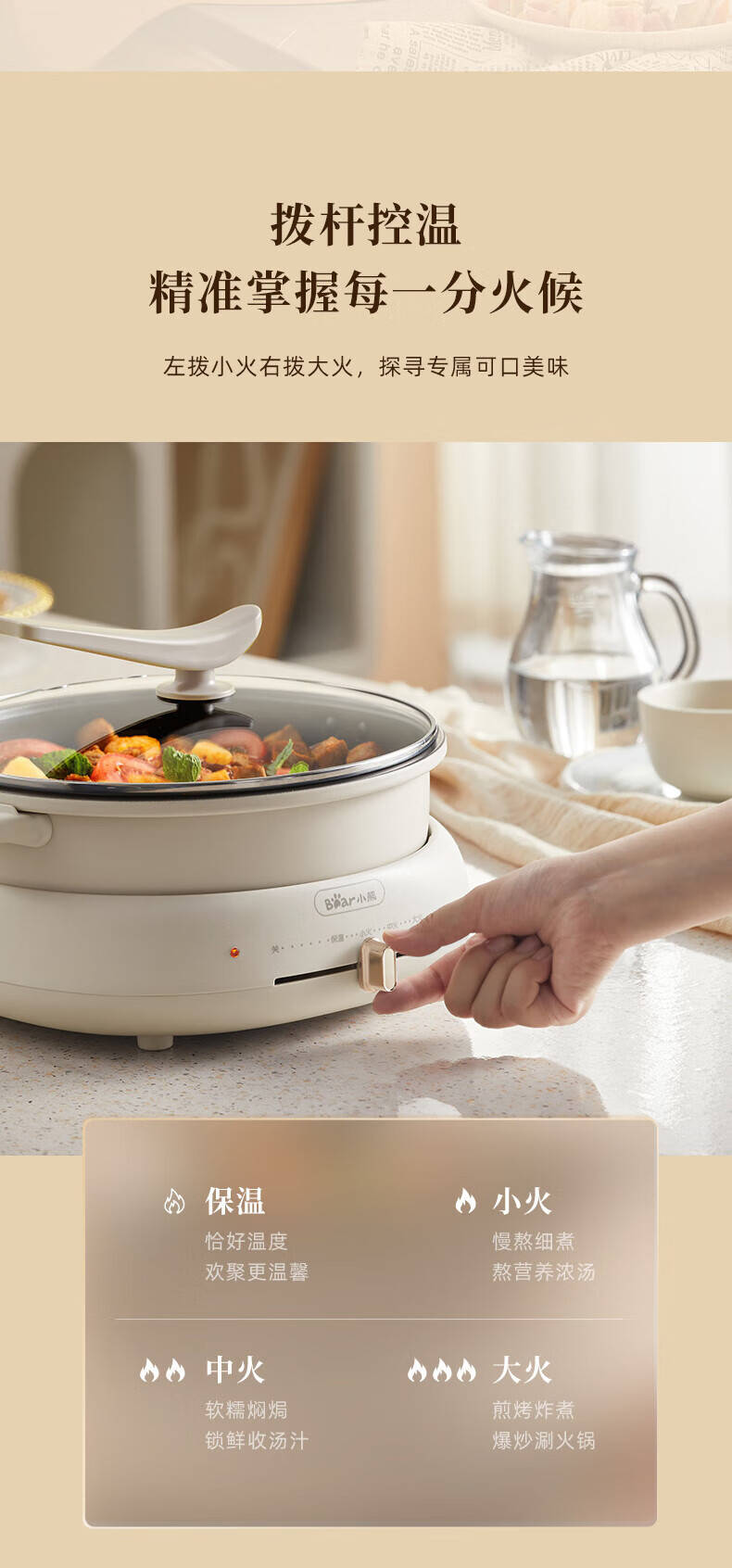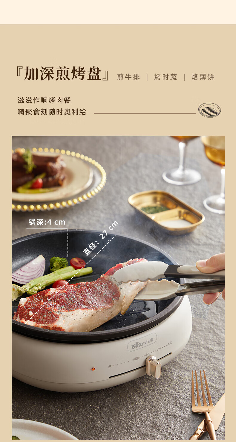 小熊(Bear) 电火锅4L 电蒸锅多功能锅DHG-C40W2/台 奶茶色