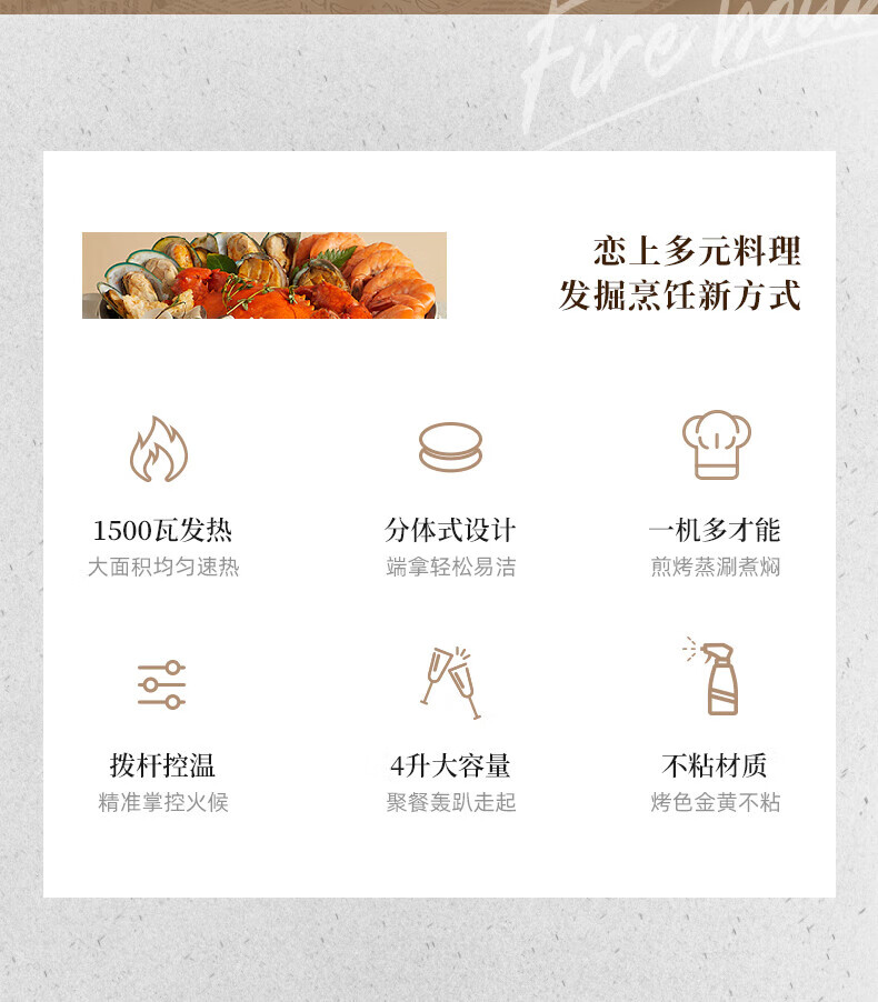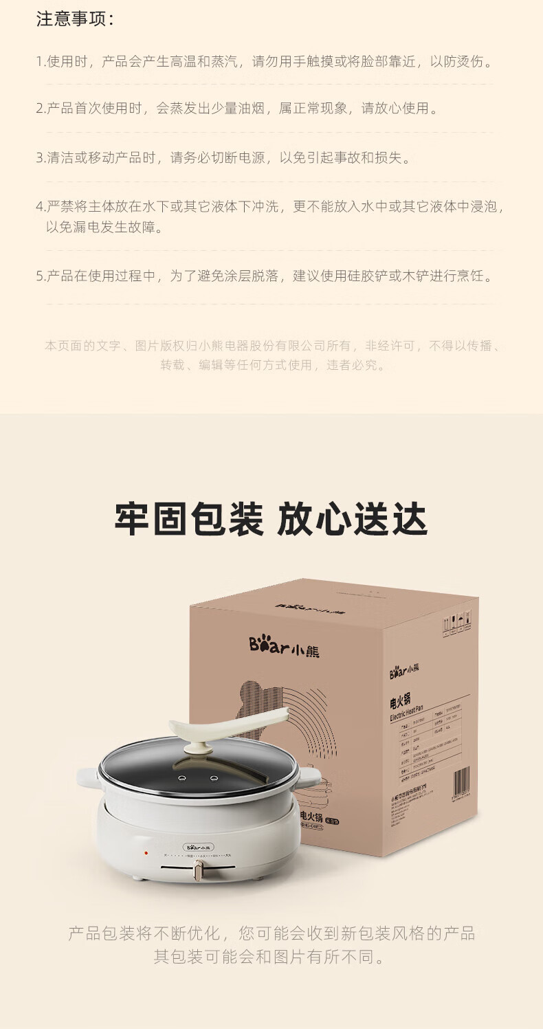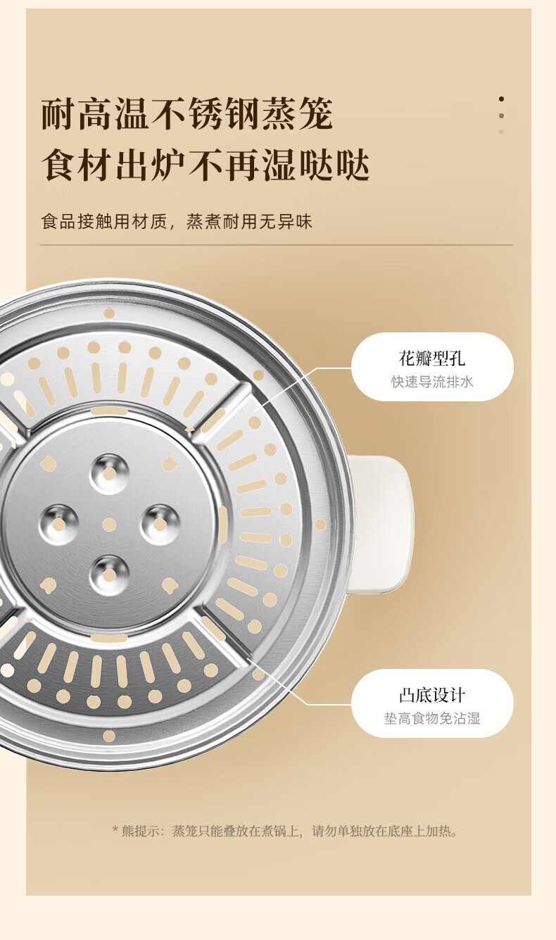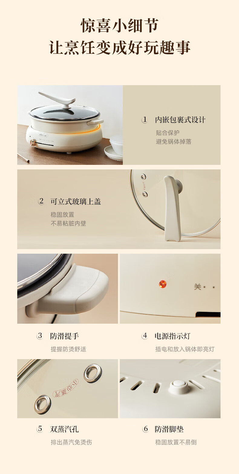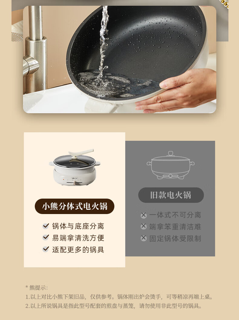 小熊(Bear) 电火锅4L 电蒸锅多功能锅DHG-C40W2/台 奶茶色