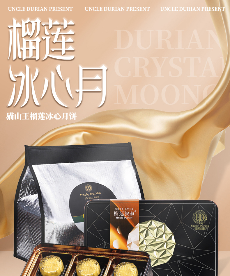 佳宁娜 榴莲冰皮月饼 礼盒装冷链配送 480g 深邃黑色(单位:盒)