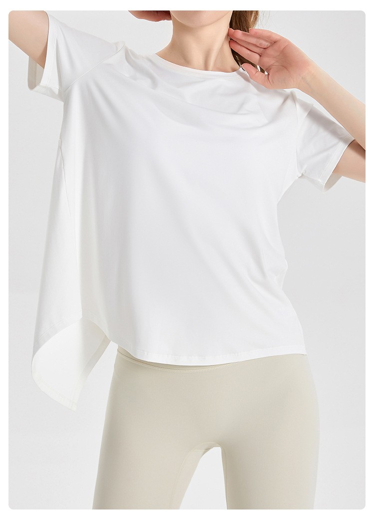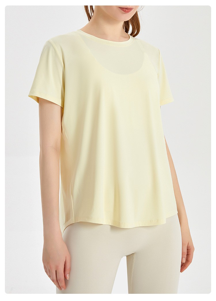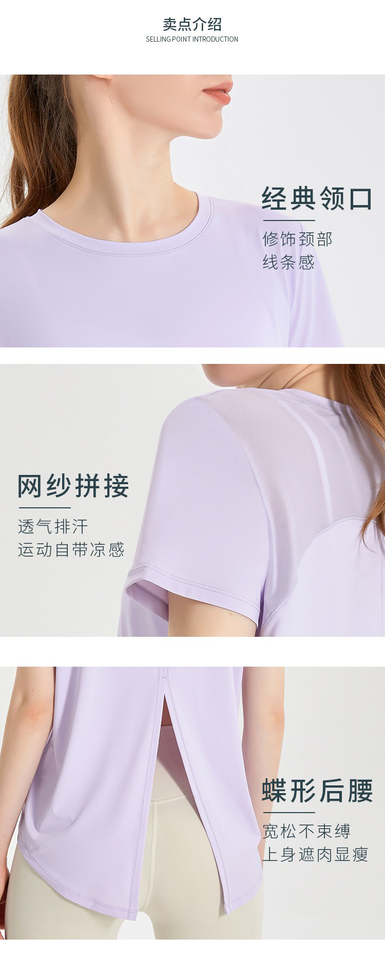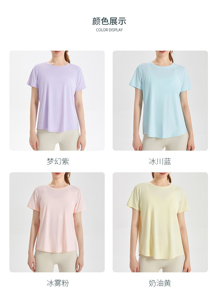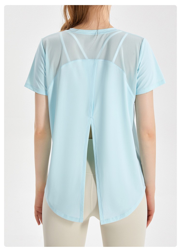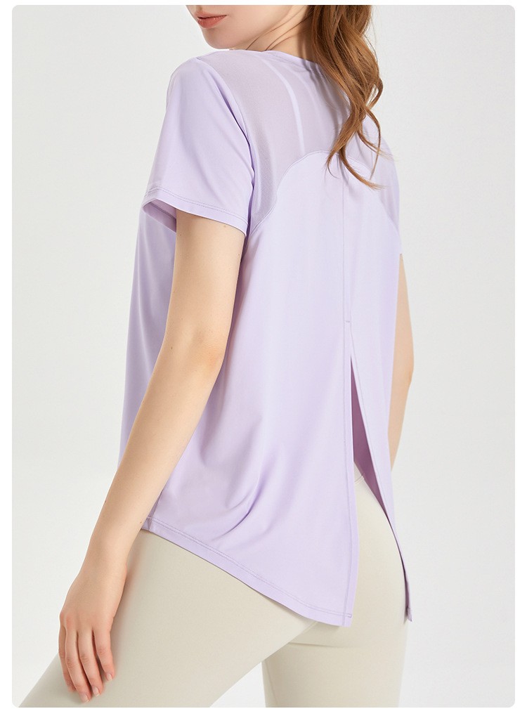 唯卡洛 运动速干衣短袖女T恤健身宽松透气网纱拼接凉感后开叉瑜伽服上衣24064 单位:件 时尚黑 XL