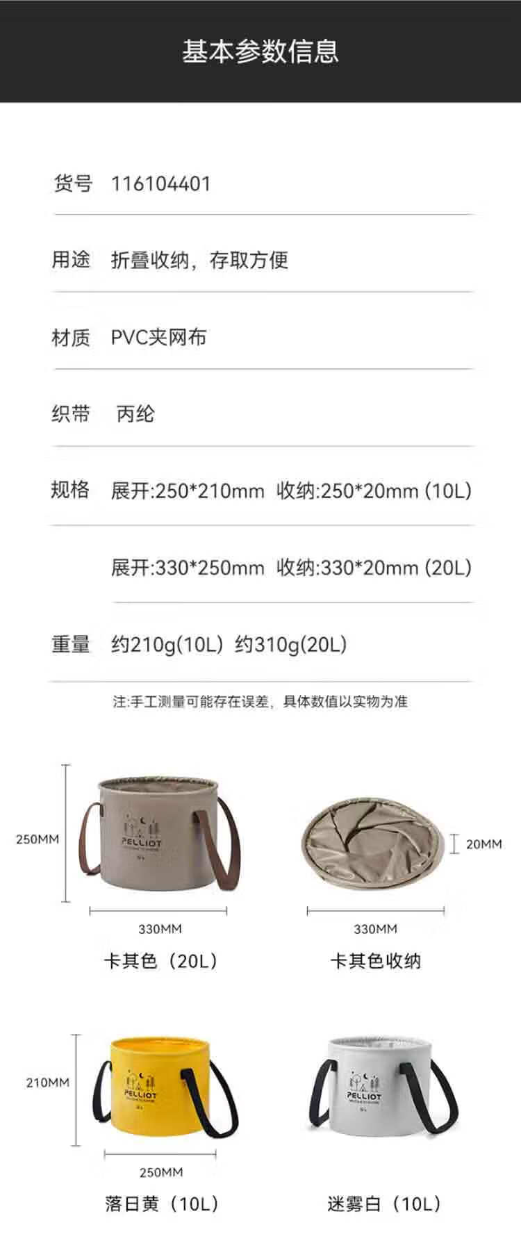 伯希和 折叠水桶 16104401 10L (单位:个) 卡其色