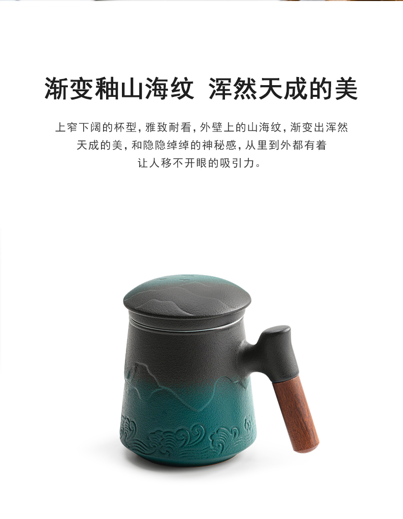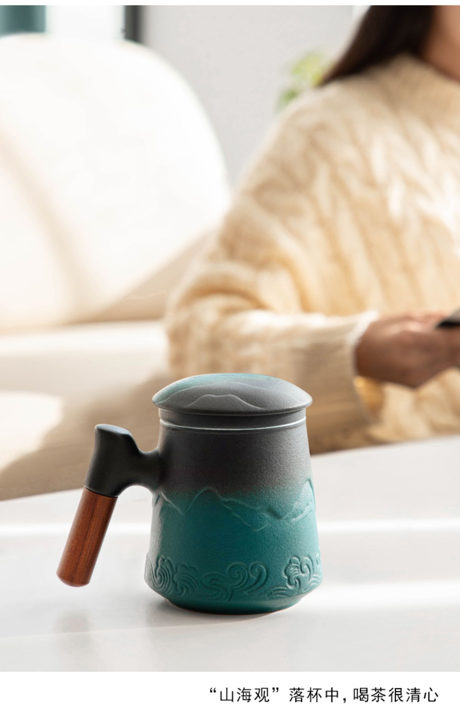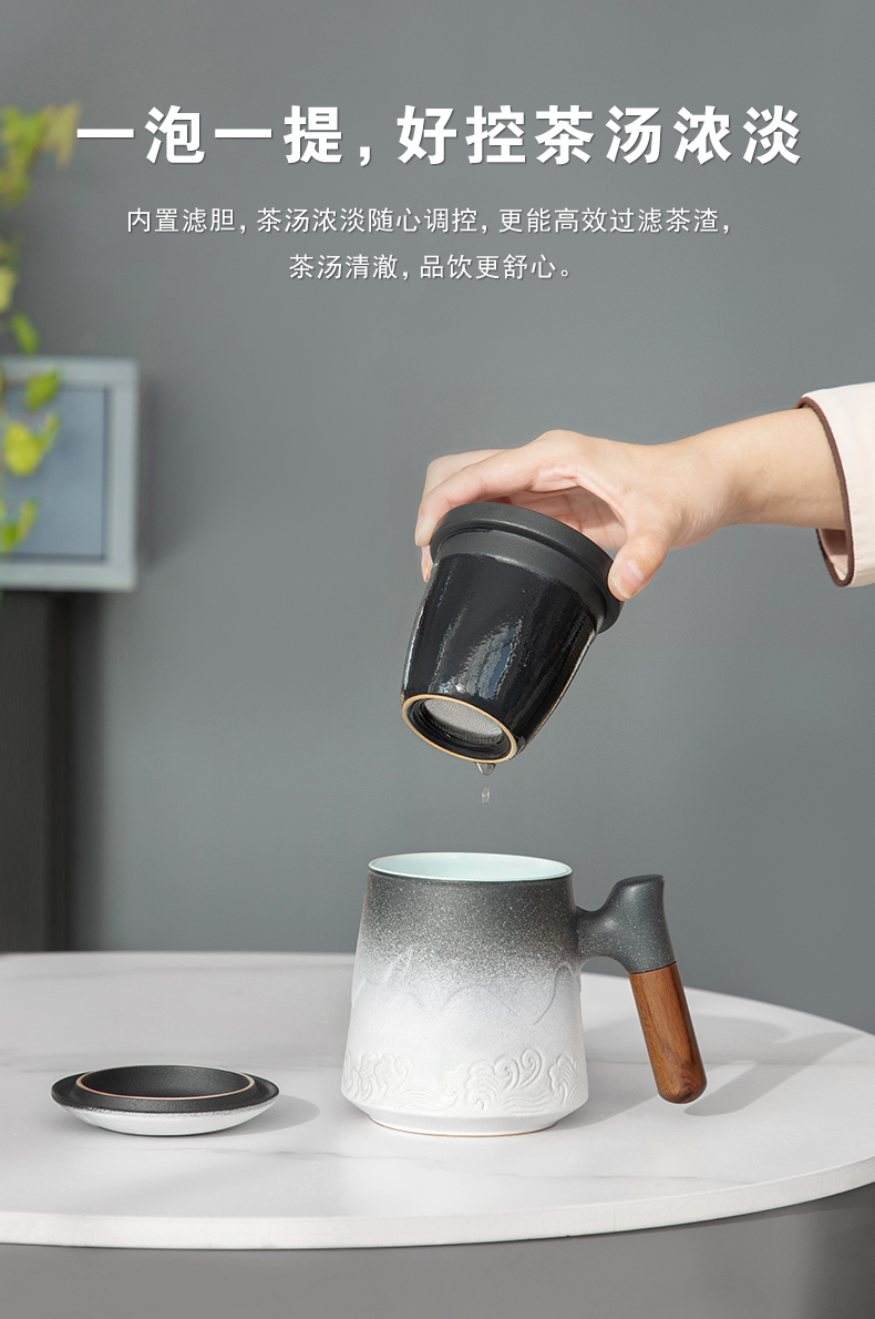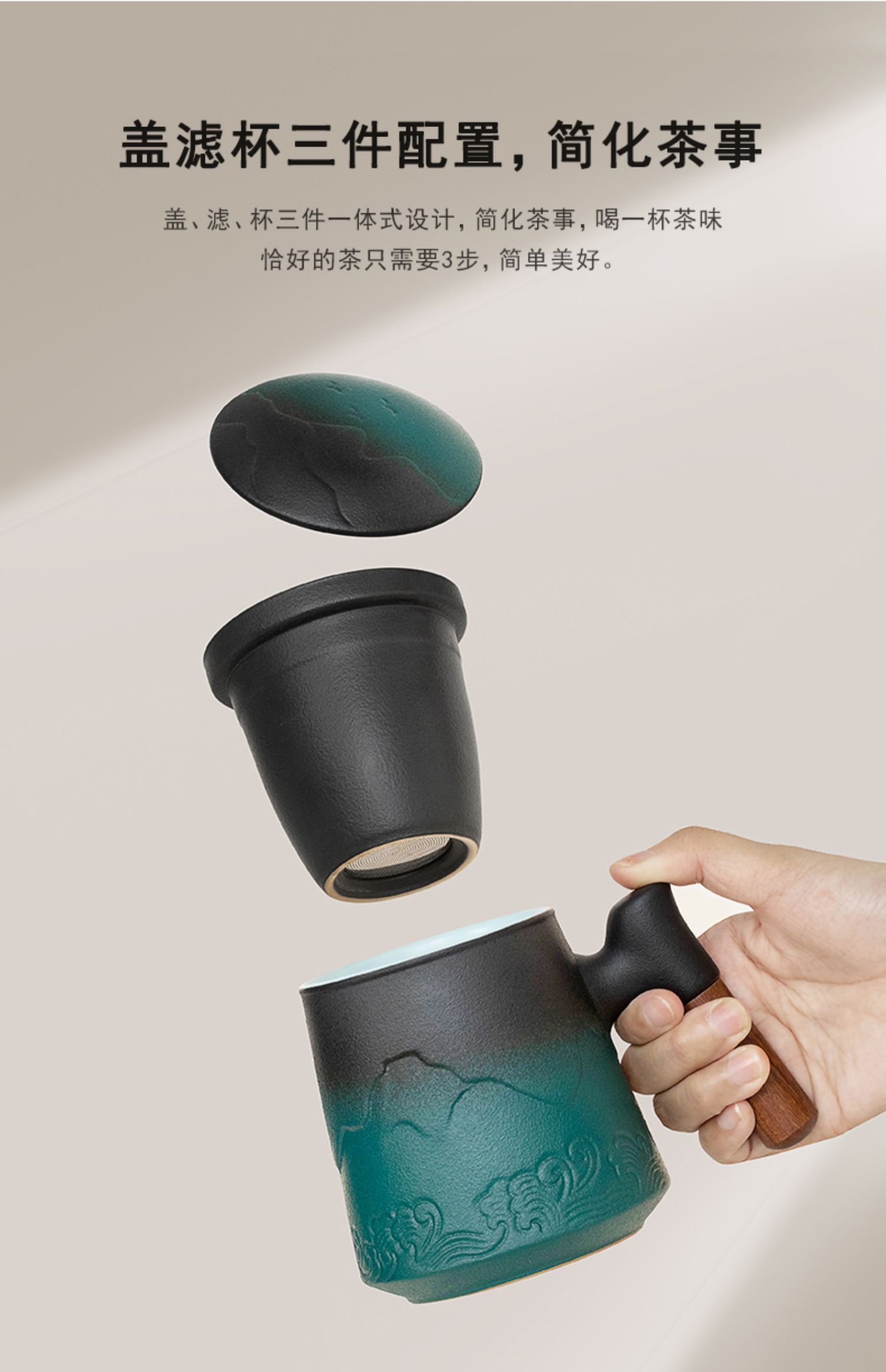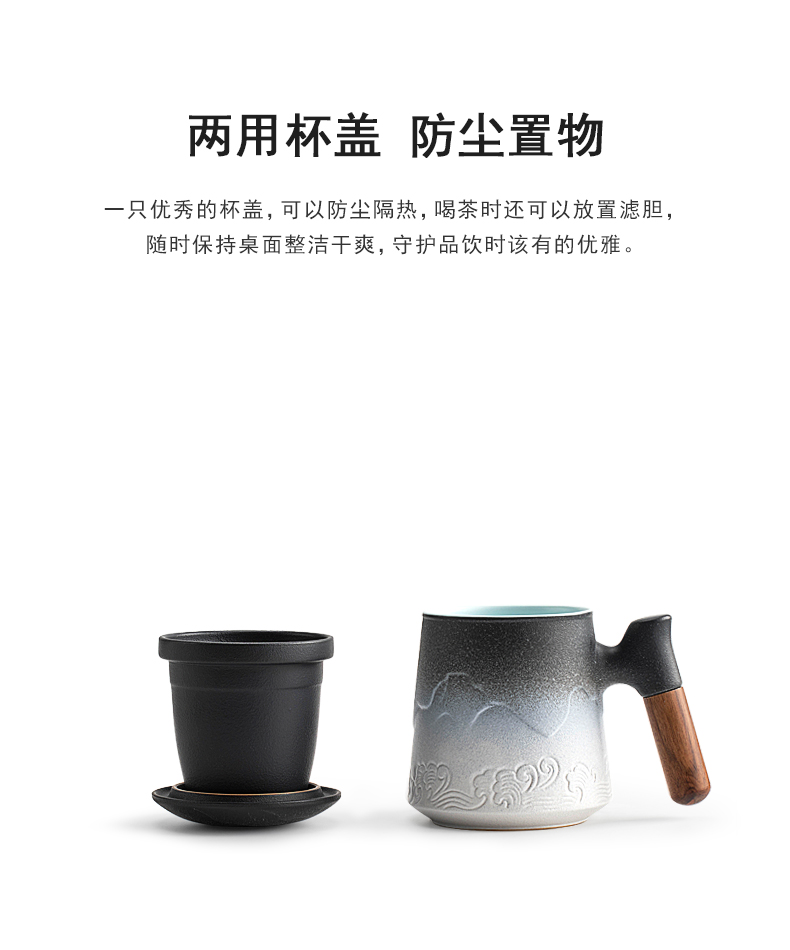 叁旬山海观泡茶马克杯茶杯家用陶瓷杯带盖办公室过滤水杯茶水分离杯子山海观泡茶杯【白砂釉】(单位:个) 黑色