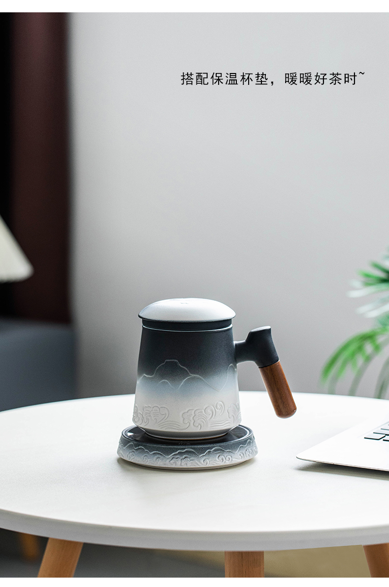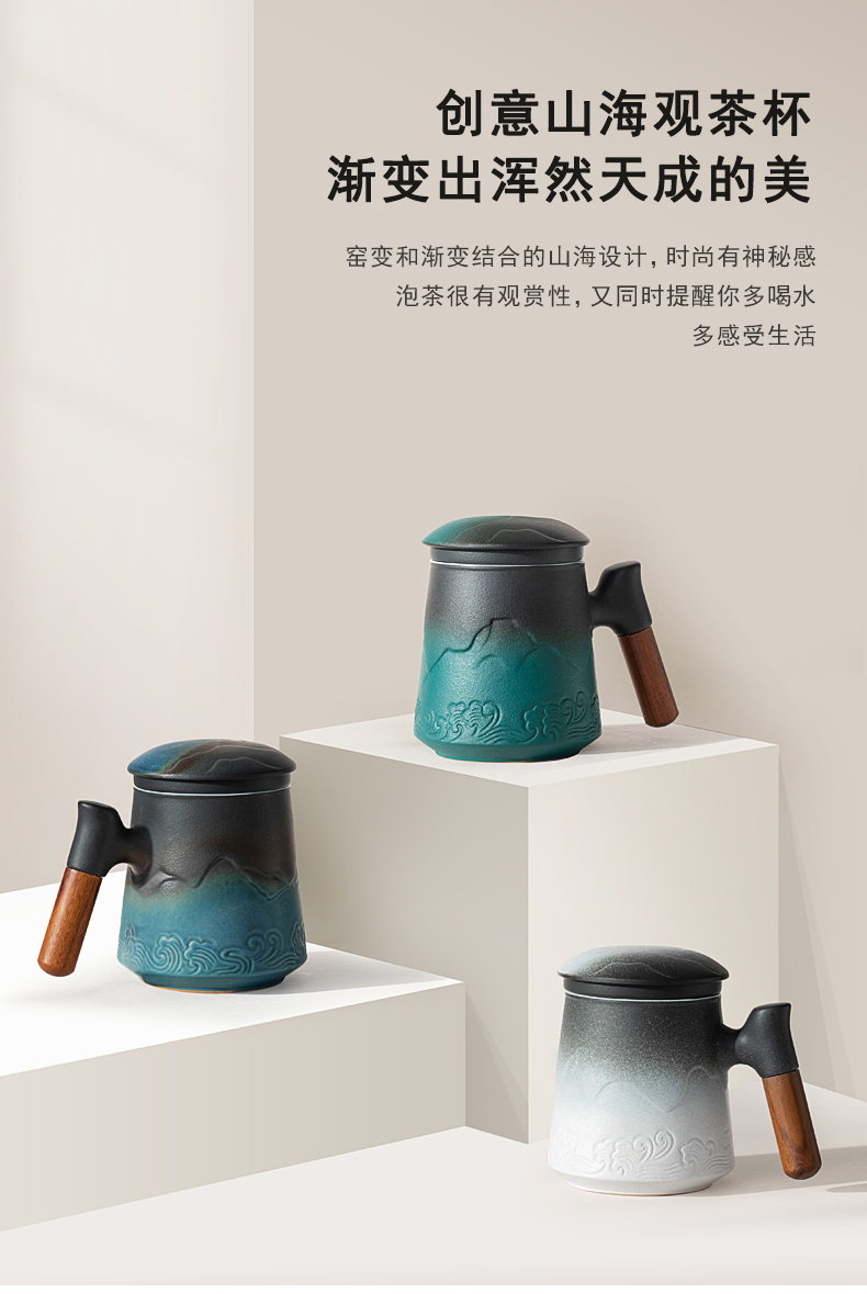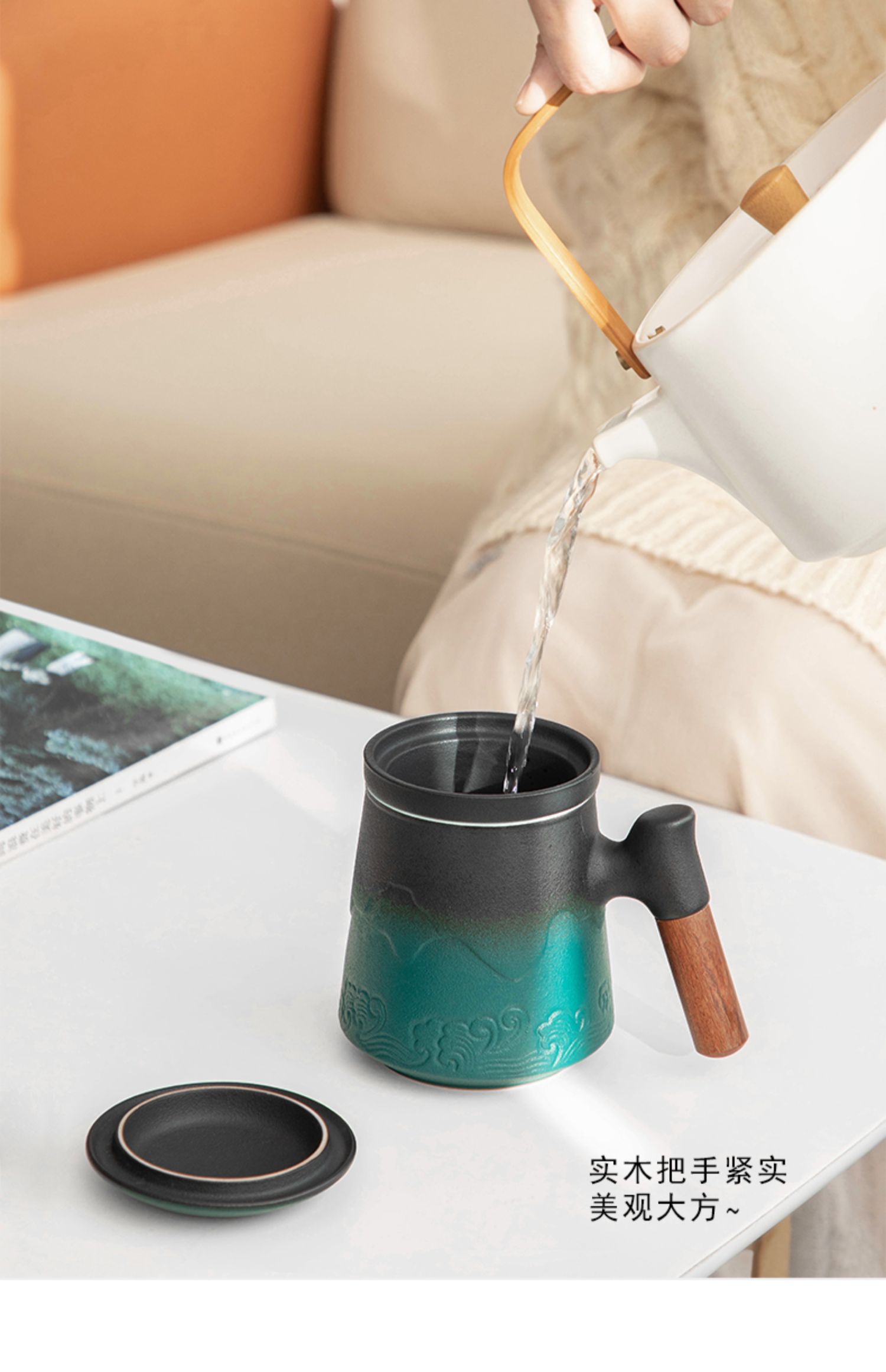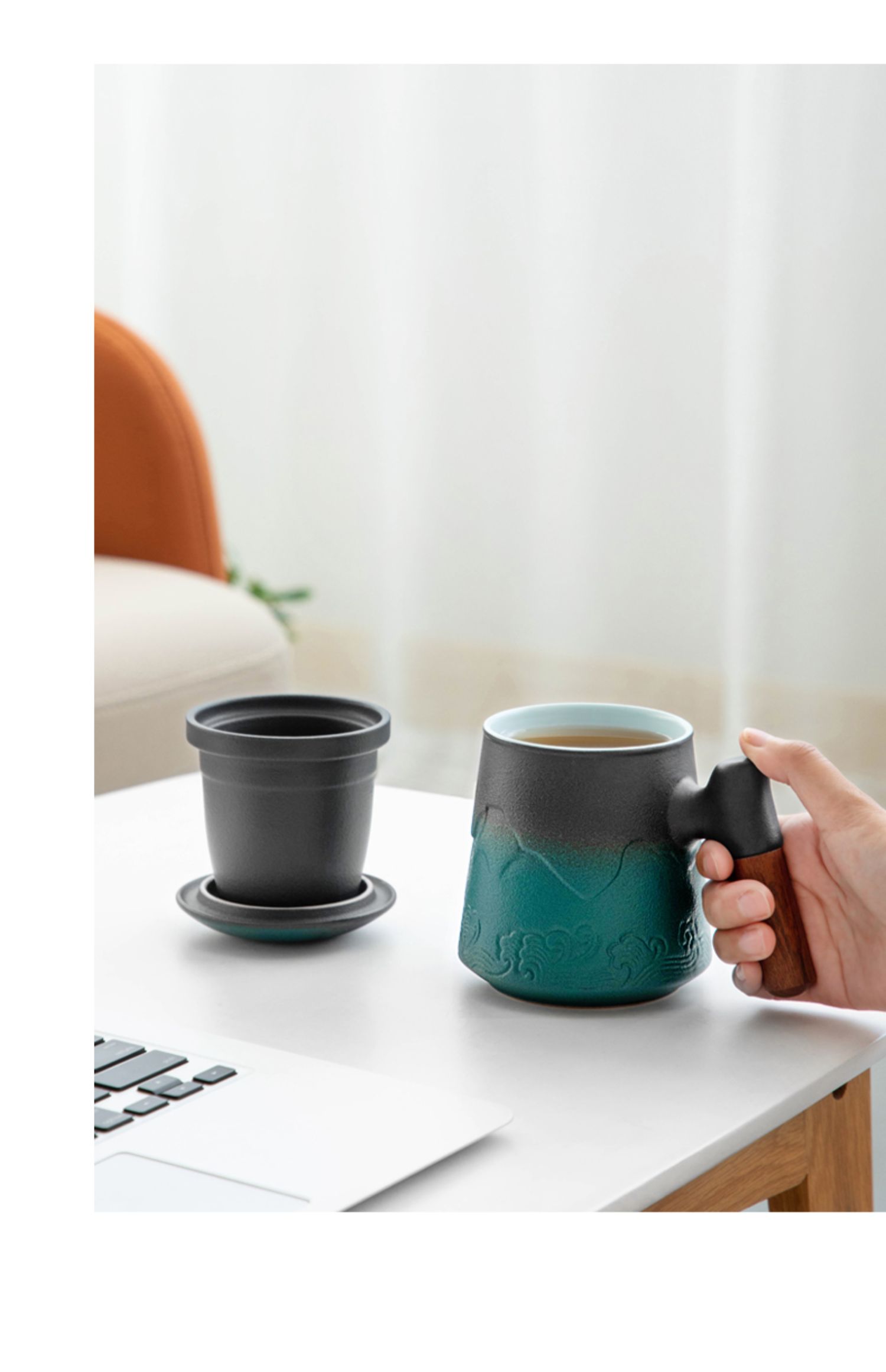 叁旬山海观泡茶马克杯茶杯家用陶瓷杯带盖办公室过滤水杯茶水分离杯子山海观泡茶杯【白砂釉】(单位:个) 黑色