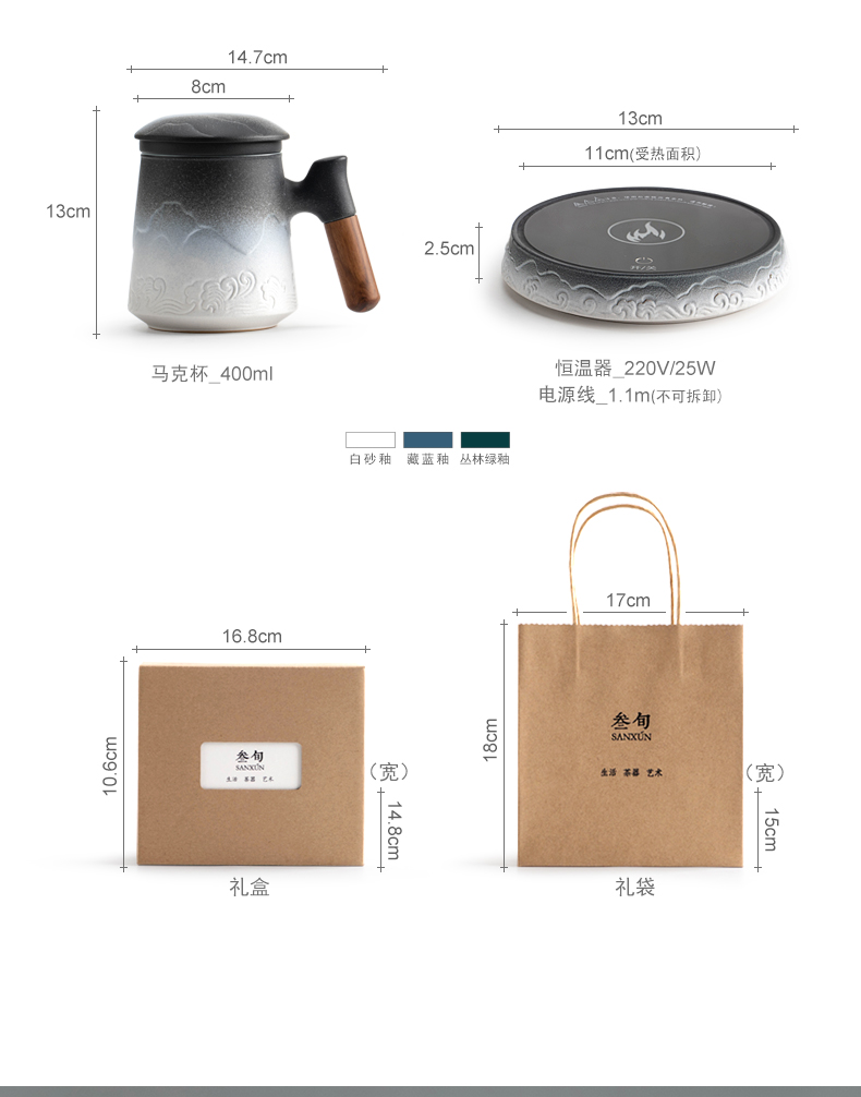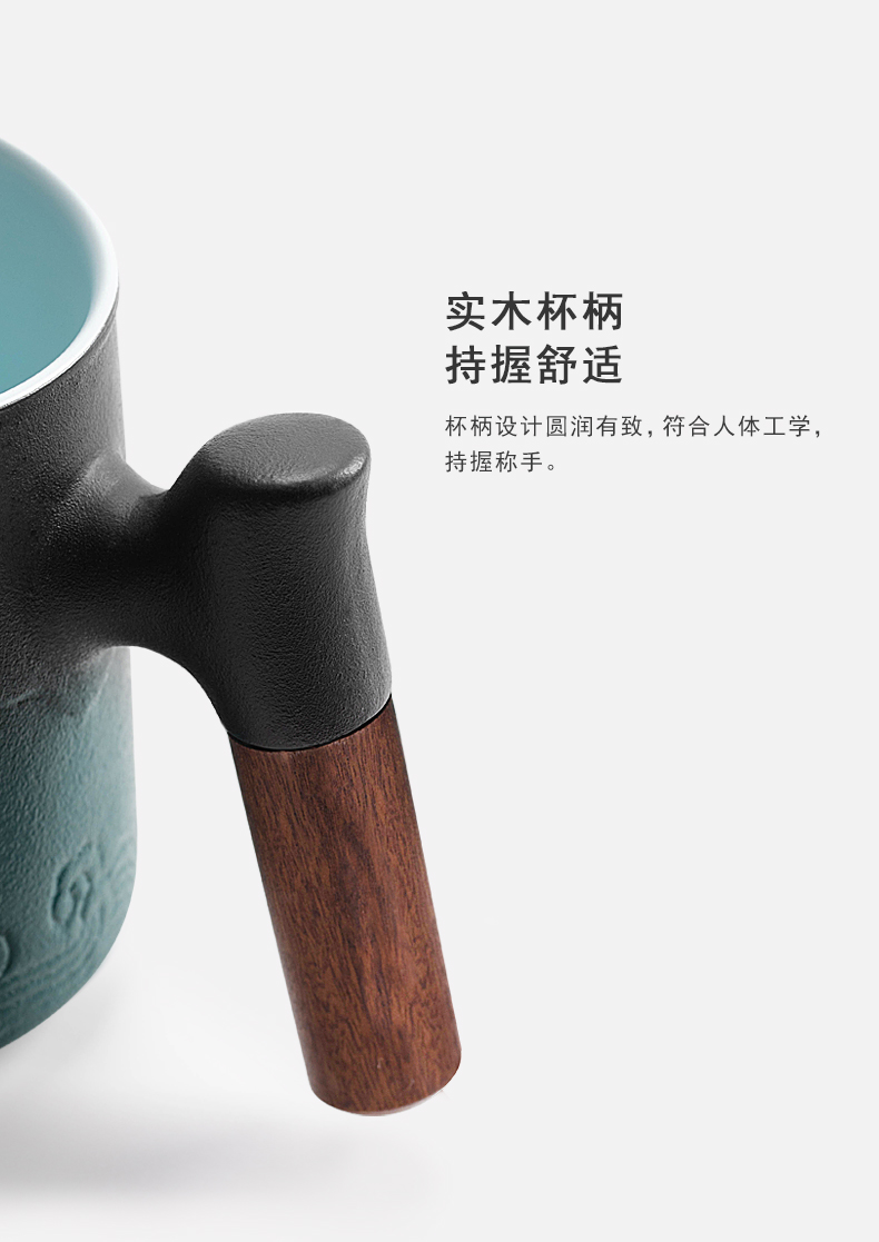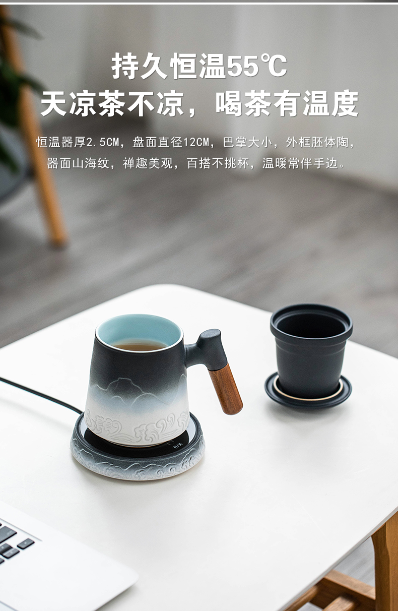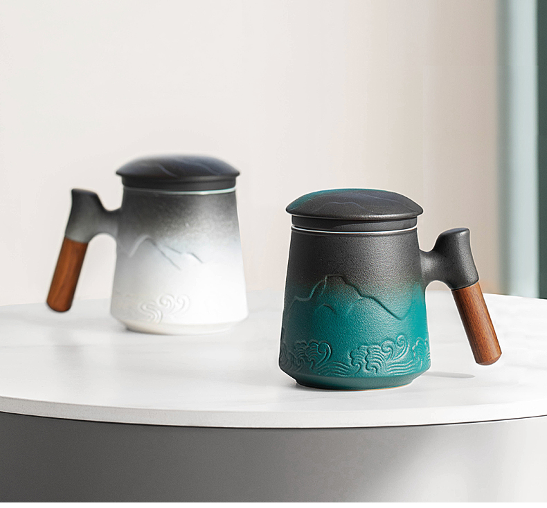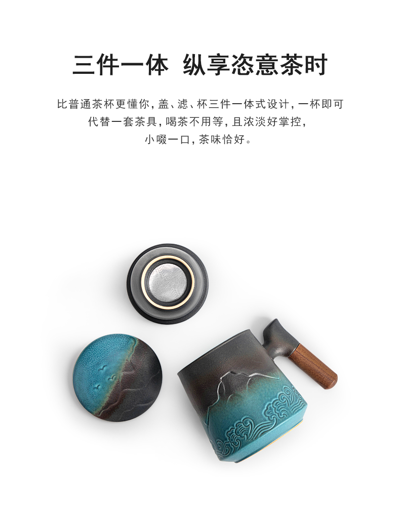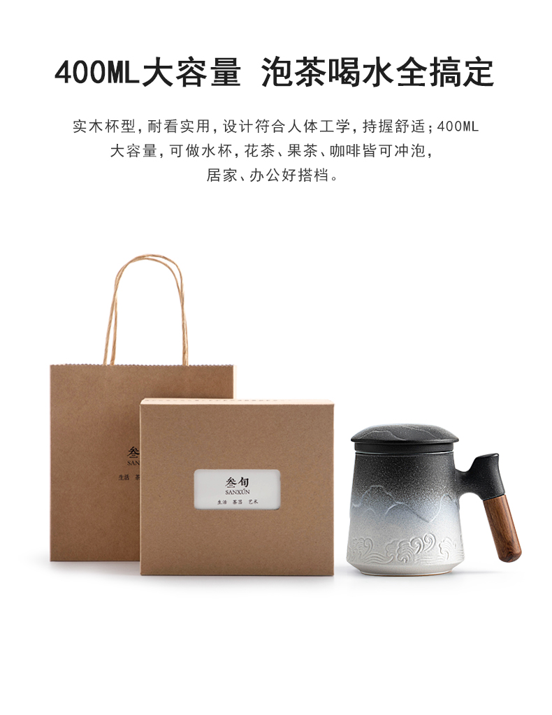 叁旬山海观泡茶马克杯茶杯家用陶瓷杯带盖办公室过滤水杯茶水分离杯子山海观泡茶杯【白砂釉】(单位:个) 黑色