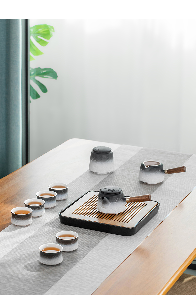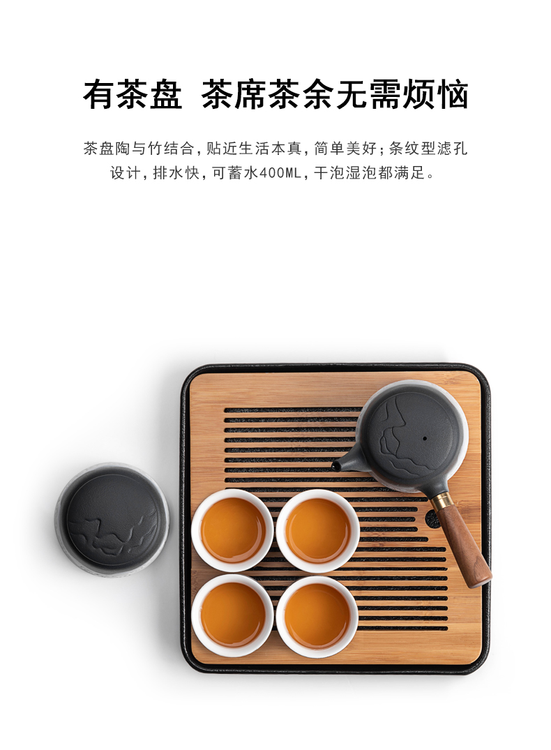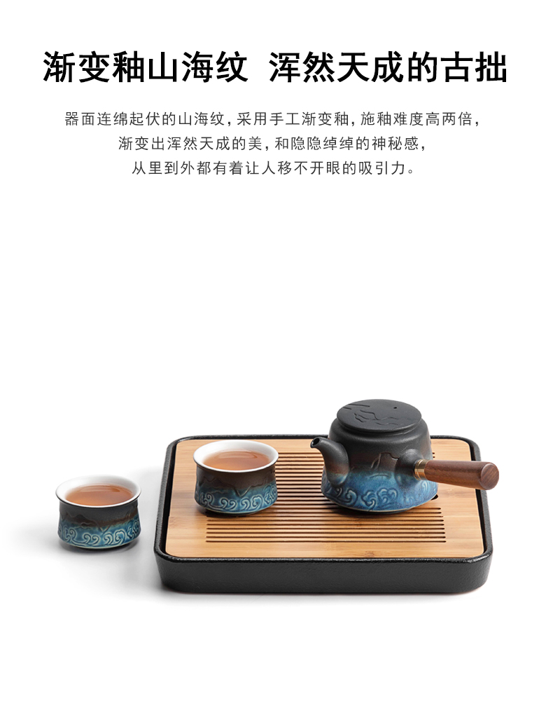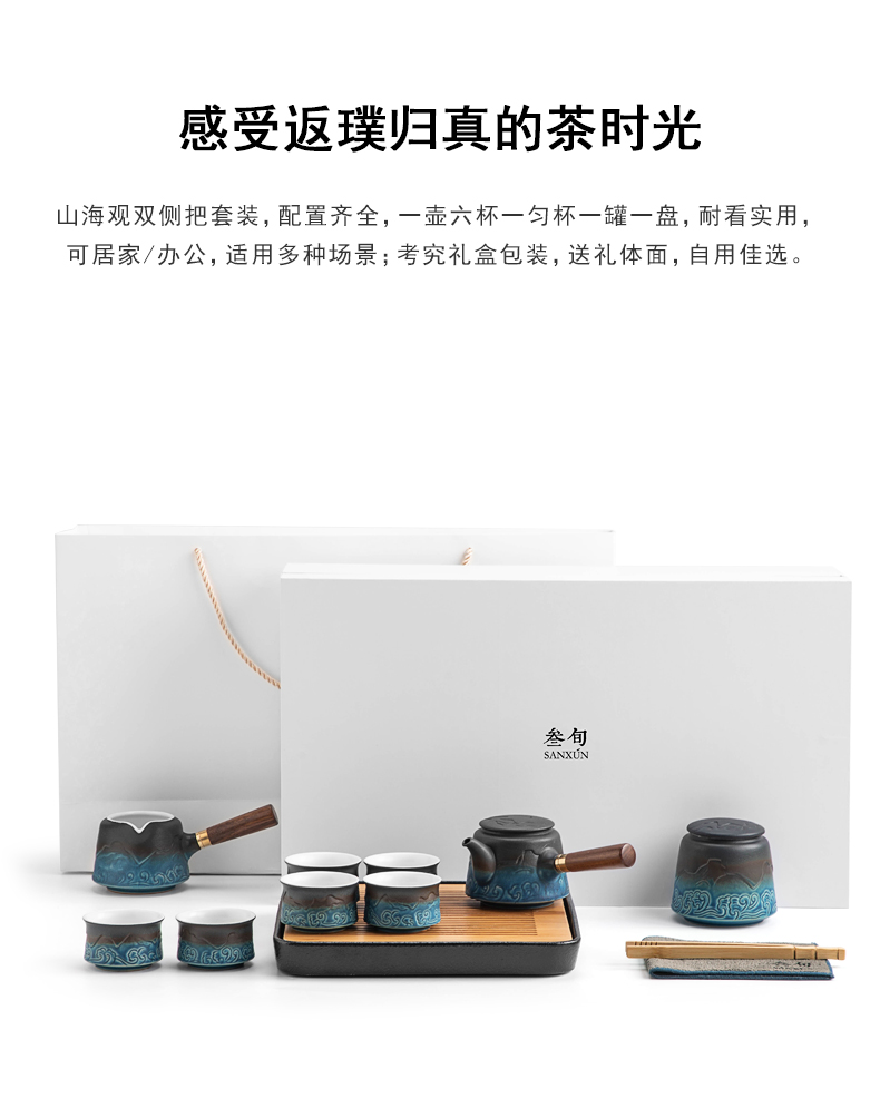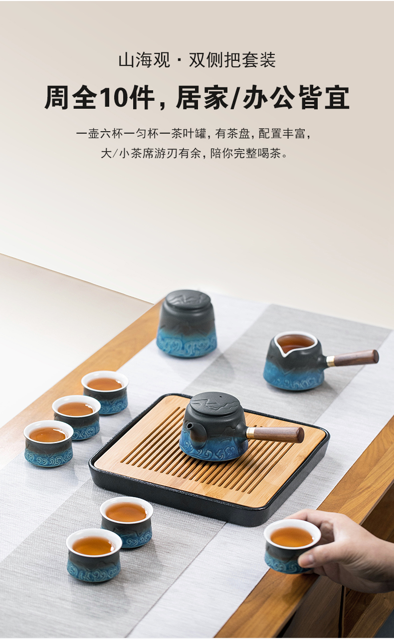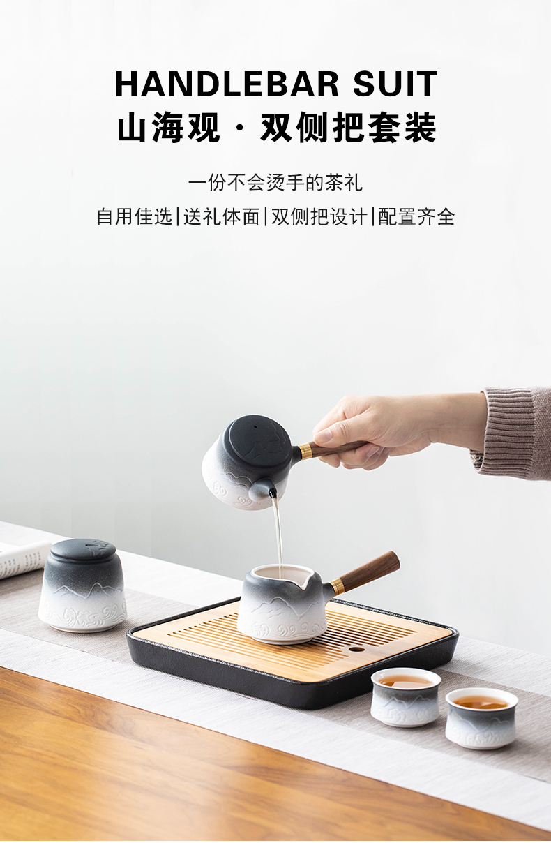 叁旬山海观双侧把套装陶瓷功夫茶具家用高档办公室轻奢礼盒装送礼 山海观双侧把茶盘套装10件(单位:套) 黑色