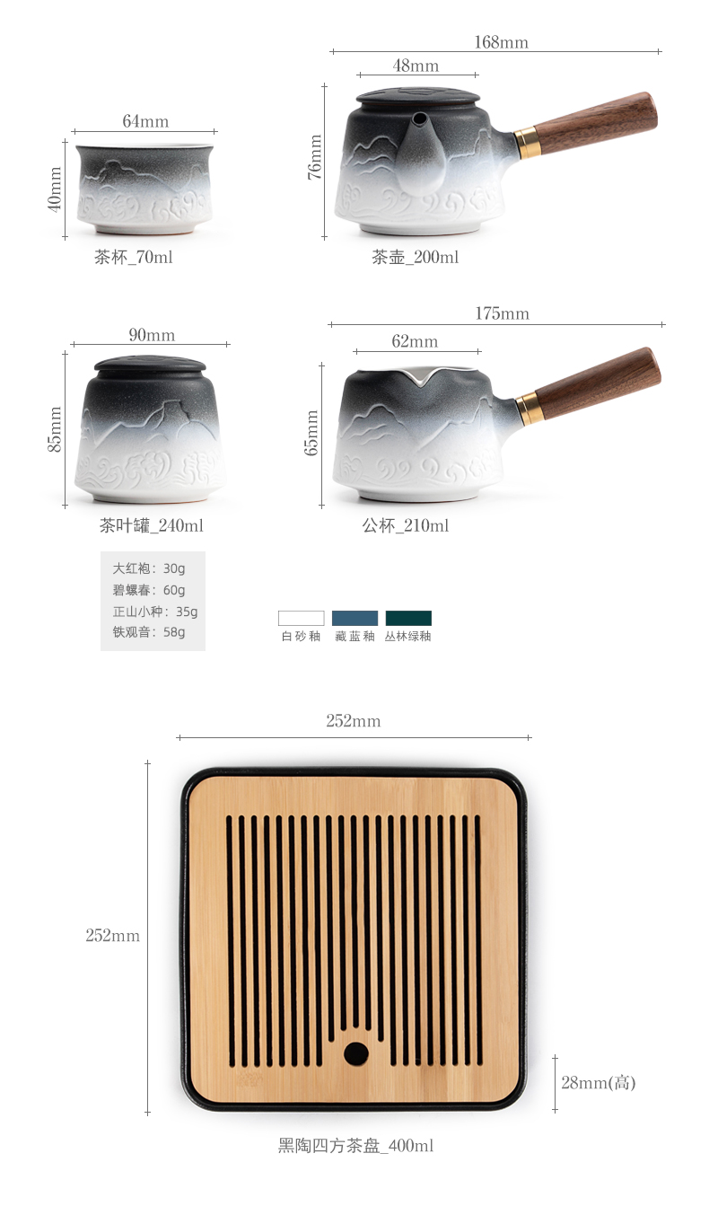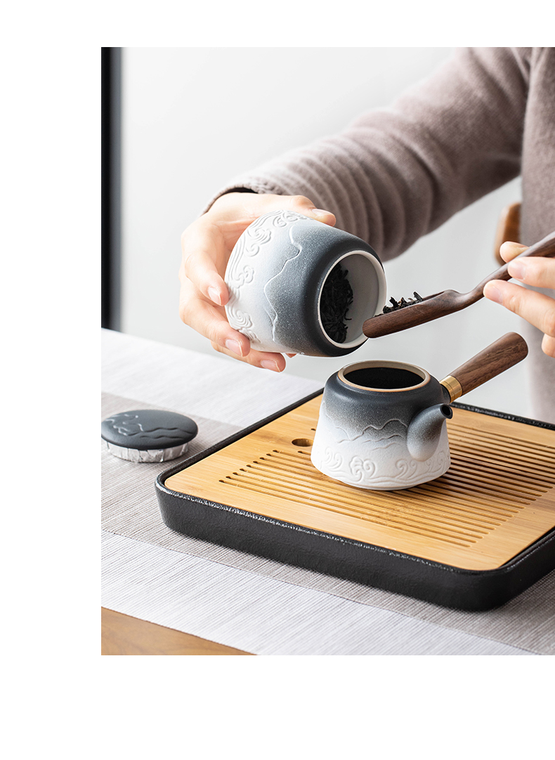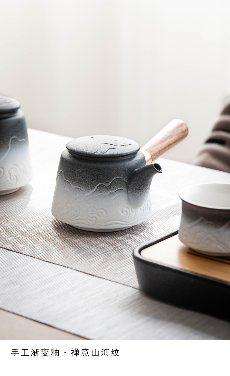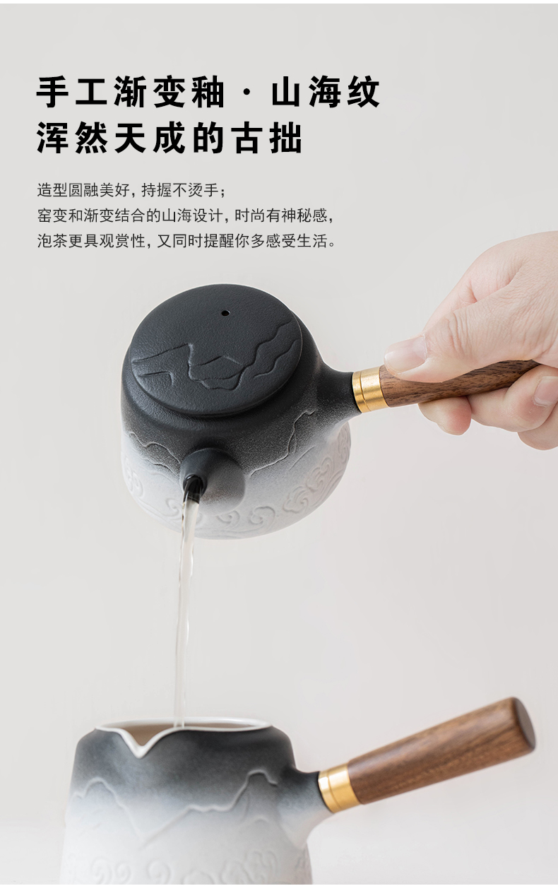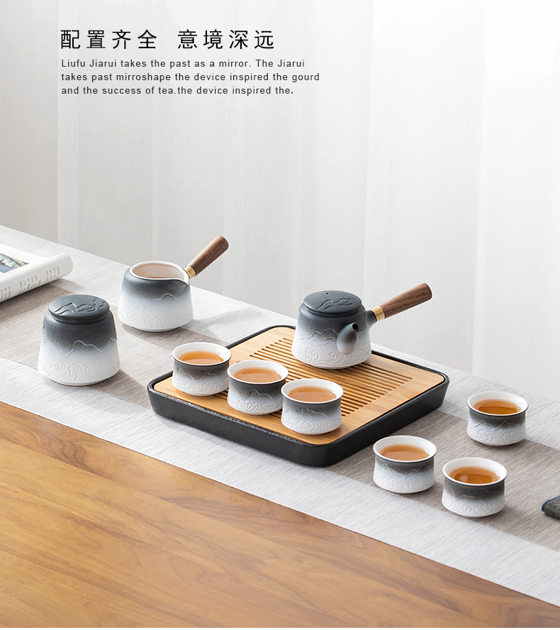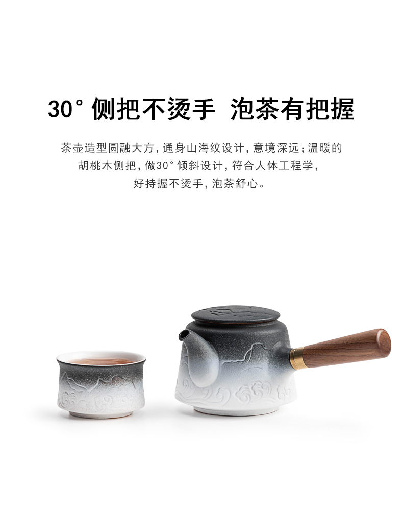 叁旬山海观双侧把套装陶瓷功夫茶具家用高档办公室轻奢礼盒装送礼 山海观双侧把茶盘套装10件(单位:套) 黑色
