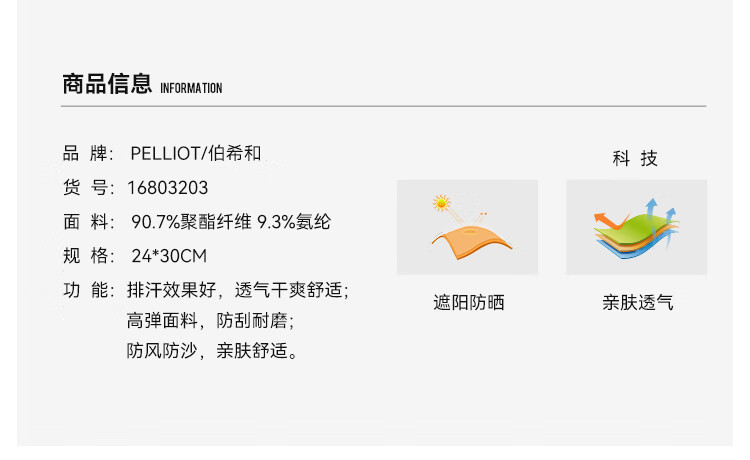 伯希和 防晒面罩 16803203 24*30cm (单位:个) 藏蓝色