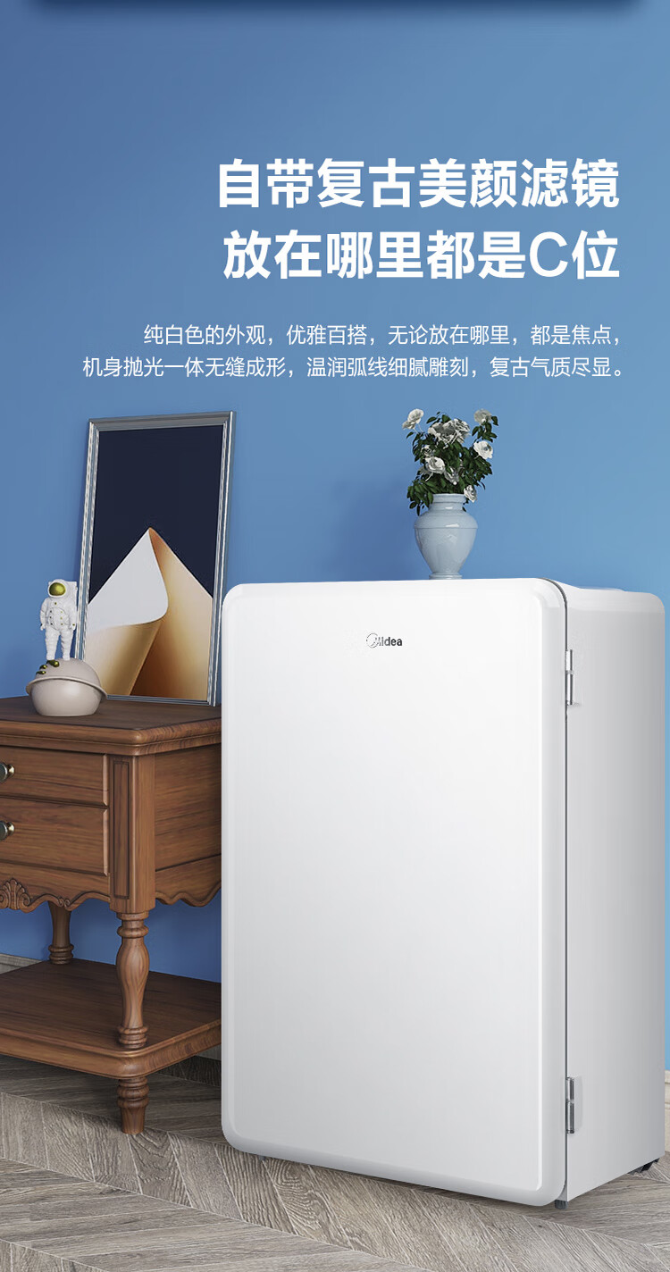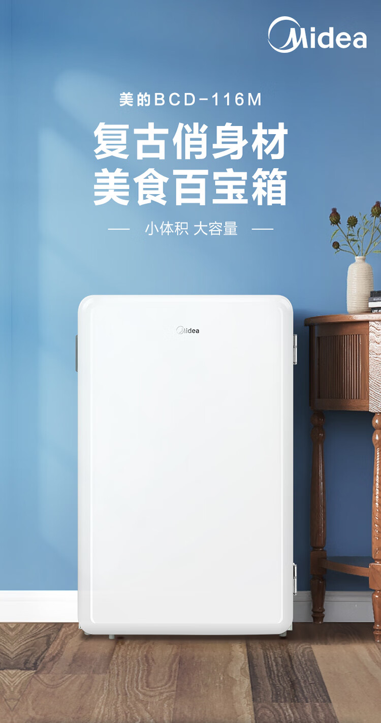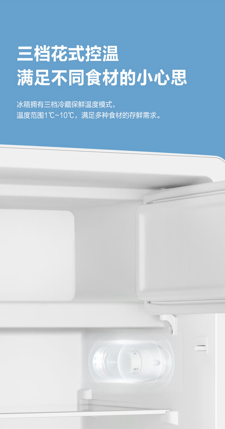 美的(Midea)家用单门租房宿舍 116升小冰箱 三挡控温三层分储空间 BCD-116M 台 极地白