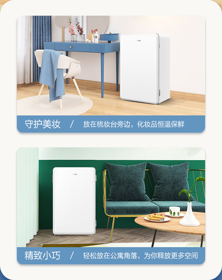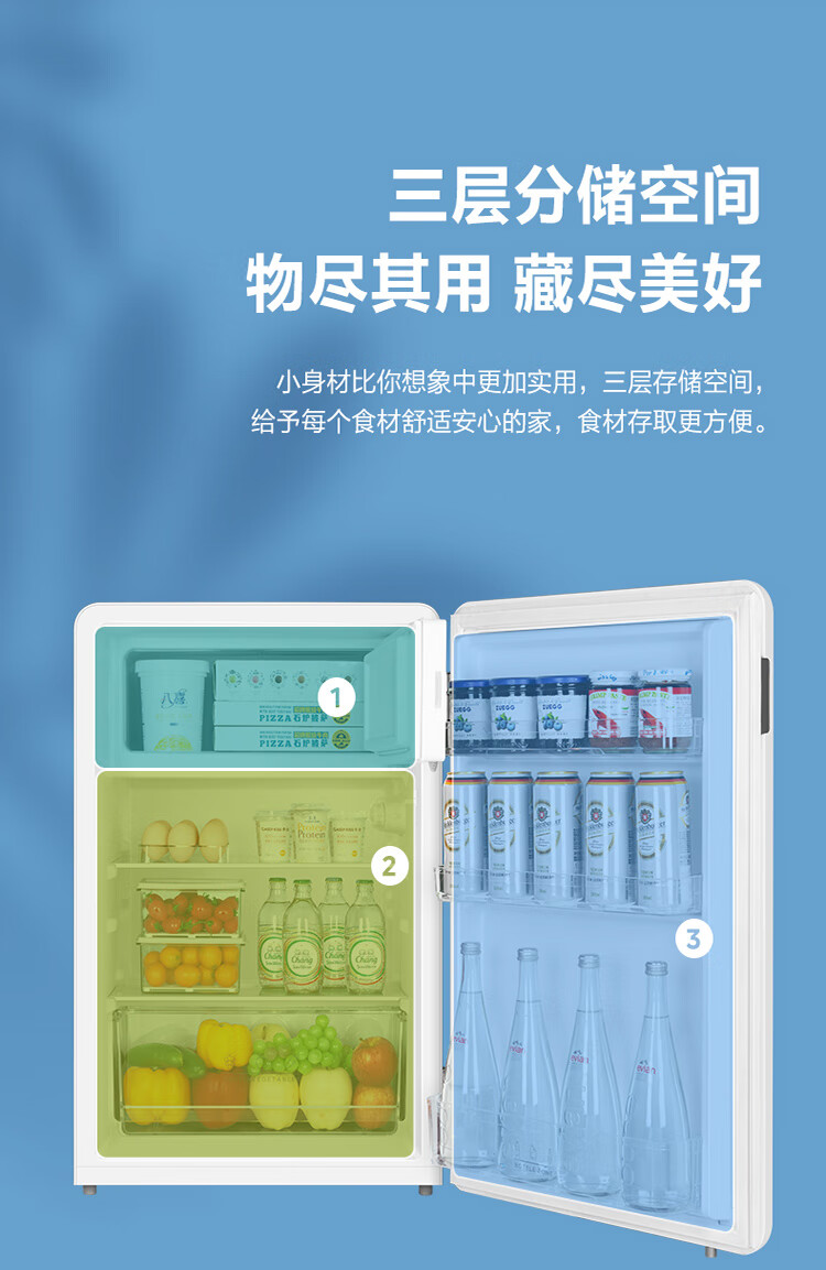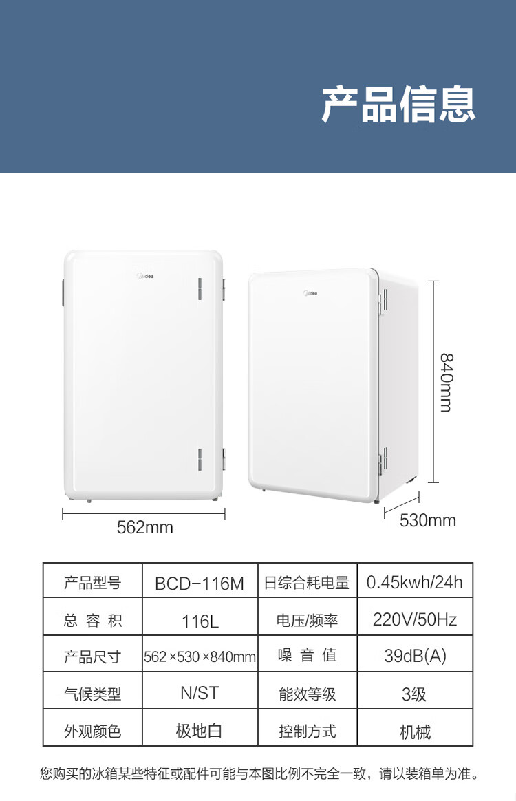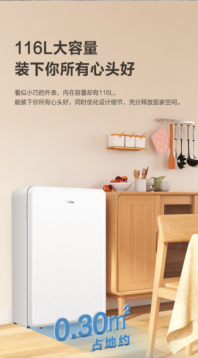 美的(Midea)家用单门租房宿舍 116升小冰箱 三挡控温三层分储空间 BCD-116M 台 极地白