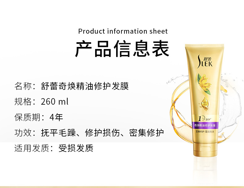 舒蕾 奇焕精油修护发膜 260ml 至臻修护,莹润亮泽 香槟色(单位:瓶)