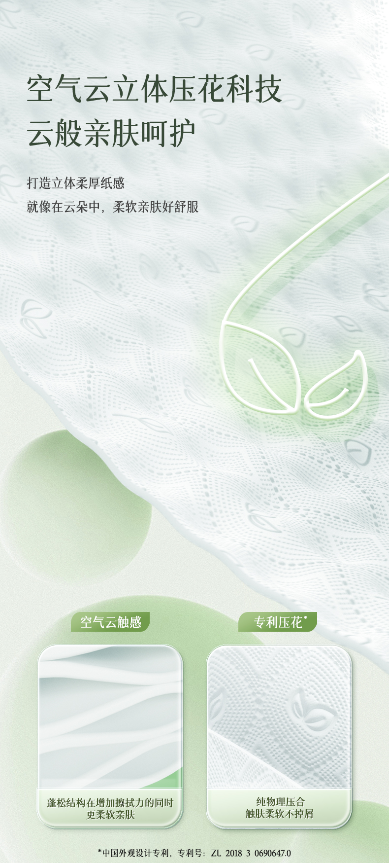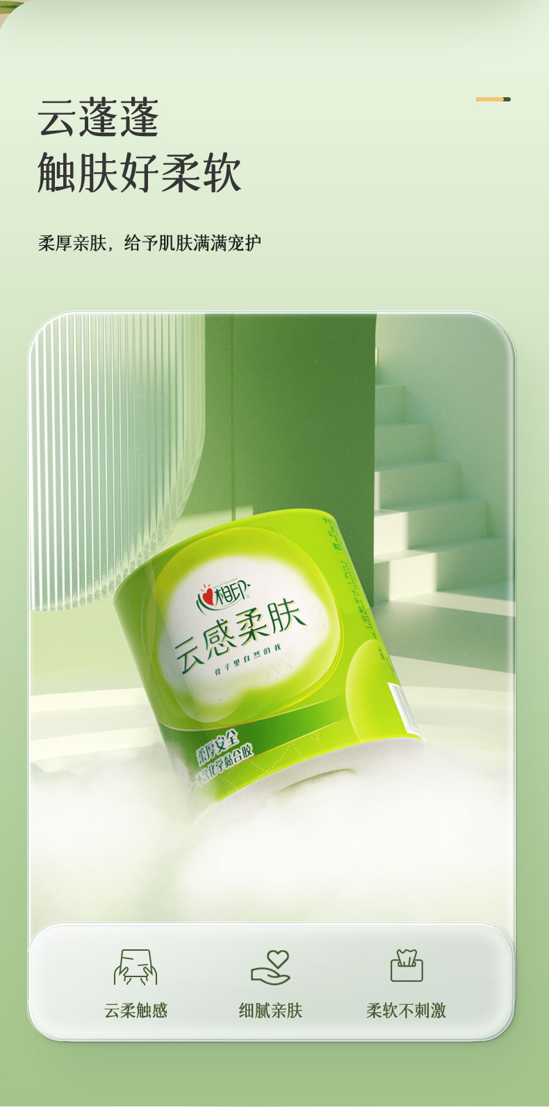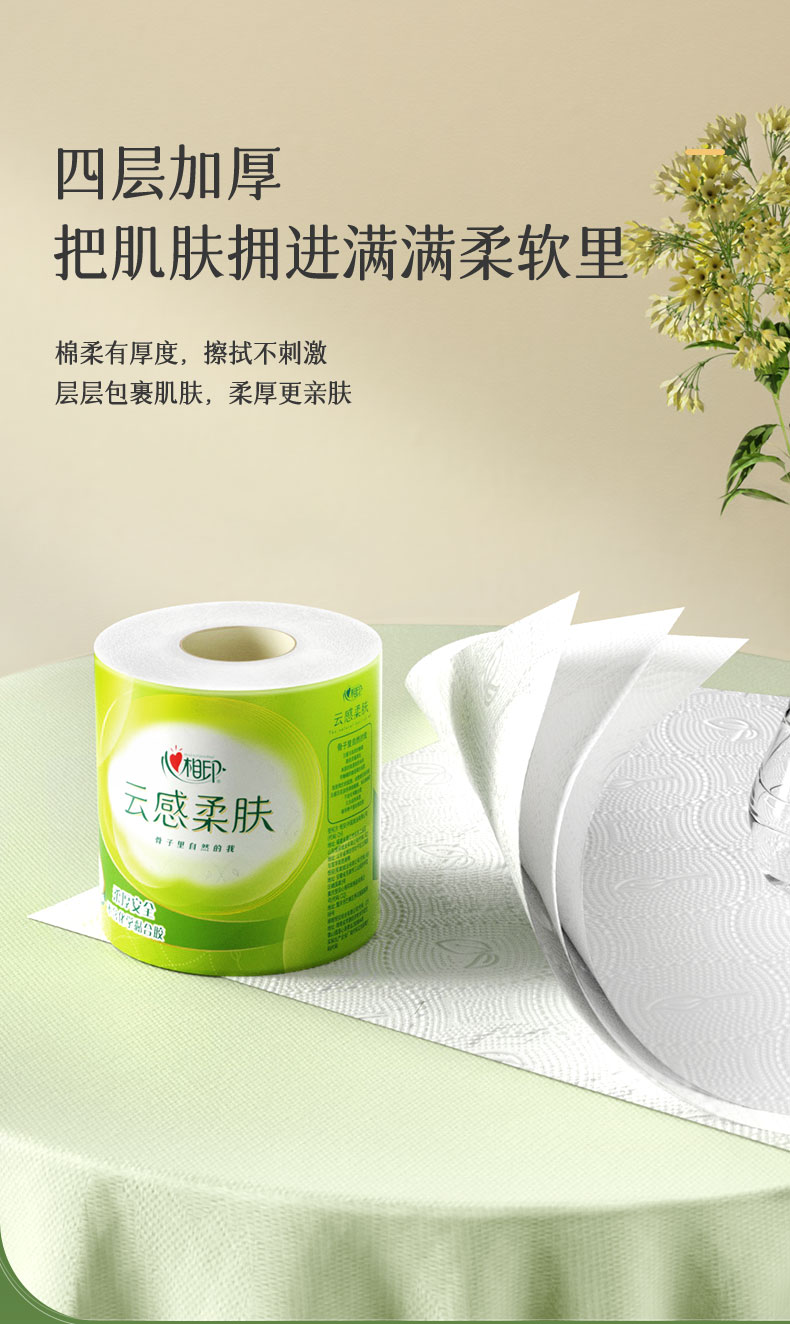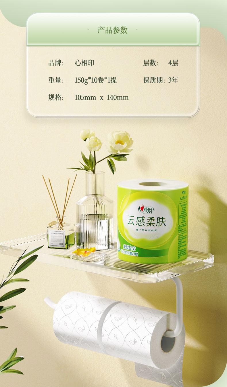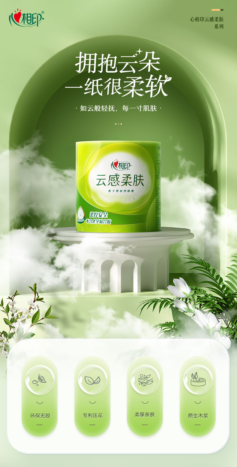 心相印(Mind Act Upon Mind)云感系列BT5410四层立体压花卷筒卫生纸150克10粒装 (单位:提) 浅杉绿