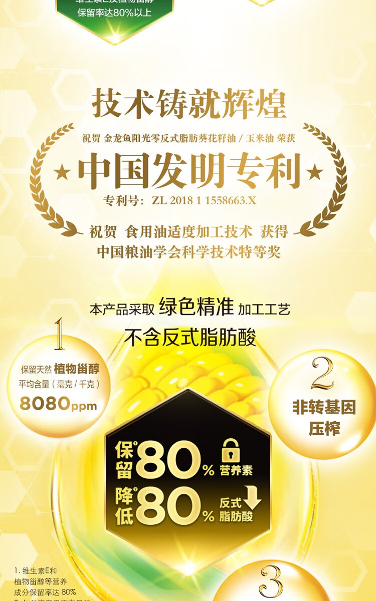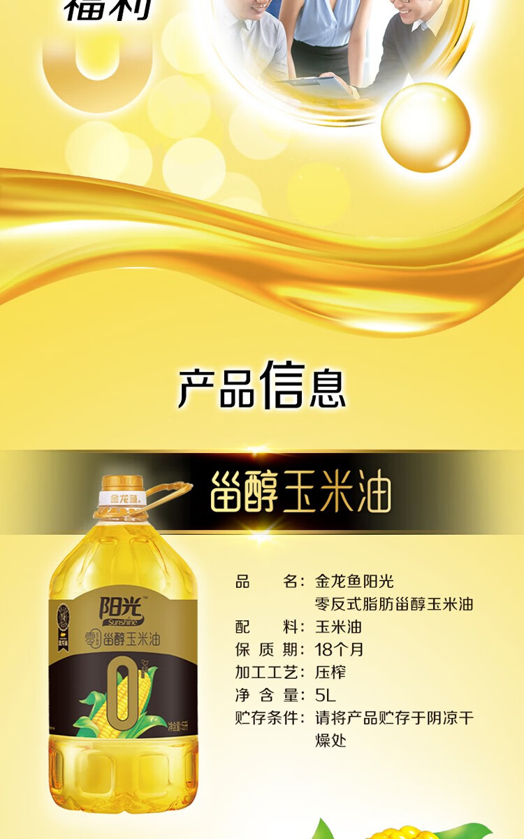 金龙鱼阳光零反式脂肪甾醇玉米油5L (单位:瓶) 黄色 5l