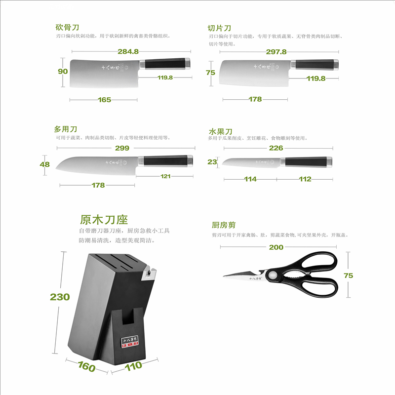 十八子作 悦影刀具七件套S2325(单位:套) 黑色