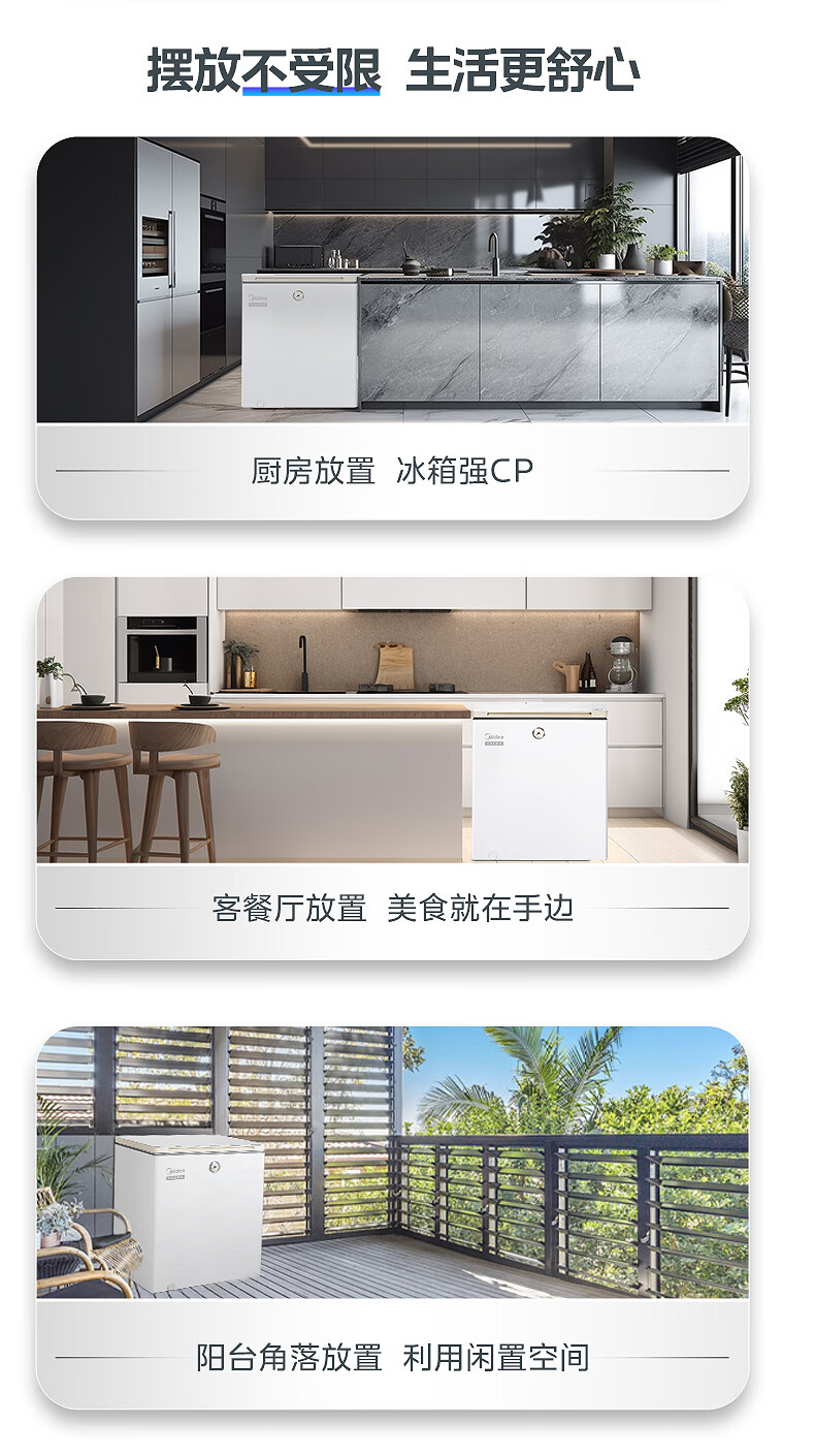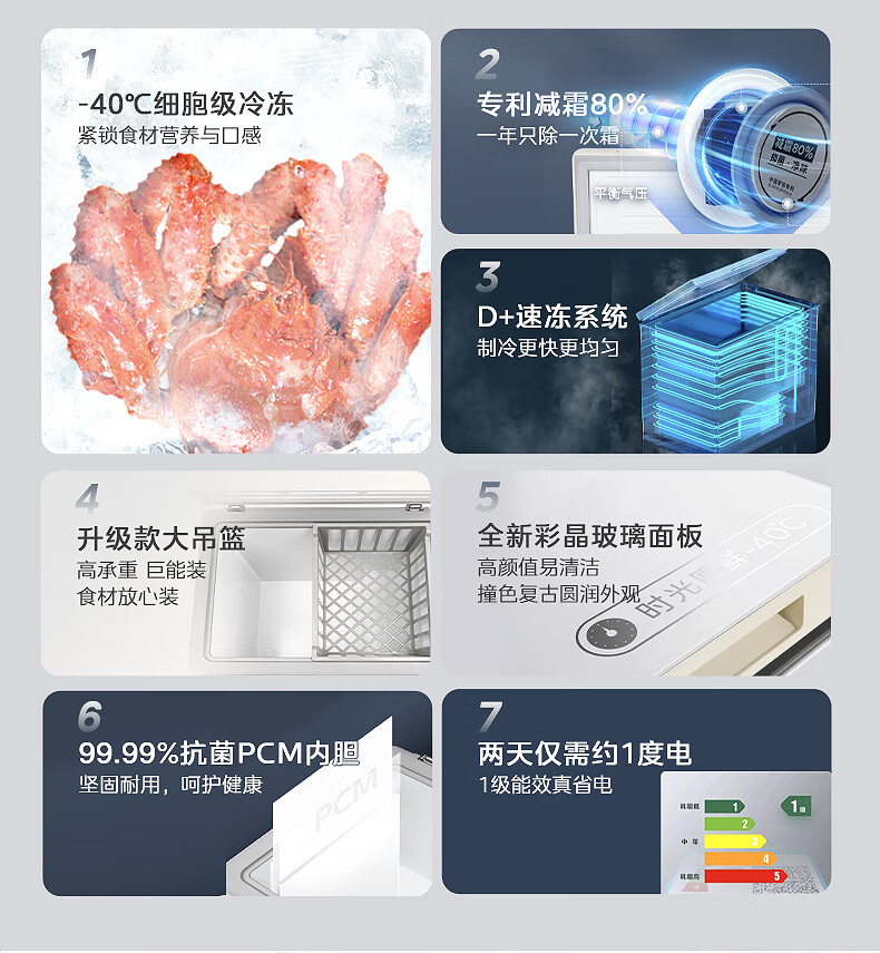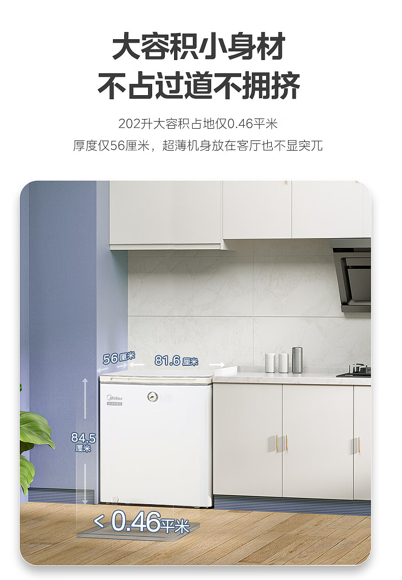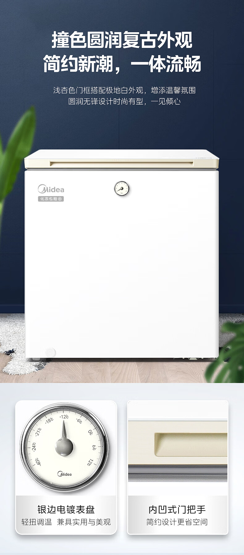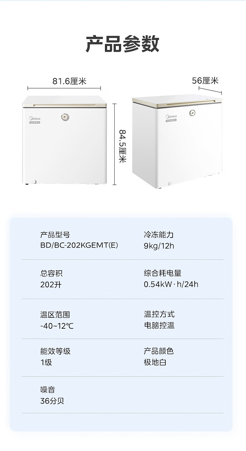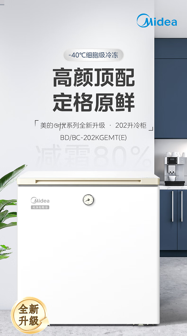 美的(Midea)202升冷柜时光冰柜-40℃锁鲜减霜家用囤货BD/BC-202KGEMT(E) 台 极地白