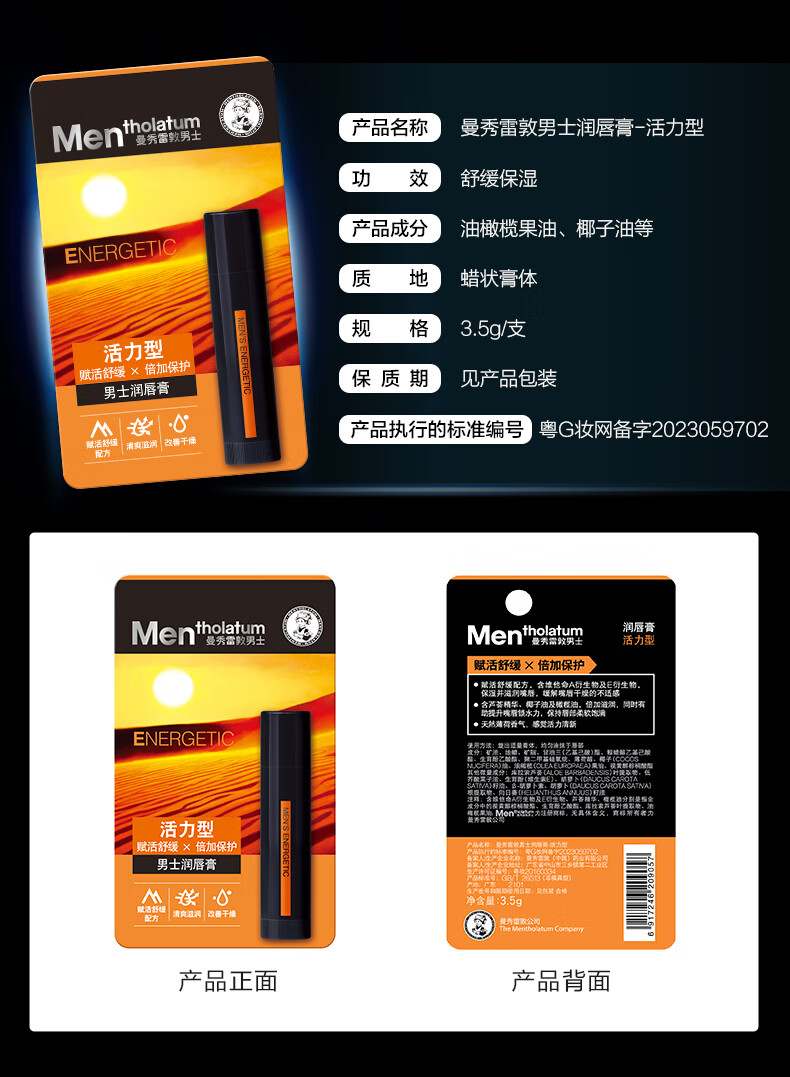 曼秀男士润唇膏(户外型)3.5g单位:支 黑色
