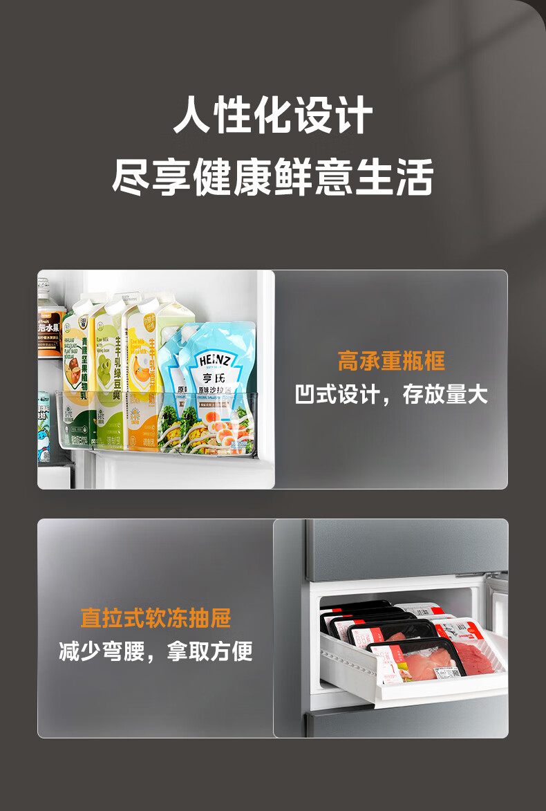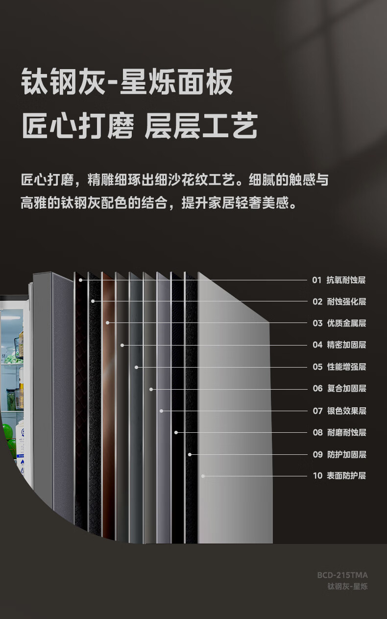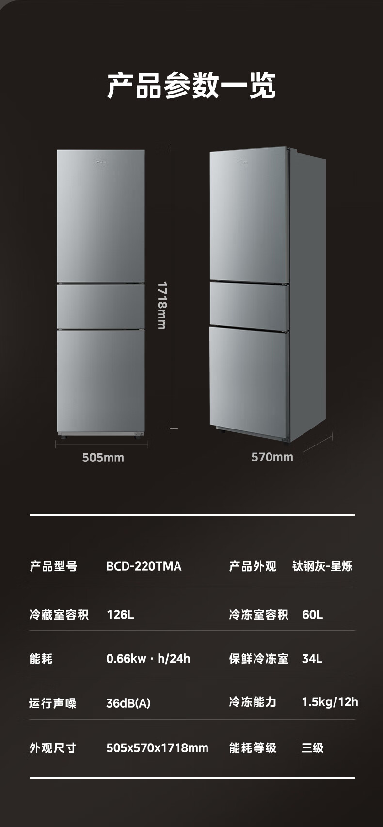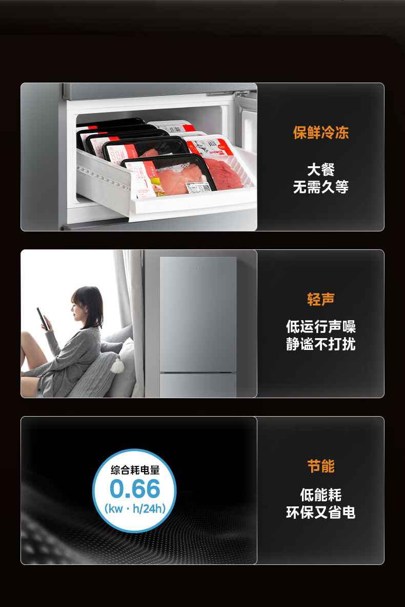 美的(Midea)三门三温 静音净味 租房宿舍小冰箱 220升BCD-220TMA 台 钛钢灰星烁