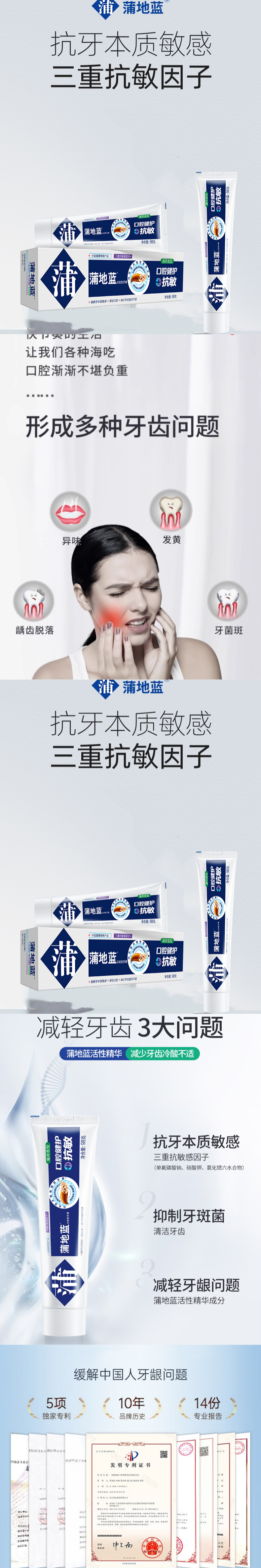 蒲地蓝功效型牙膏口腔健护抗敏-薄荷-98g(单位:支) 灰蓝色
