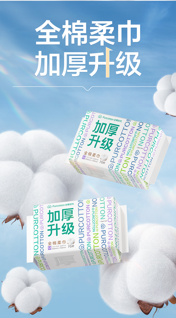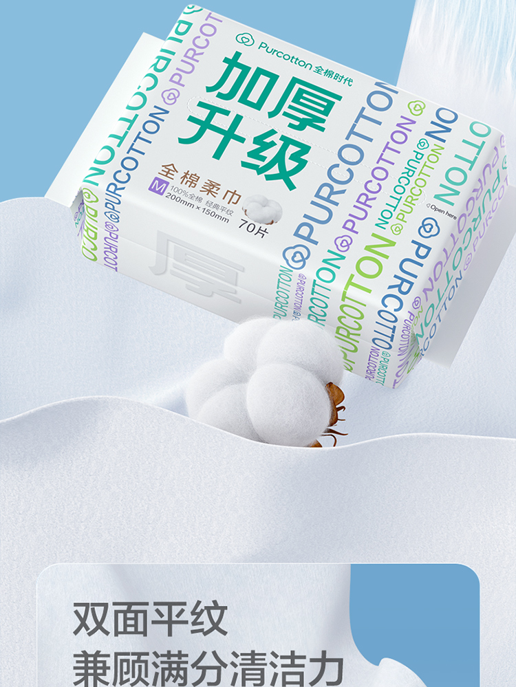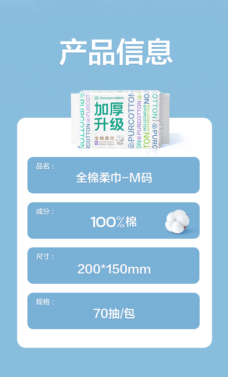 全棉时代全棉柔巾M码加厚款20*15cm 70片/包(单位:包) 白色