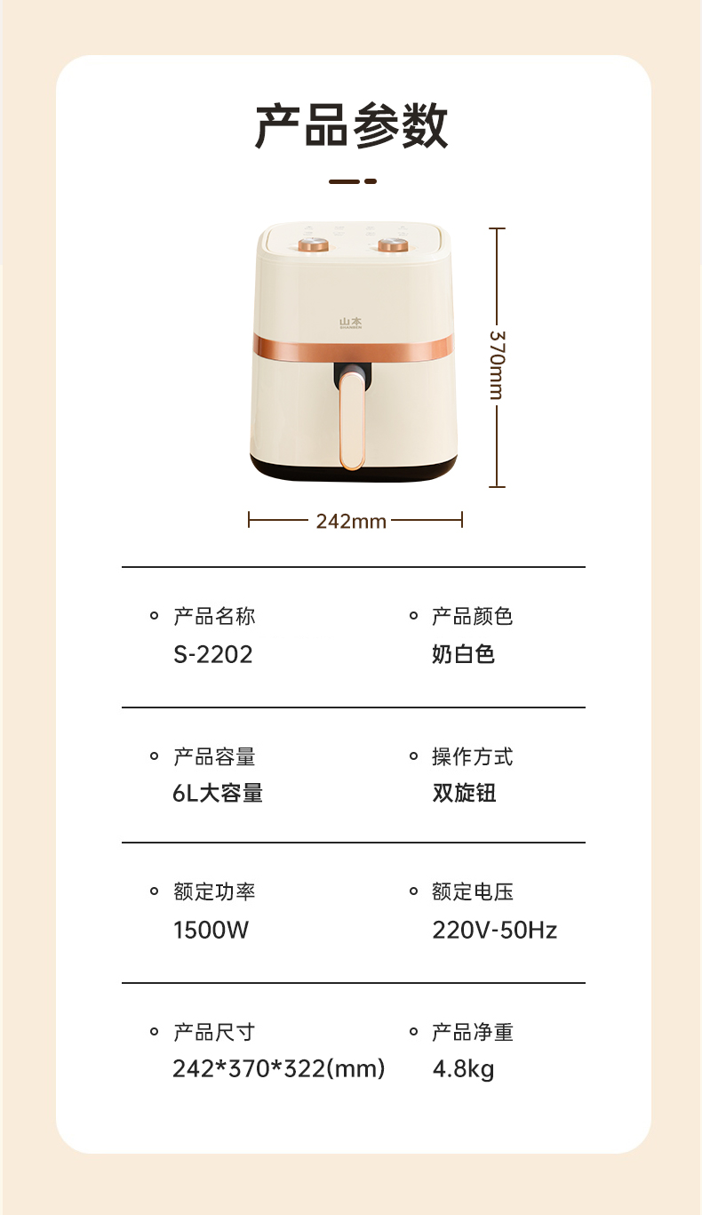 山本 空气炸锅 S-2202(单位:台)白色 白色