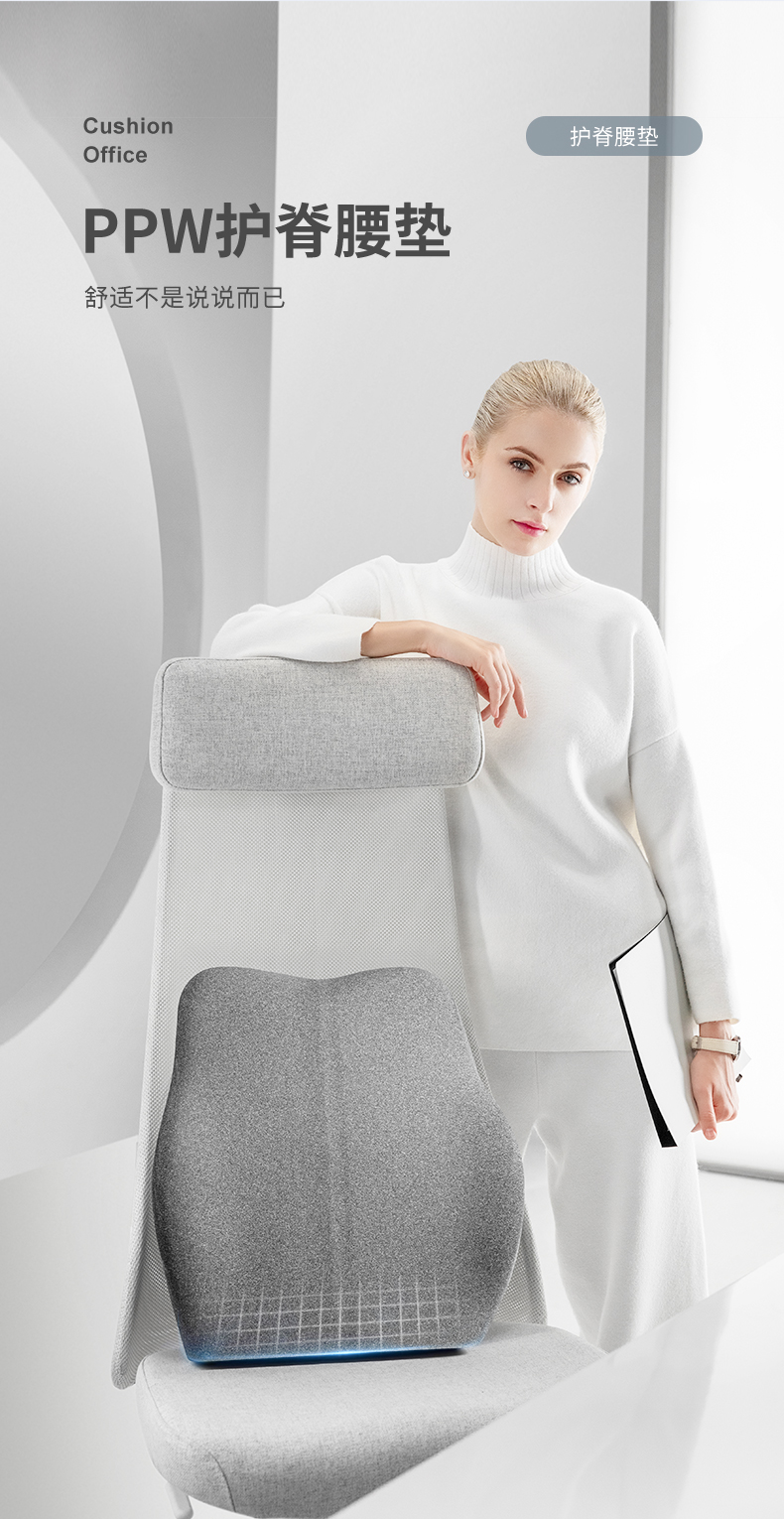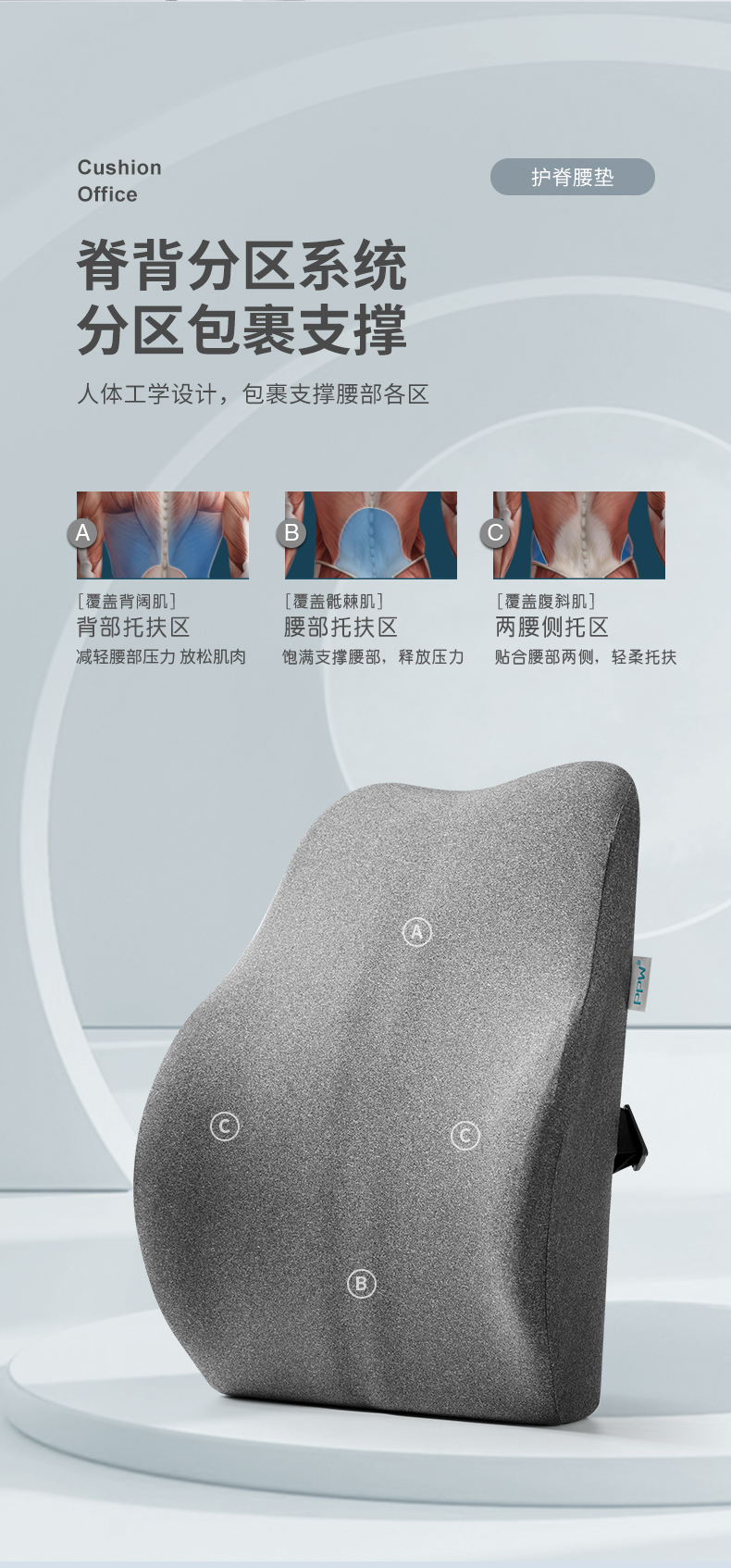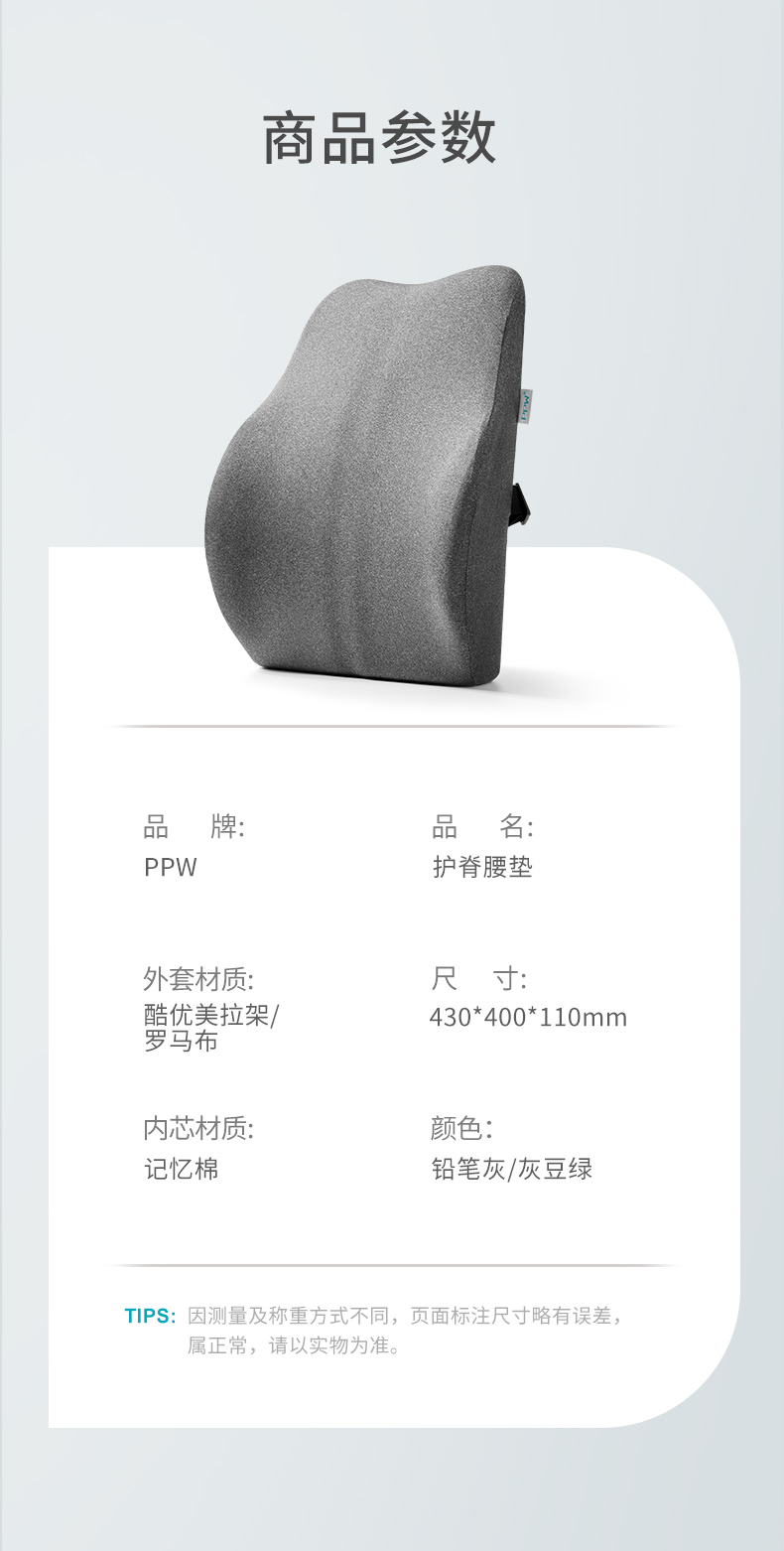 PPW护脊腰垫护腰靠垫竹炭款铅笔灰(430*400*110mm)/个 铅笔灰