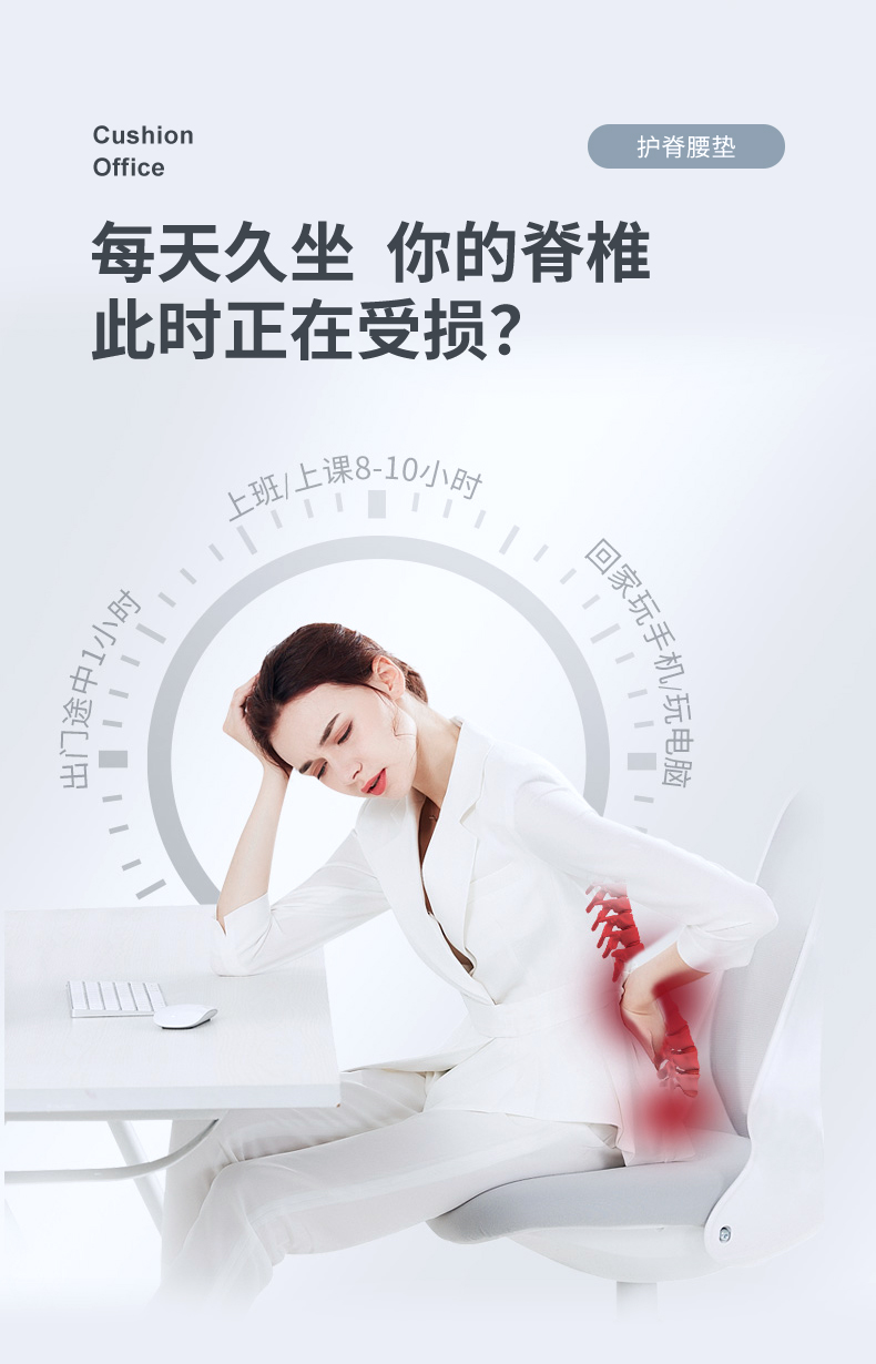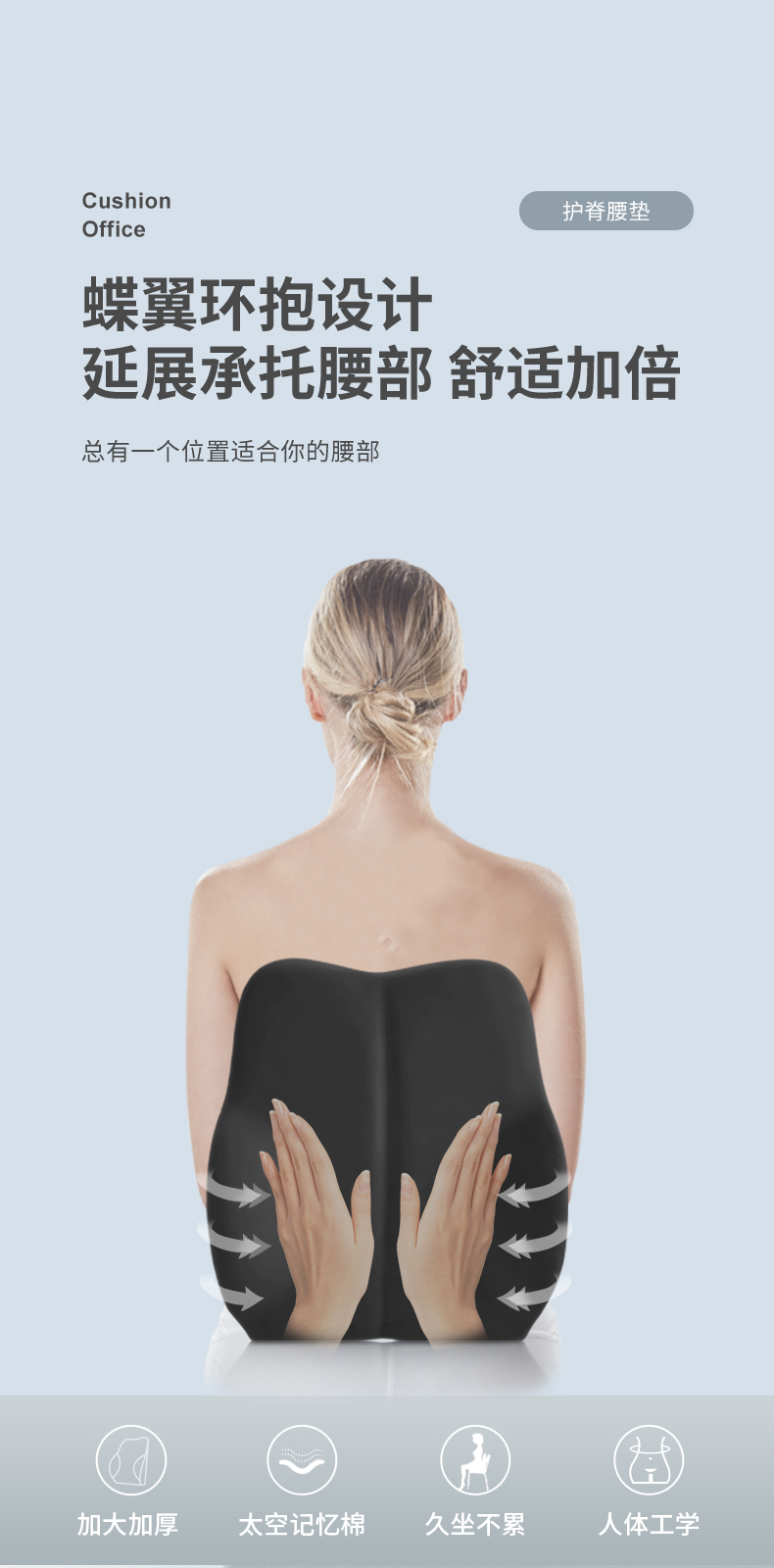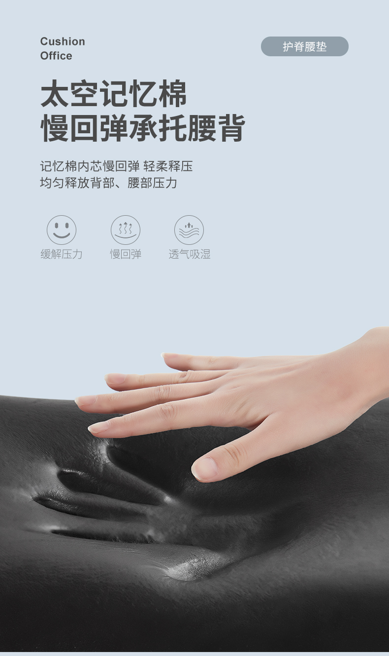 PPW护脊腰垫护腰靠垫竹炭款铅笔灰(430*400*110mm)/个 铅笔灰
