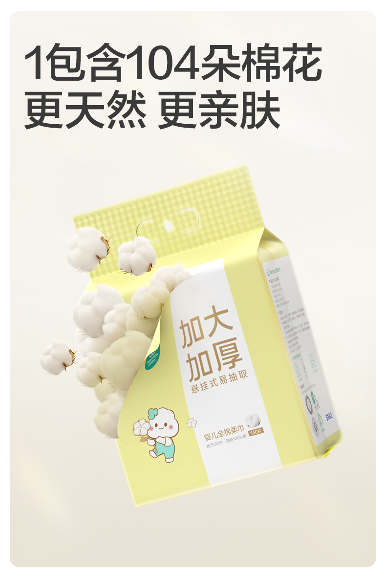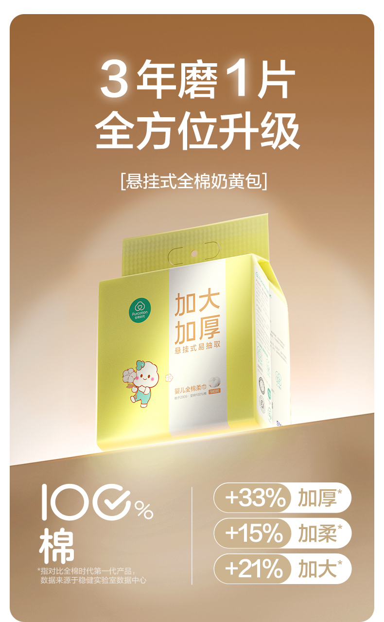 全棉时代婴儿全棉柔巾200*145mm 140片/包(单位:包) 黄色