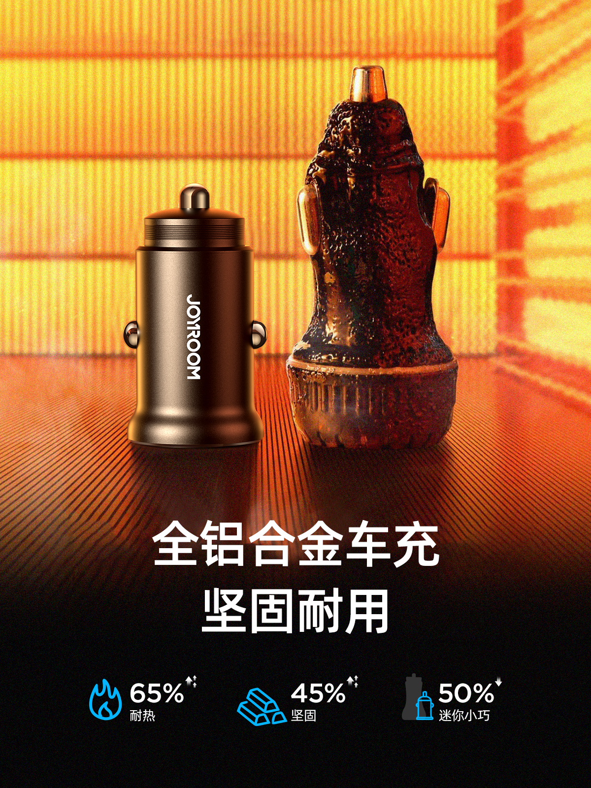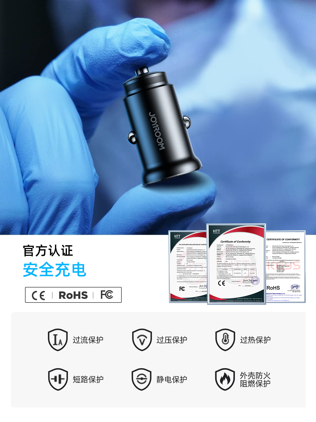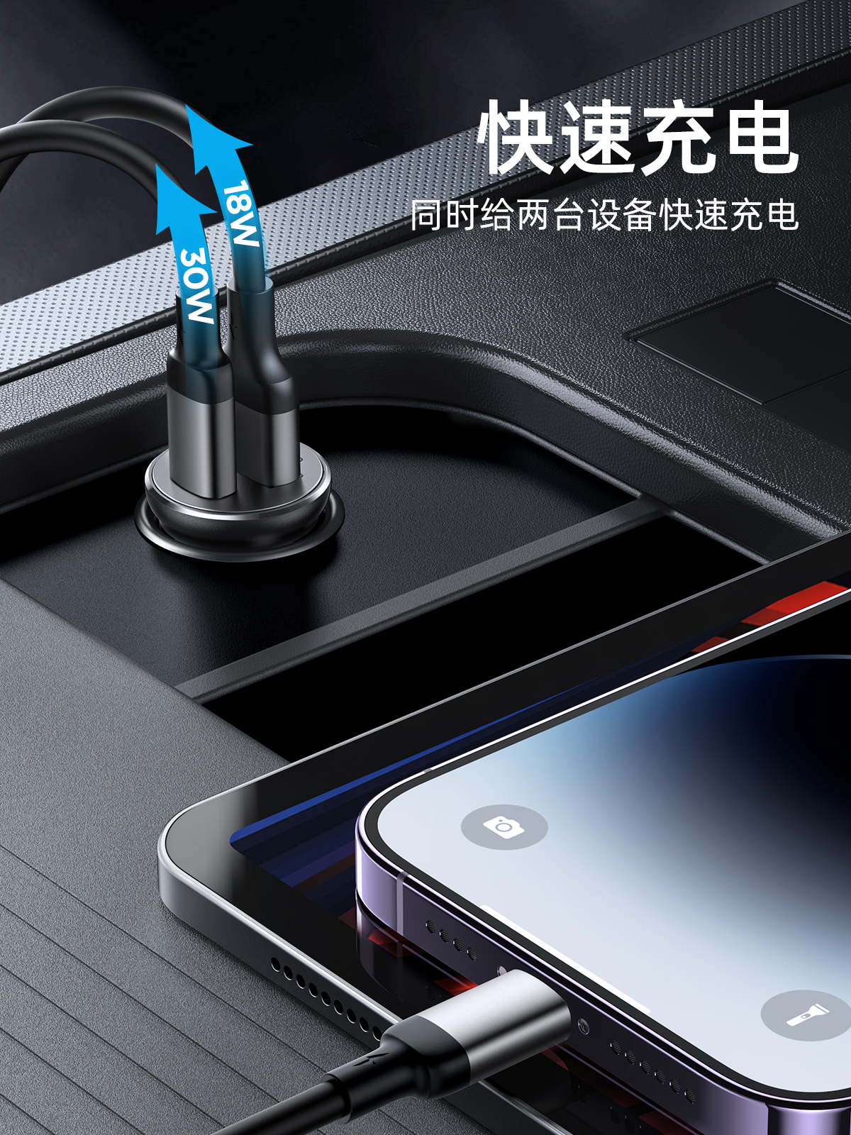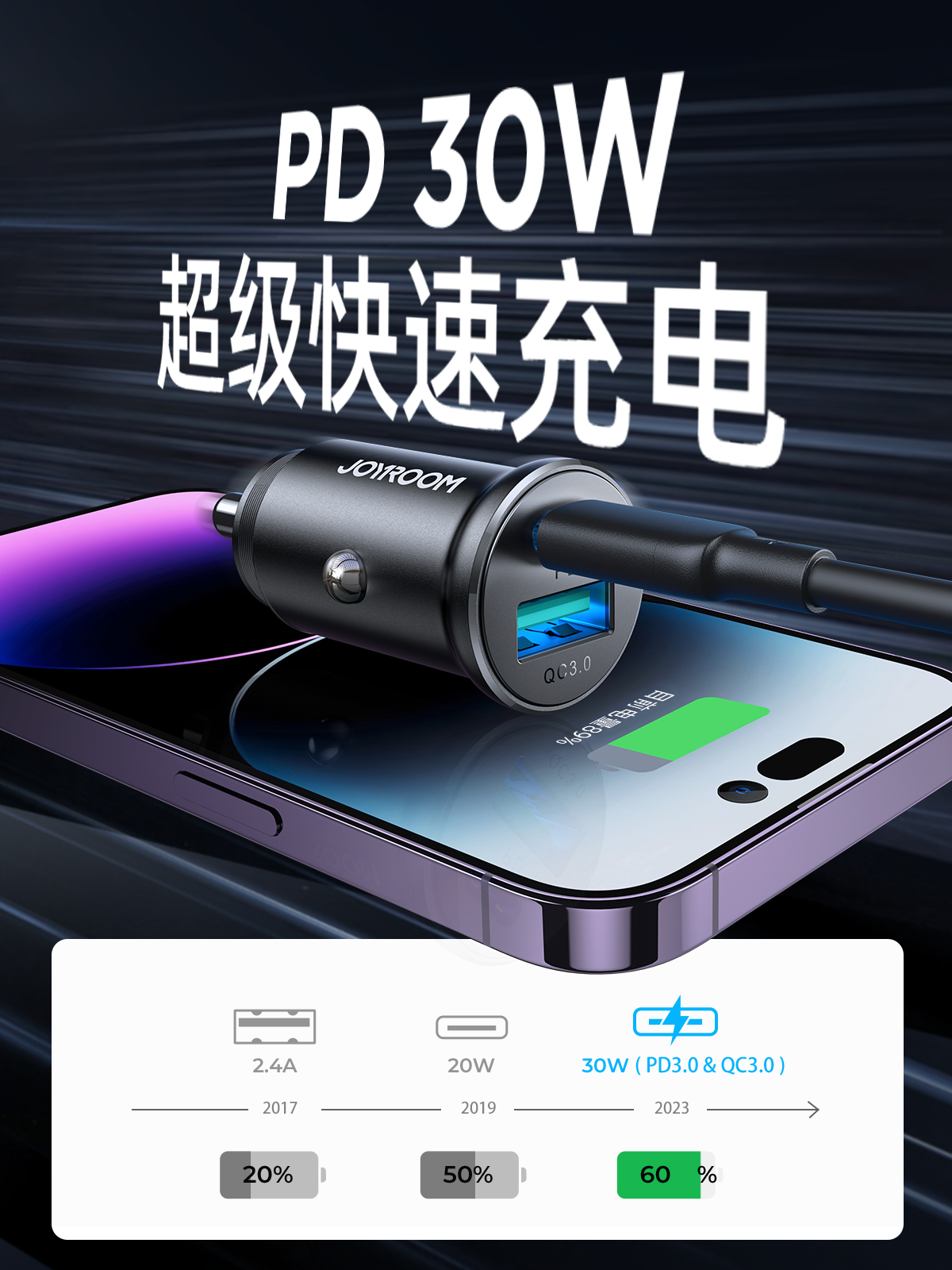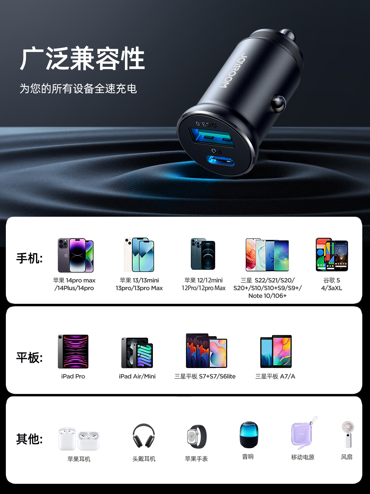 机乐堂30W迷你金属快速车载充电器JR-CCN05(单位:个) 曜石黑