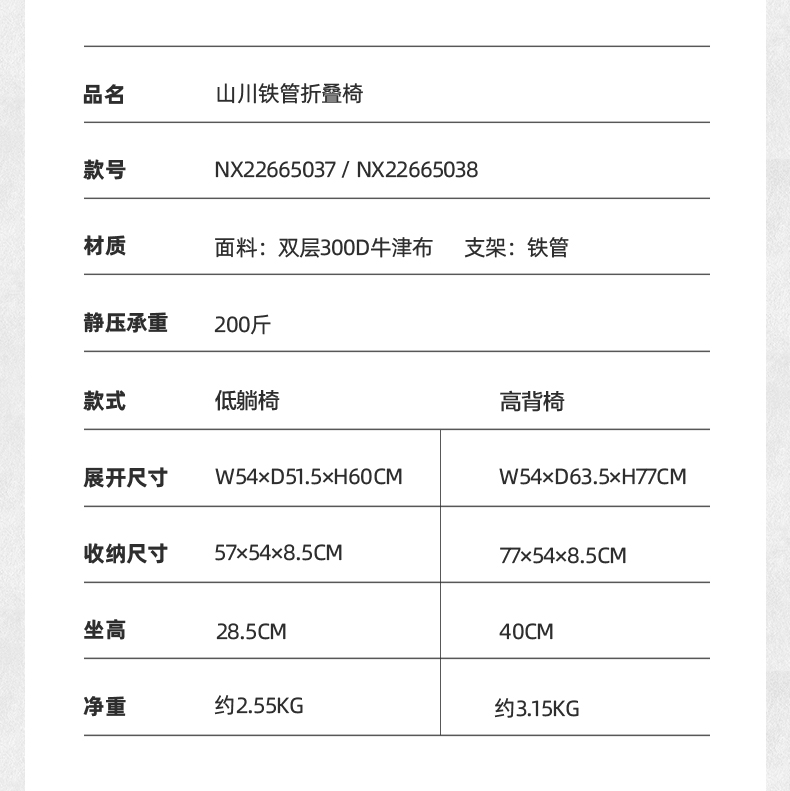 牧高笛(MOBIGARDEN)铁质折叠高背椅 NX22665038/把 米白