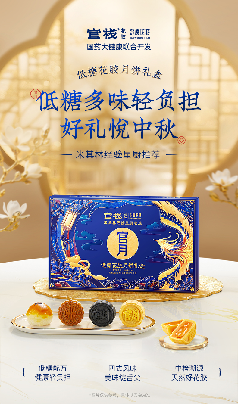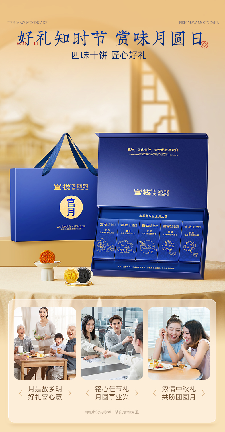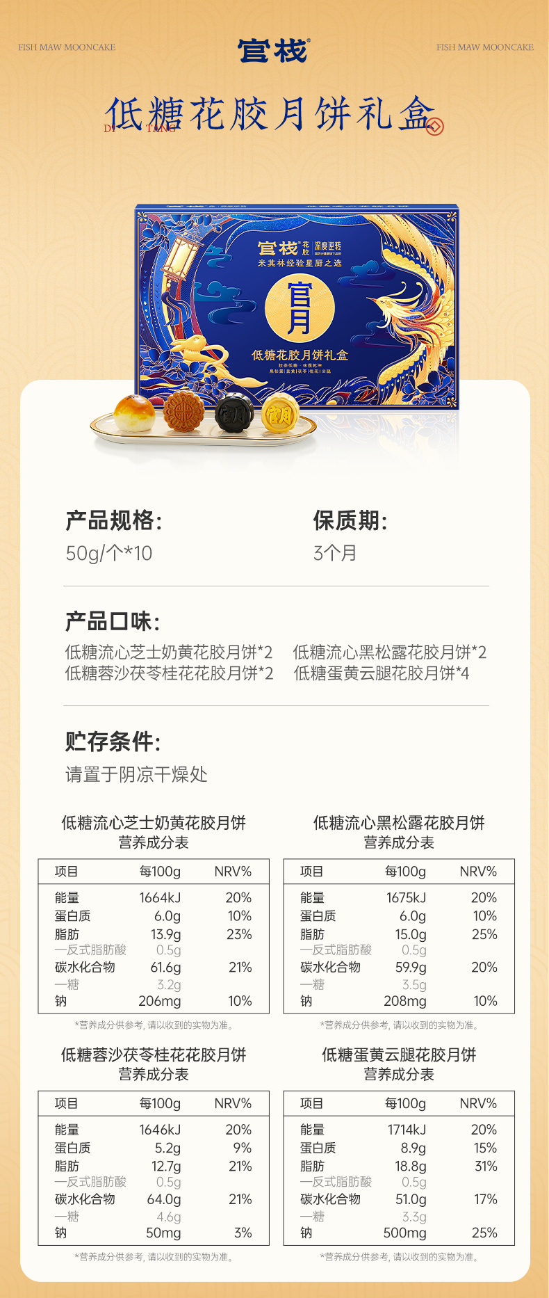 官栈 低糖流心花胶月饼 月饼礼盒 500g 蓝色(单位:盒)