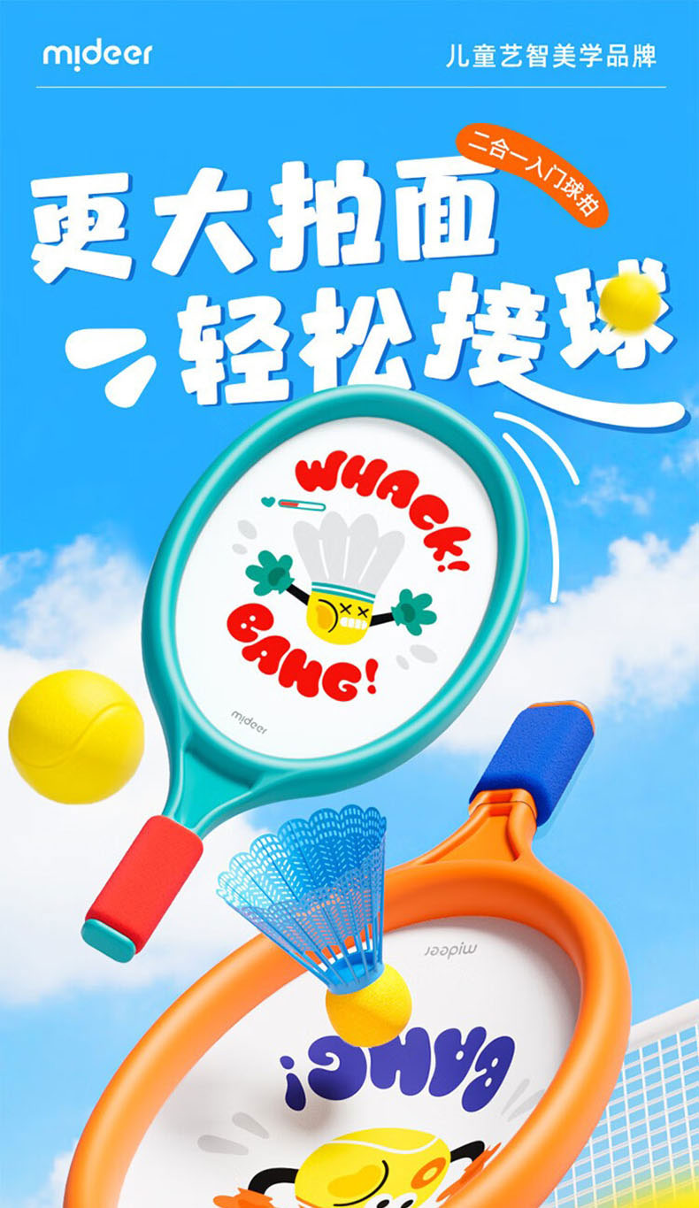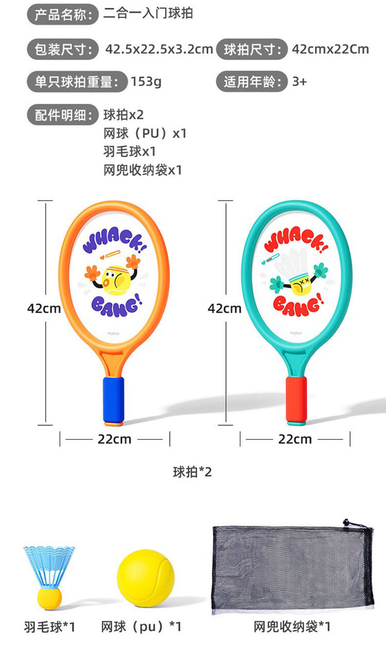 mideer儿童二合一入门球拍MD1370(单位:对) 单色