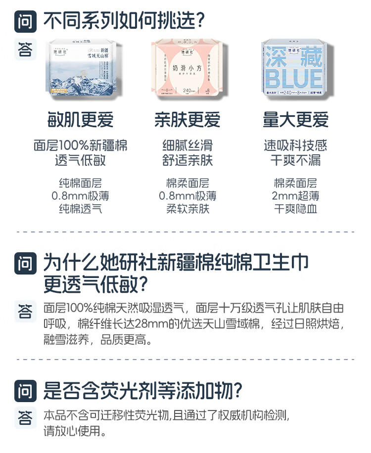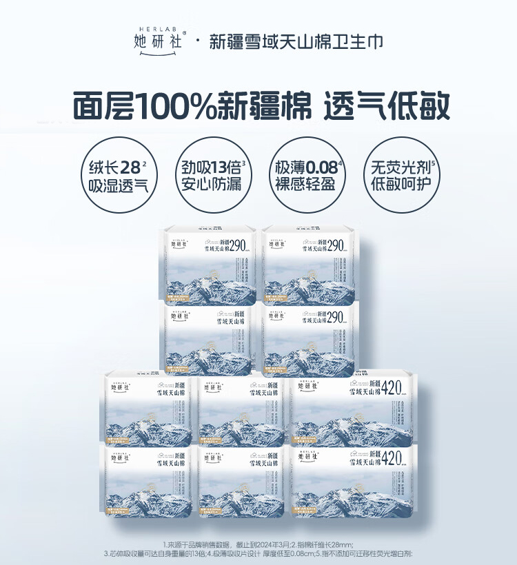 她研社(Herlab )新疆棉卫生巾套装 超薄日夜组合66片套装(单位:套) 无色