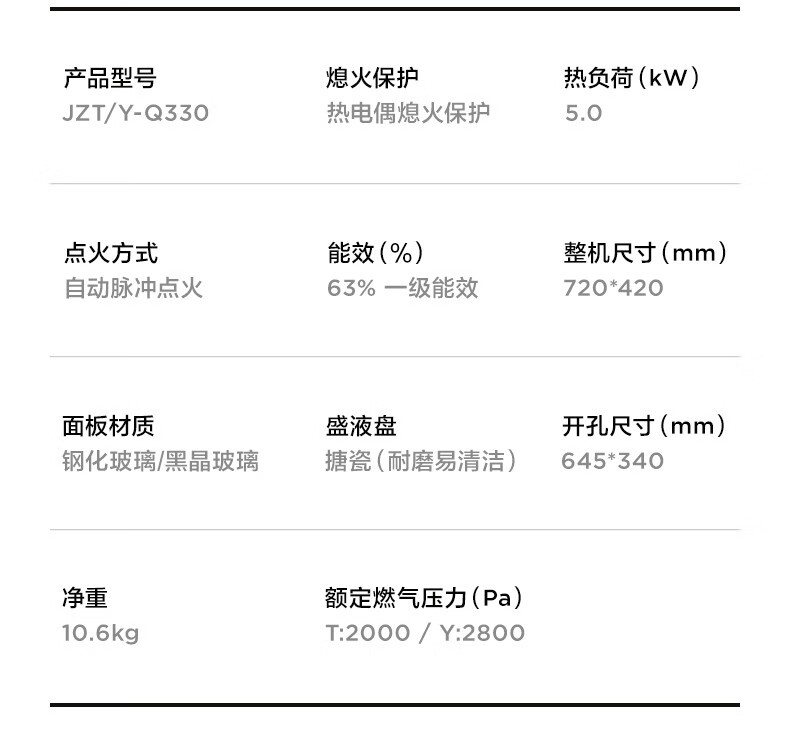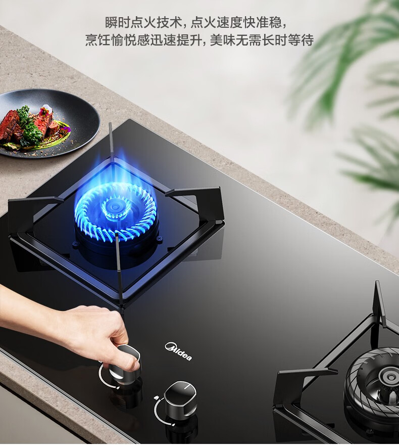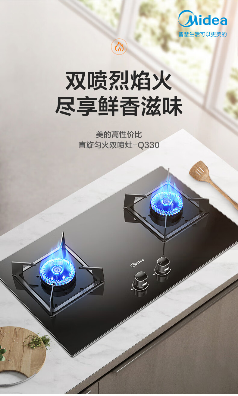 美的(Midea)家用5.0kW火力猛火灶Q330台式嵌入式两用灶具液化气JZY-Q330 台 黑色
