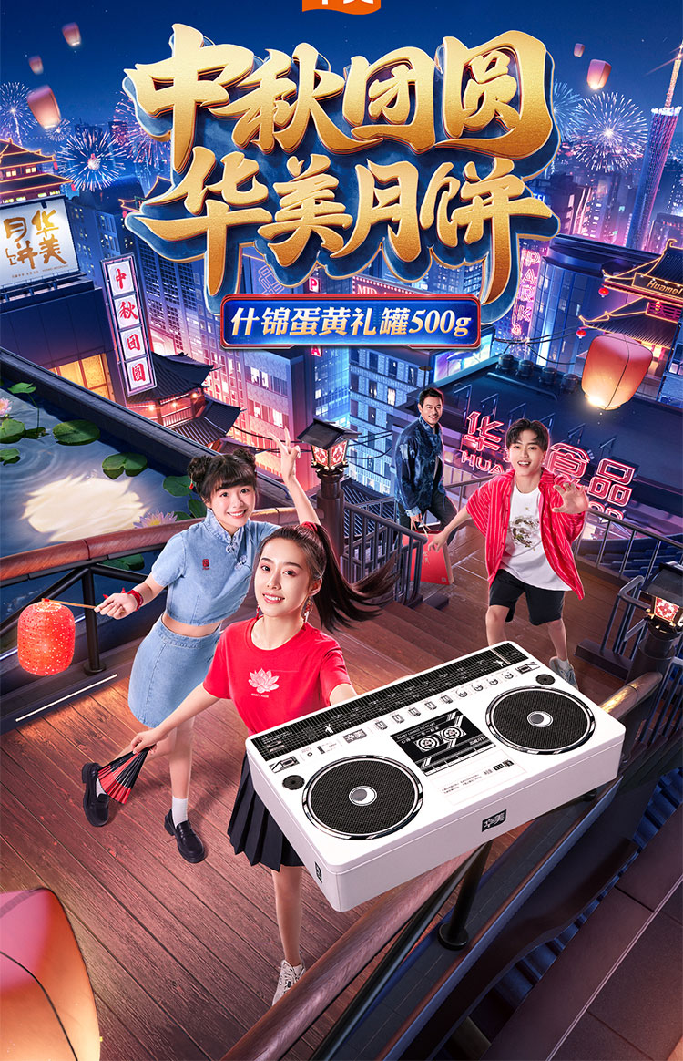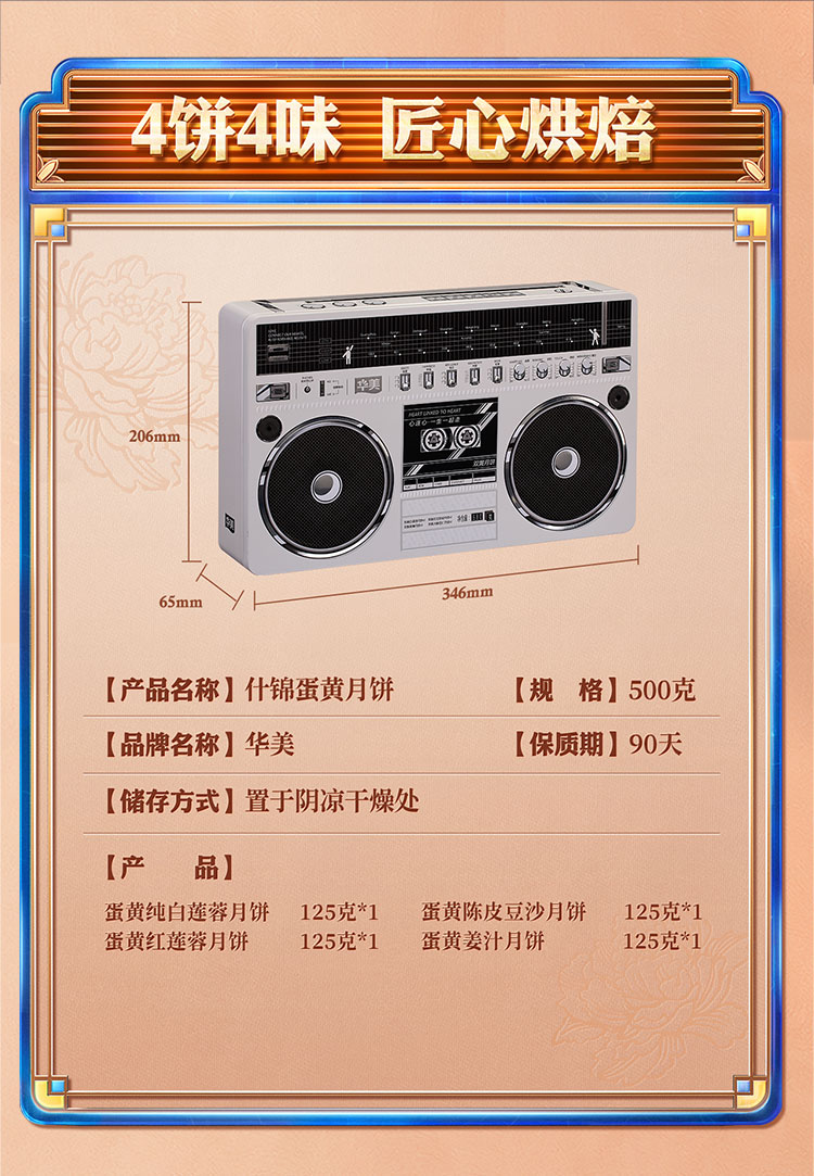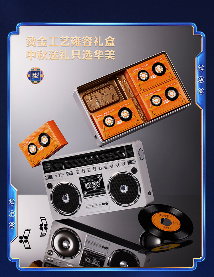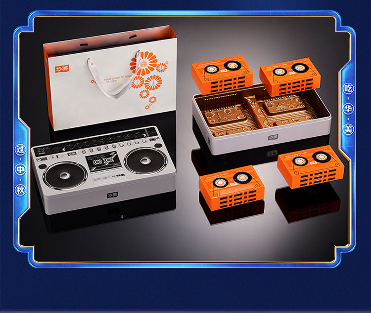 华美 录音机蛋黄什锦月饼 礼盒 500g 银灰(单位:盒)