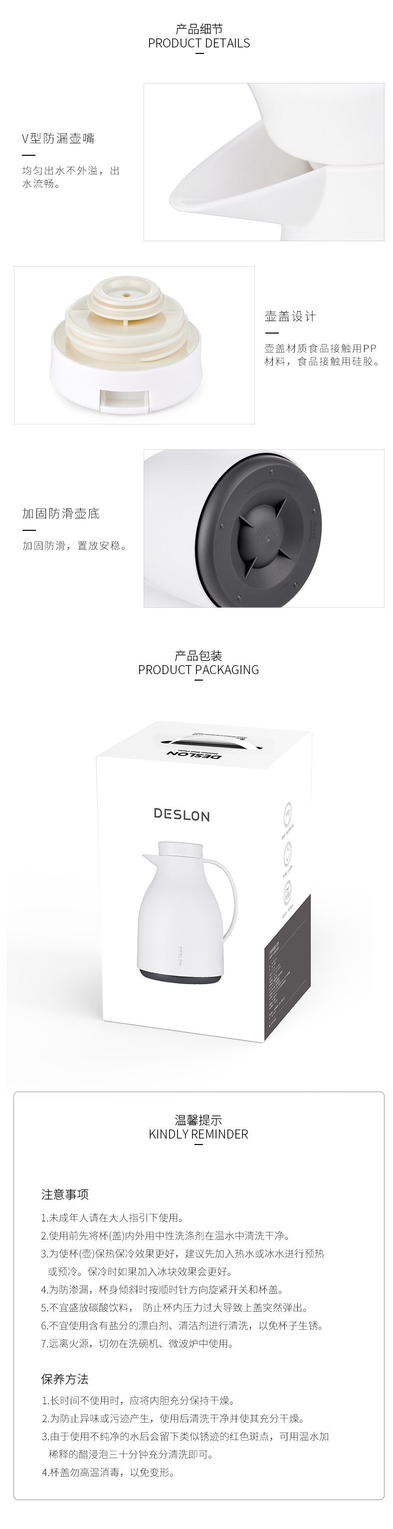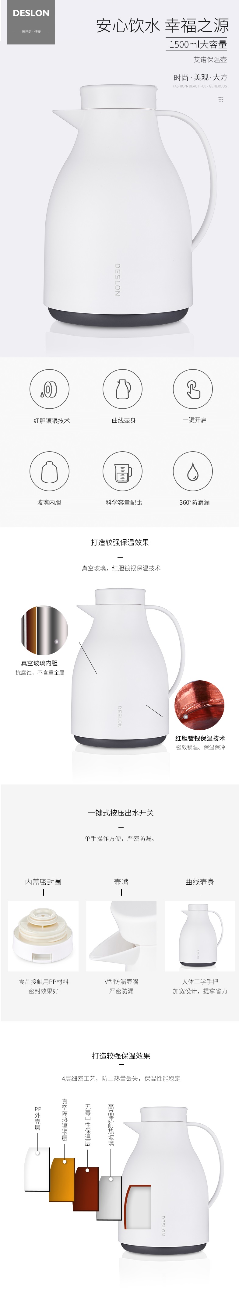 德世朗(DESLON)艾诺保温壶DANH-1500 (单位:个)白色