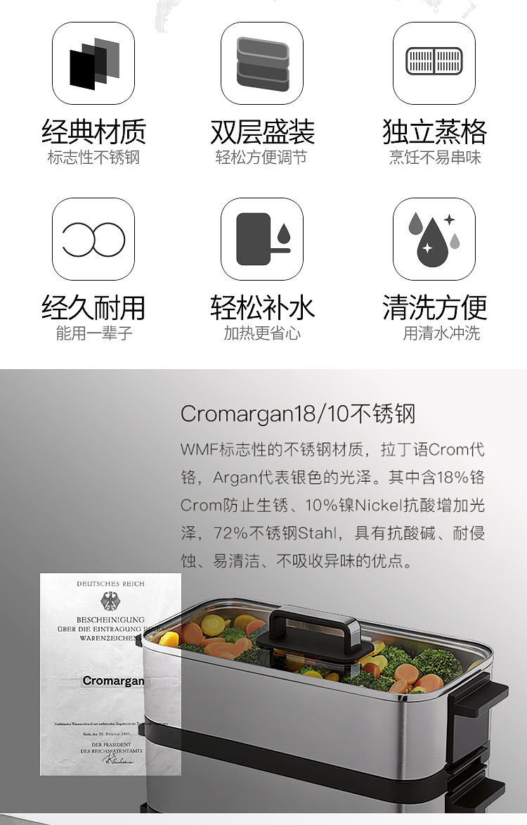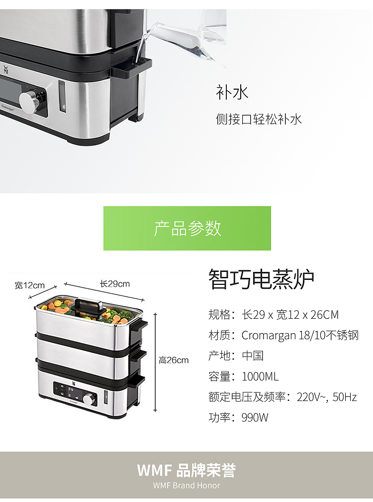 WMF福腾宝智巧电蒸炉不锈钢蒸锅0415099911(单位:台) 银色