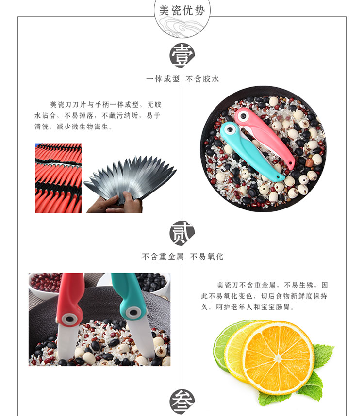 mycera美瓷陶瓷刀小喜鸟系列陶瓷折叠刀陶瓷水果刀礼盒BZD01 随机 红色